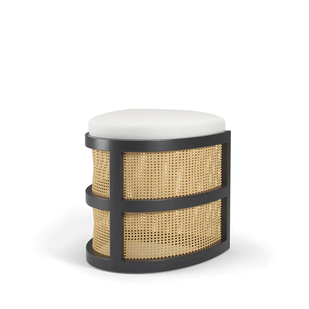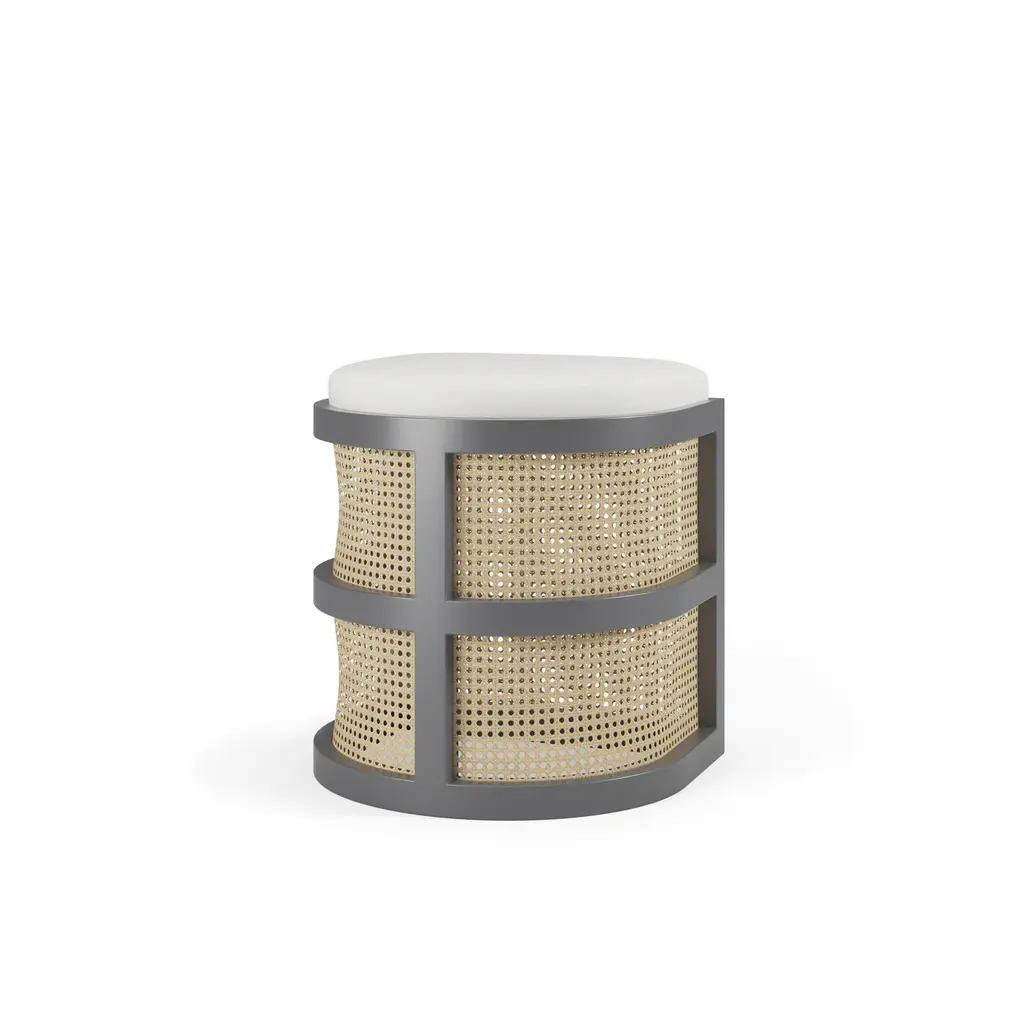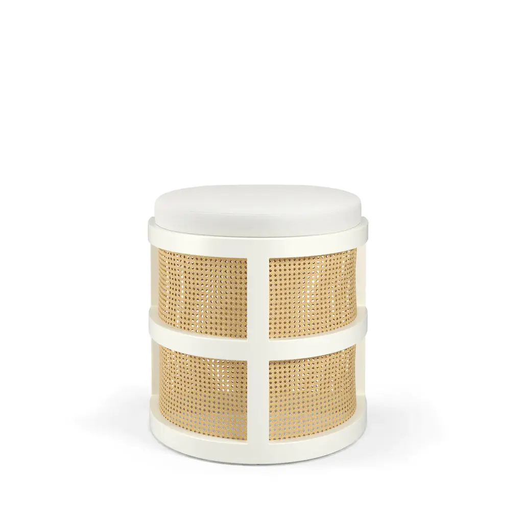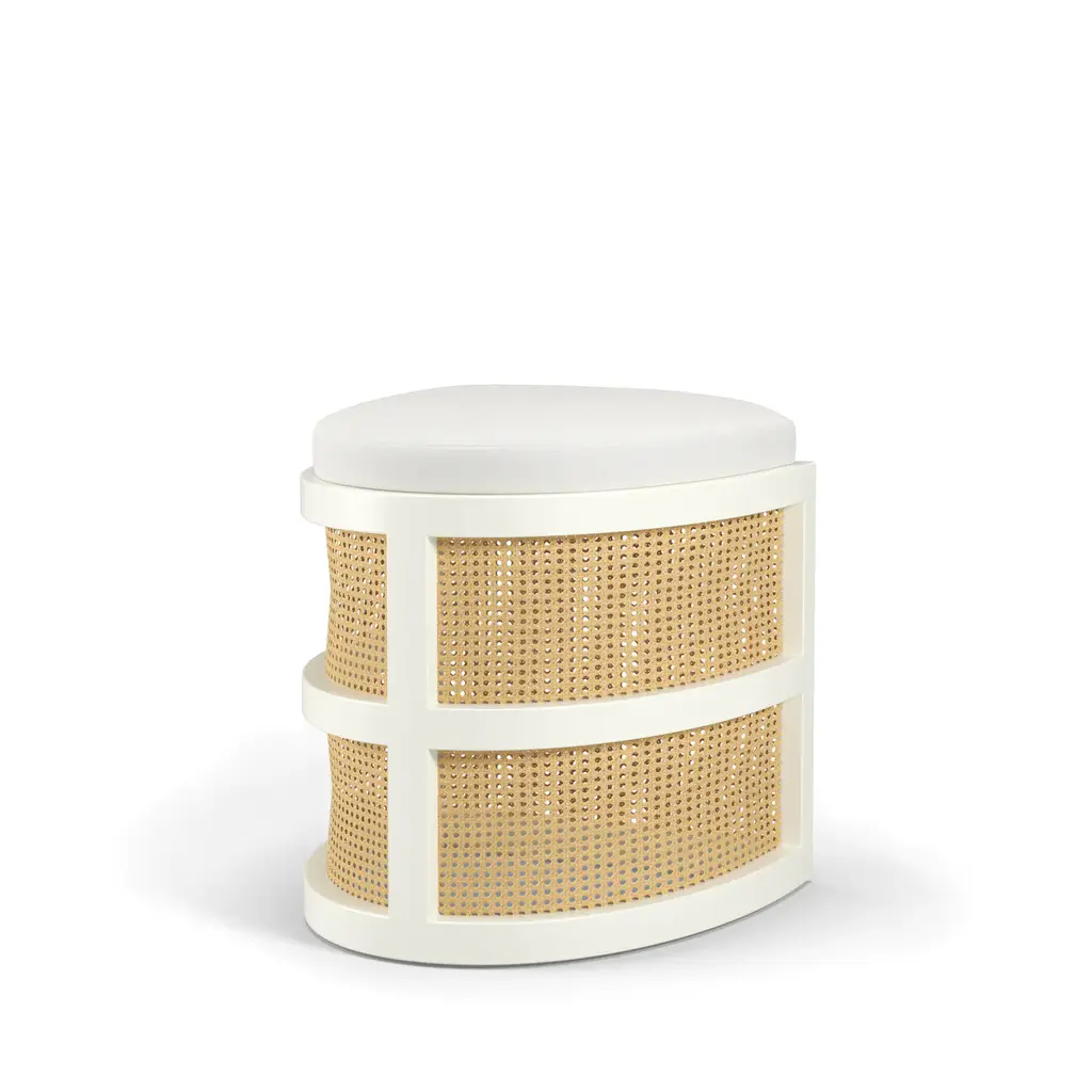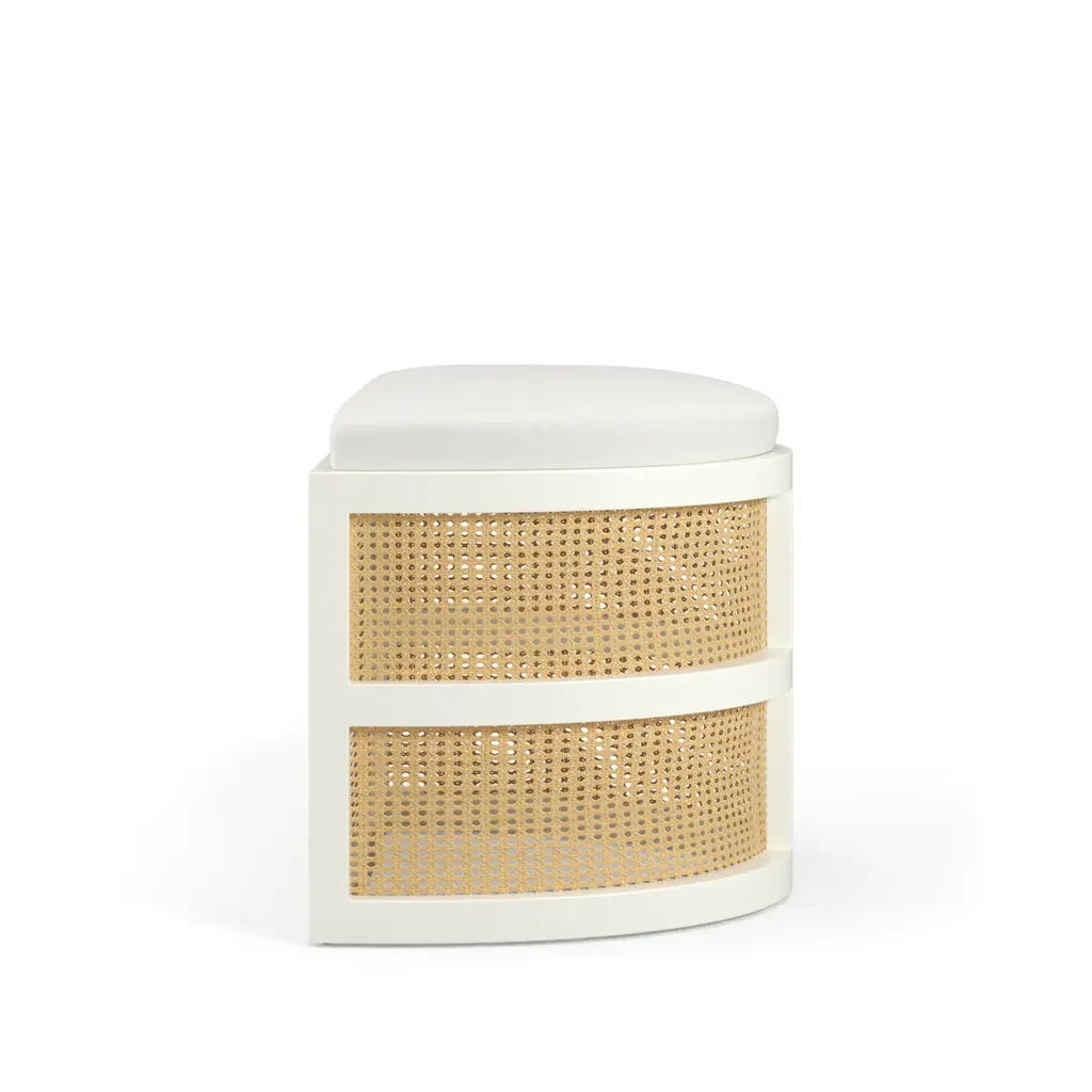 Isabella Accent Stool, curved seating and caning makes for a beautiful vanity stool or great for a sitting area nook. Put two of them together and have kissing stools.