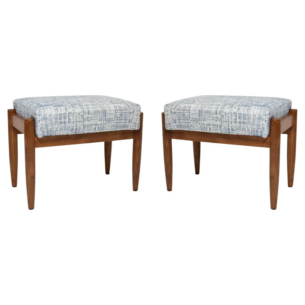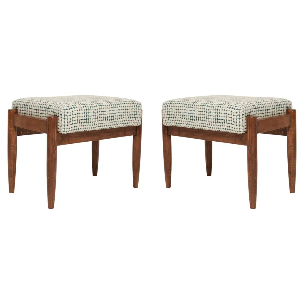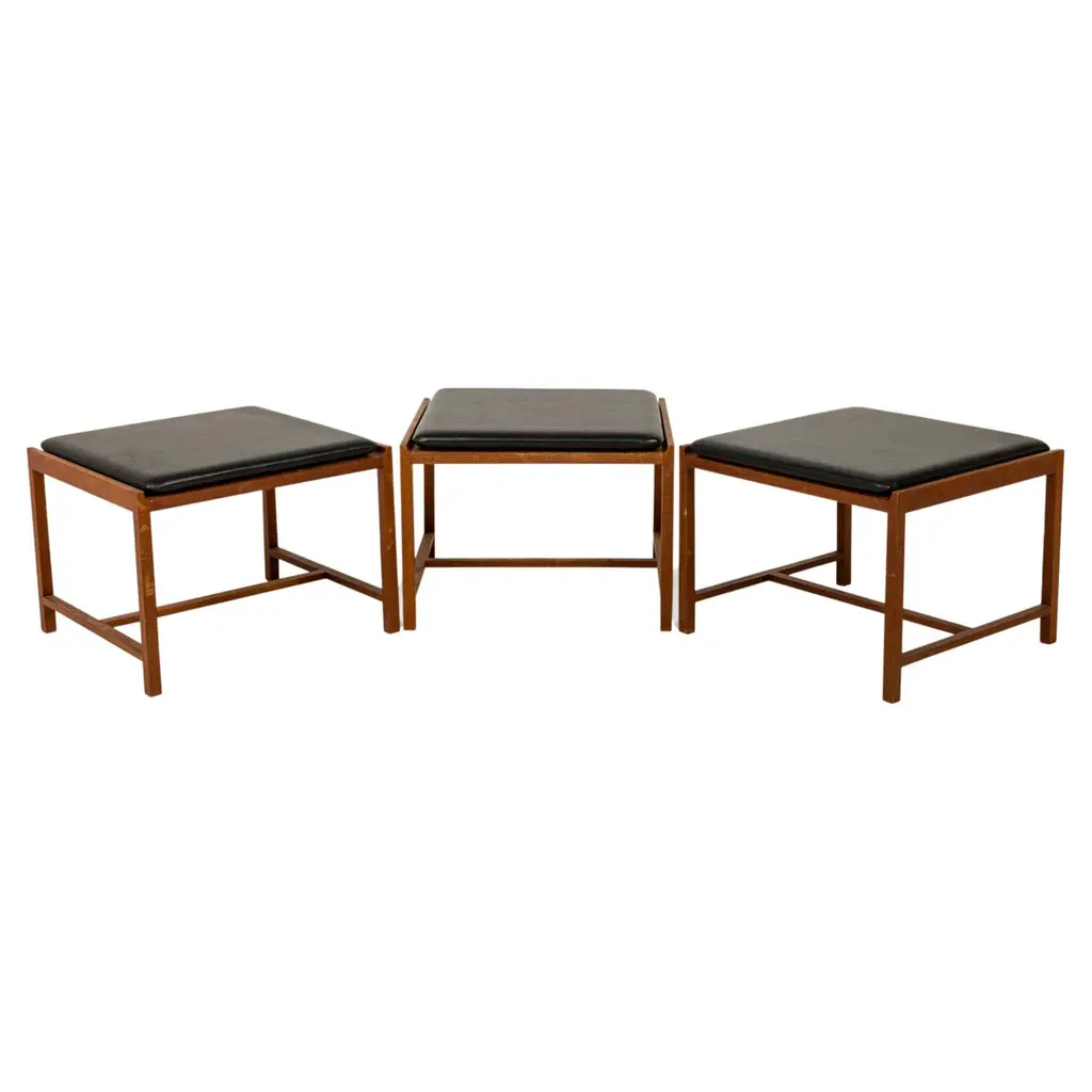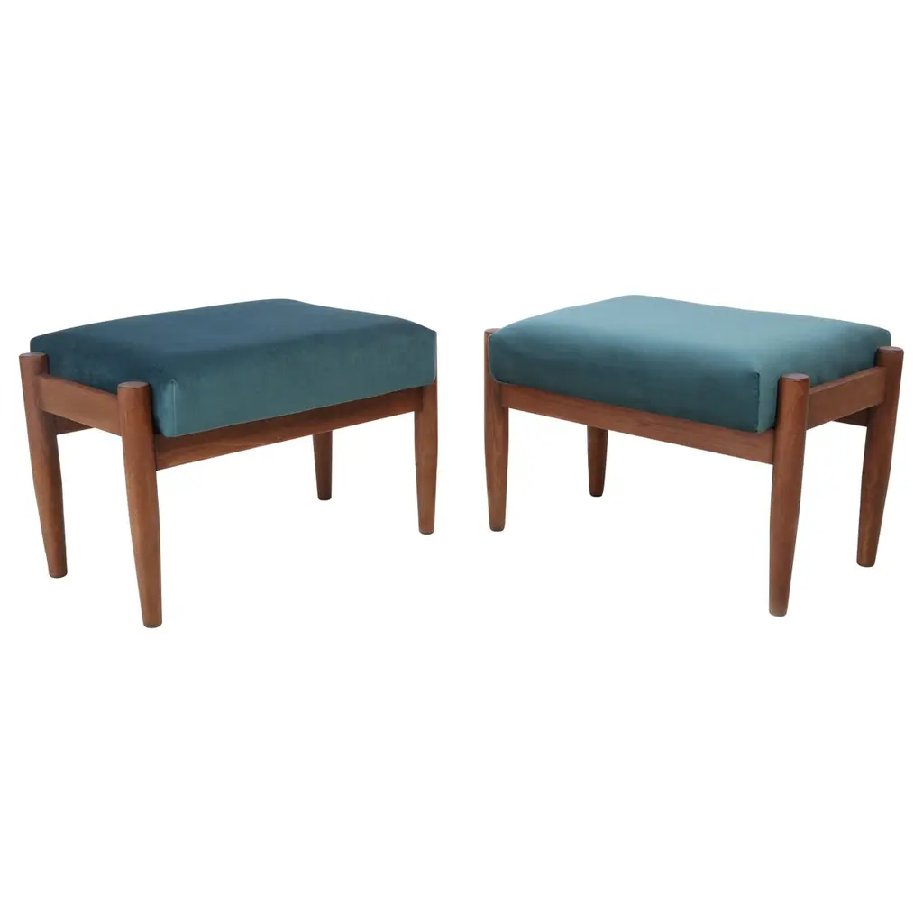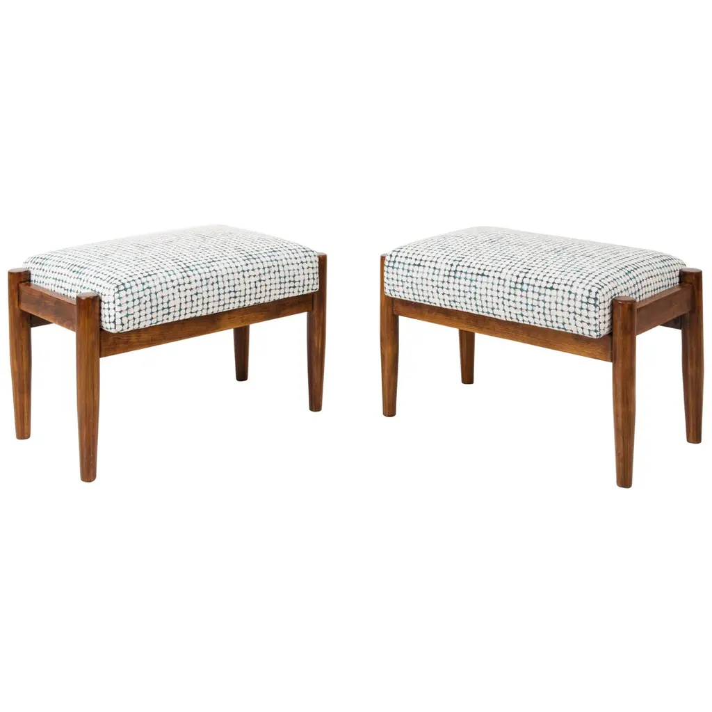 Italian 1960's Walnut Stools With Woven Leather Seats