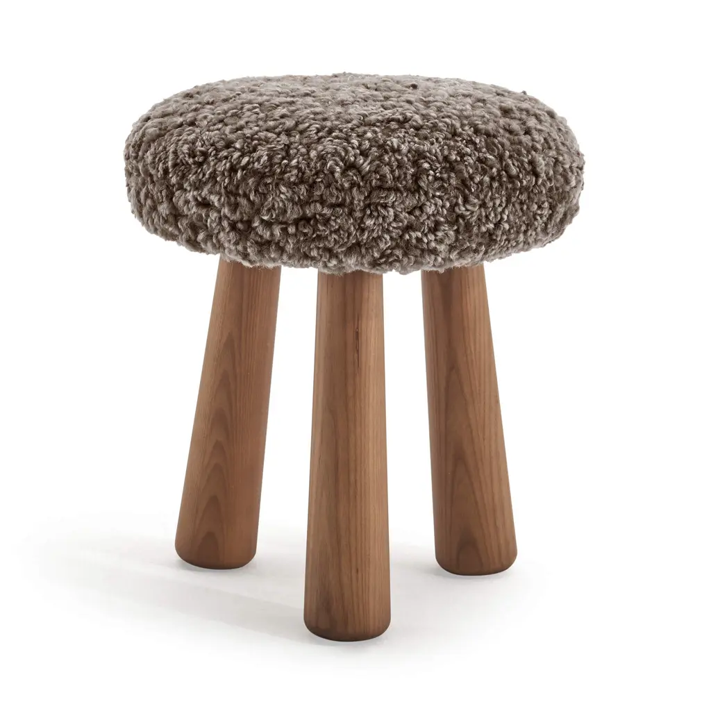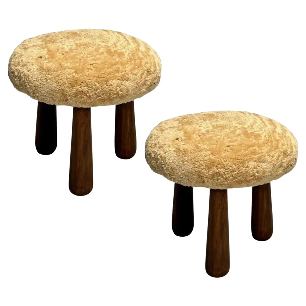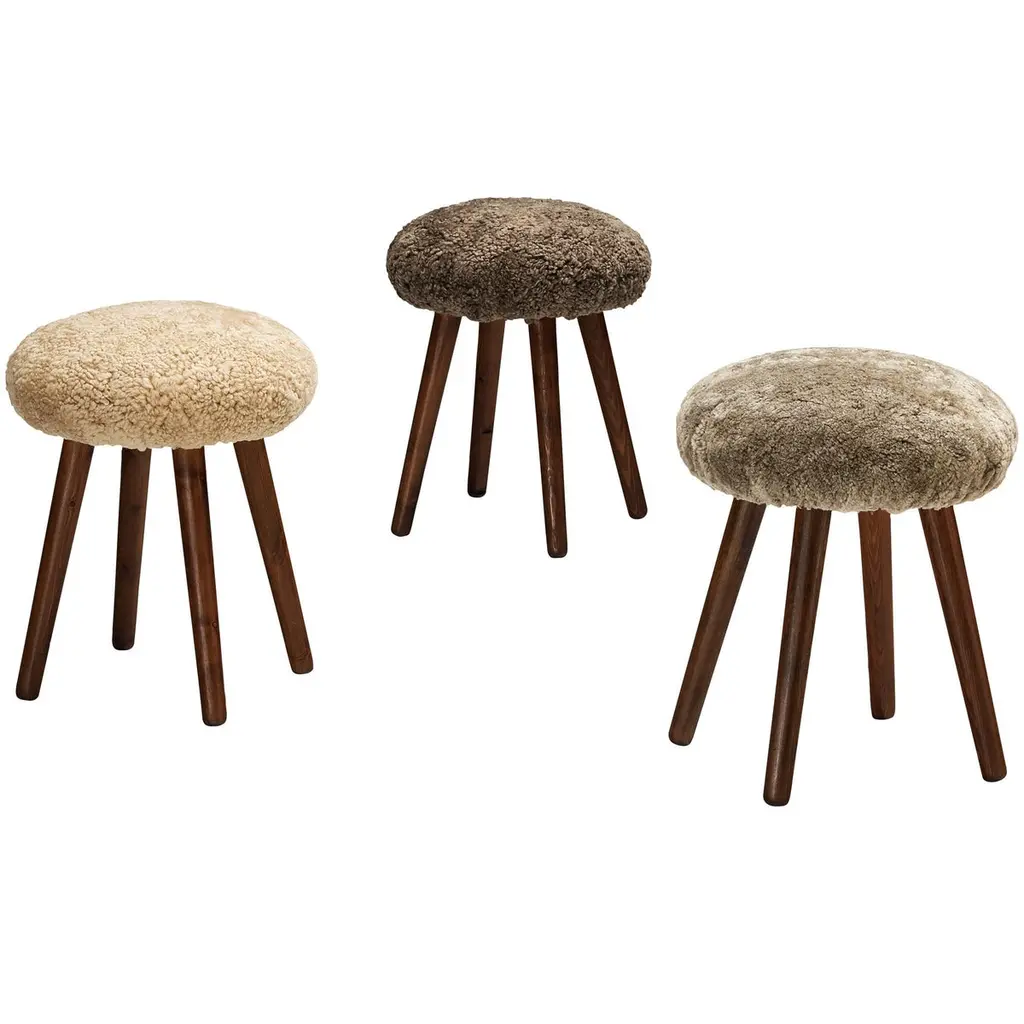 Italian Stools Or Side Tables In Solid Pine And Sheepskin