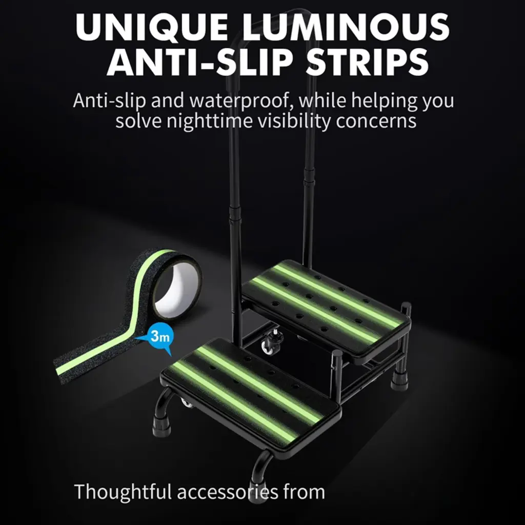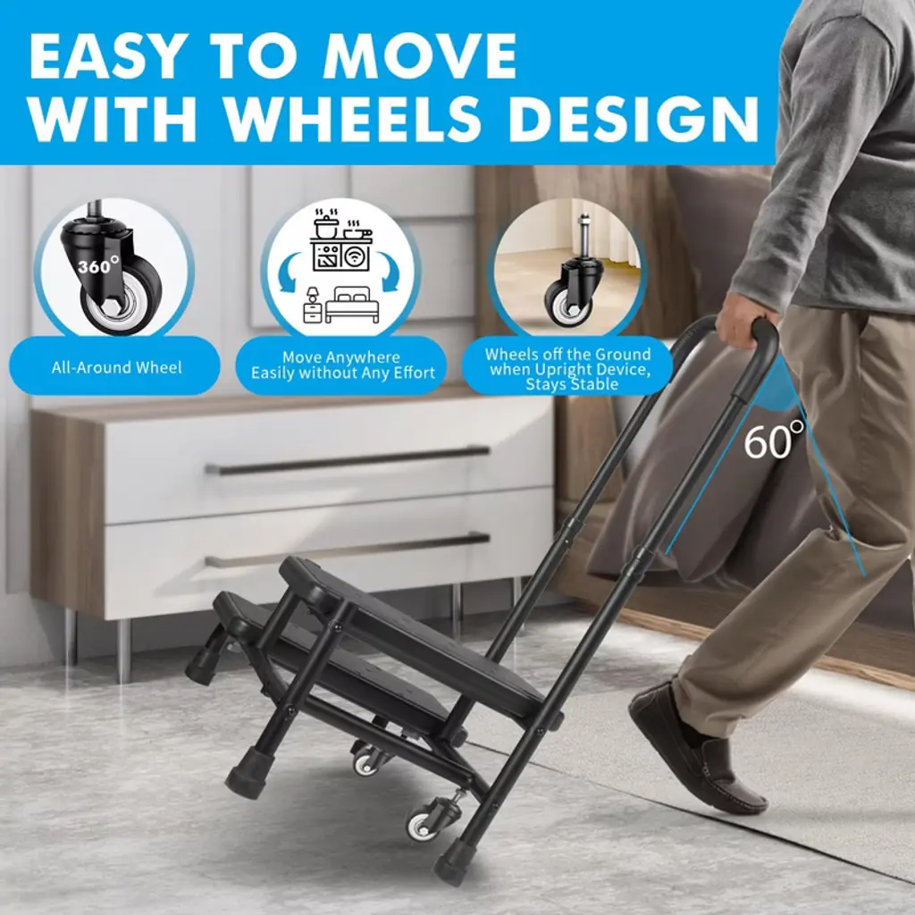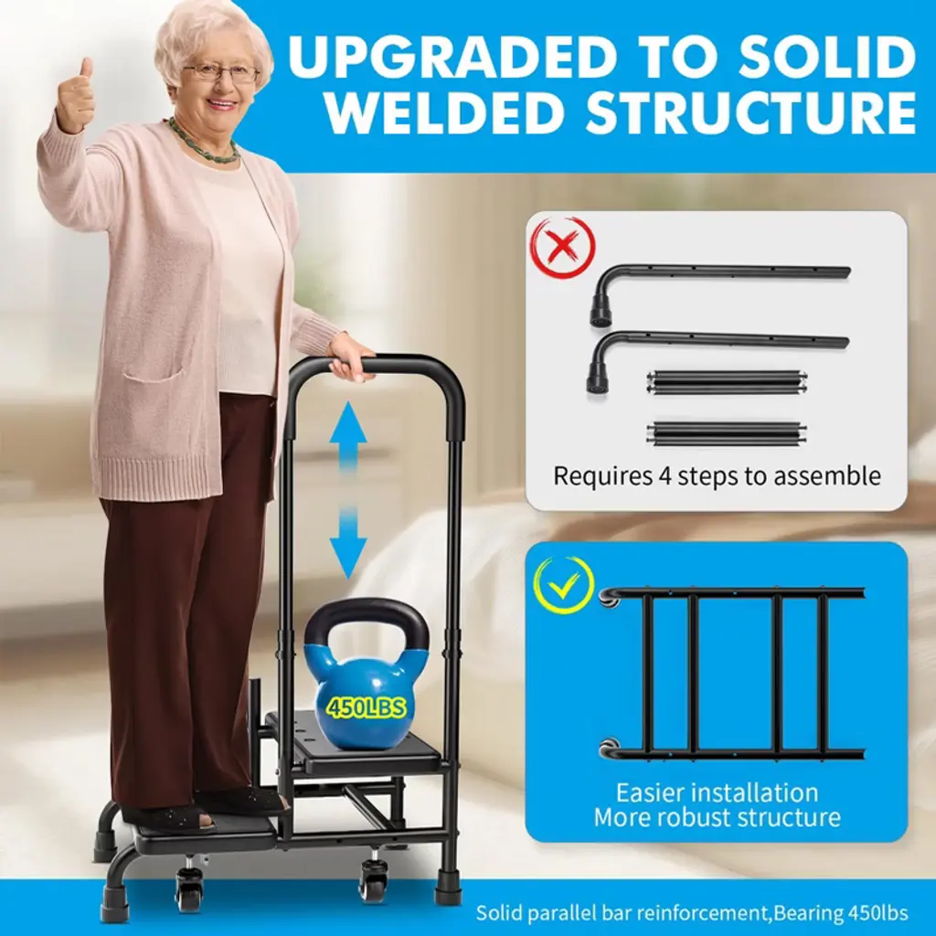 Discover the ultimate step stool designed for the elderly and adults. This heavy - duty step stool features a unique wheeled design with 2 all - around 360° rotating wheels, enabling easy movement to any location. The sturdiness is enhanced with thickened rubber foot pads, a solid welded structure, and an integrated seamless base. Installation is a breeze with the upgraded base welding integrated design, which saves steps and is 65% pre - installed. The soft handrail is flexible and adjustable in 5 heights and can be installed on either side. It has a two - step design that is knee - friendly, perfect for accessing taller beds, vehicles, and bathtubs. With a weight capacity of 450 pounds, it's highly reliable. The non - slip PU handle and thickened non - slip matte platform ensure safety, and the included glow - in - the - dark sticker adds an extra layer of safety in low - light conditions. Ideal for bedside, kitchen, car, RV, and bathtub use, it brings great convenience to daily life.