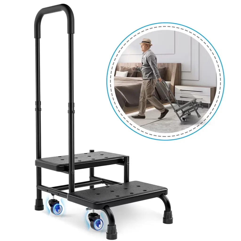 Itopfox Adjustable Handle Step Stool With Wheels For Elderly - Heavy Duty Bedside Ladder For High Beds, Kitchen, Car, Rv, And Bathtub Access