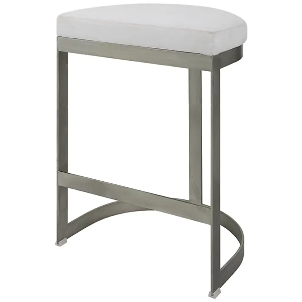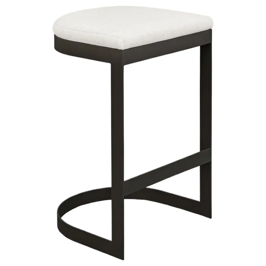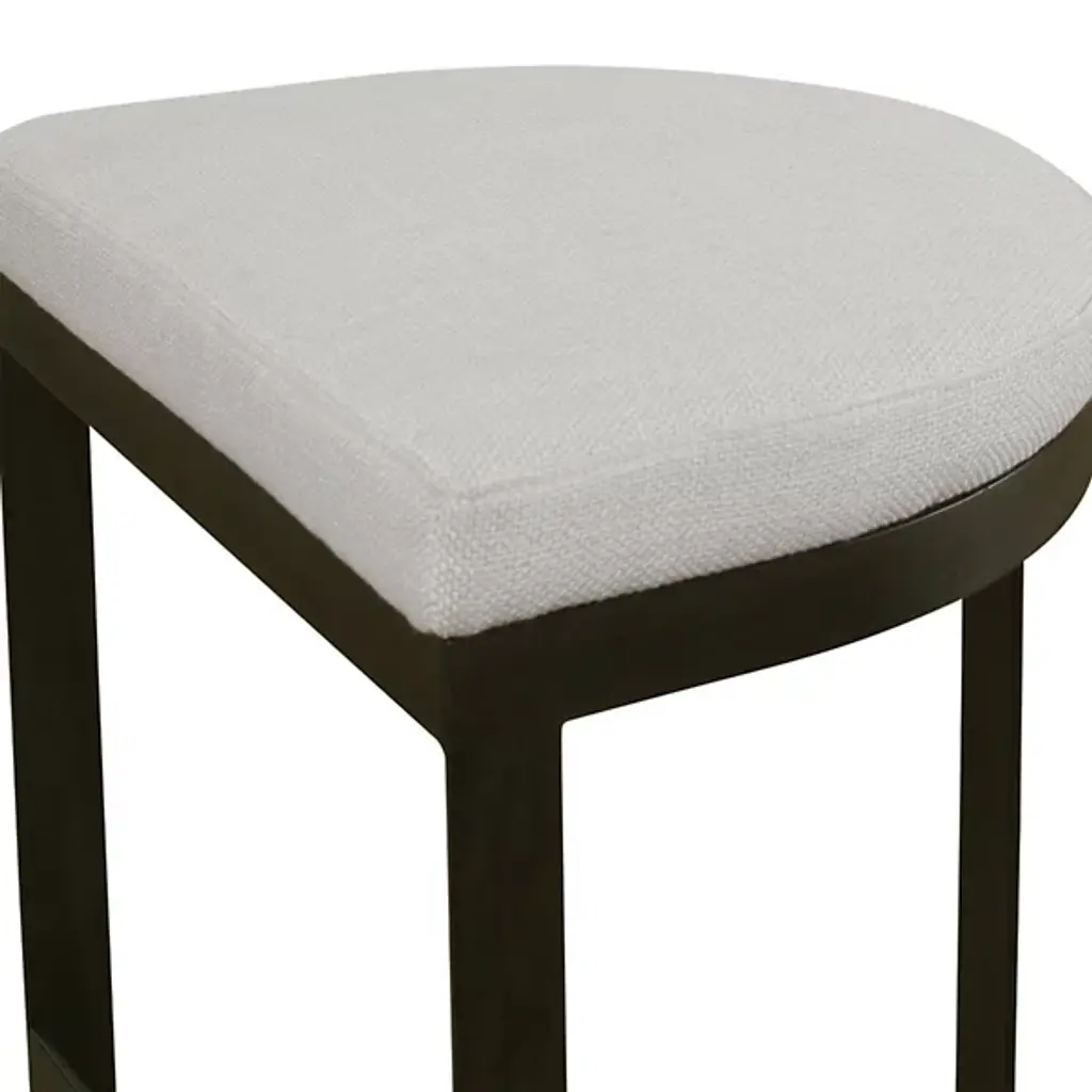 The Ivanna Stool from Uttermost maintains the chic personality of the kitchen and an overall sense of comfort. The stool’s graphic silhouette resonates in the modern setting. It starts out with a hand-forged iron base of semi-circular contours. The half-cylindrical base makes smart use of floor space, proving ideal in the intimate kitchen setting. The bold finish of the metal visually enhances the light, delicate form of the seat cushion. Wrapped in soft fabric, this stain-resistant cushion feels comfortable at various seating positions.
