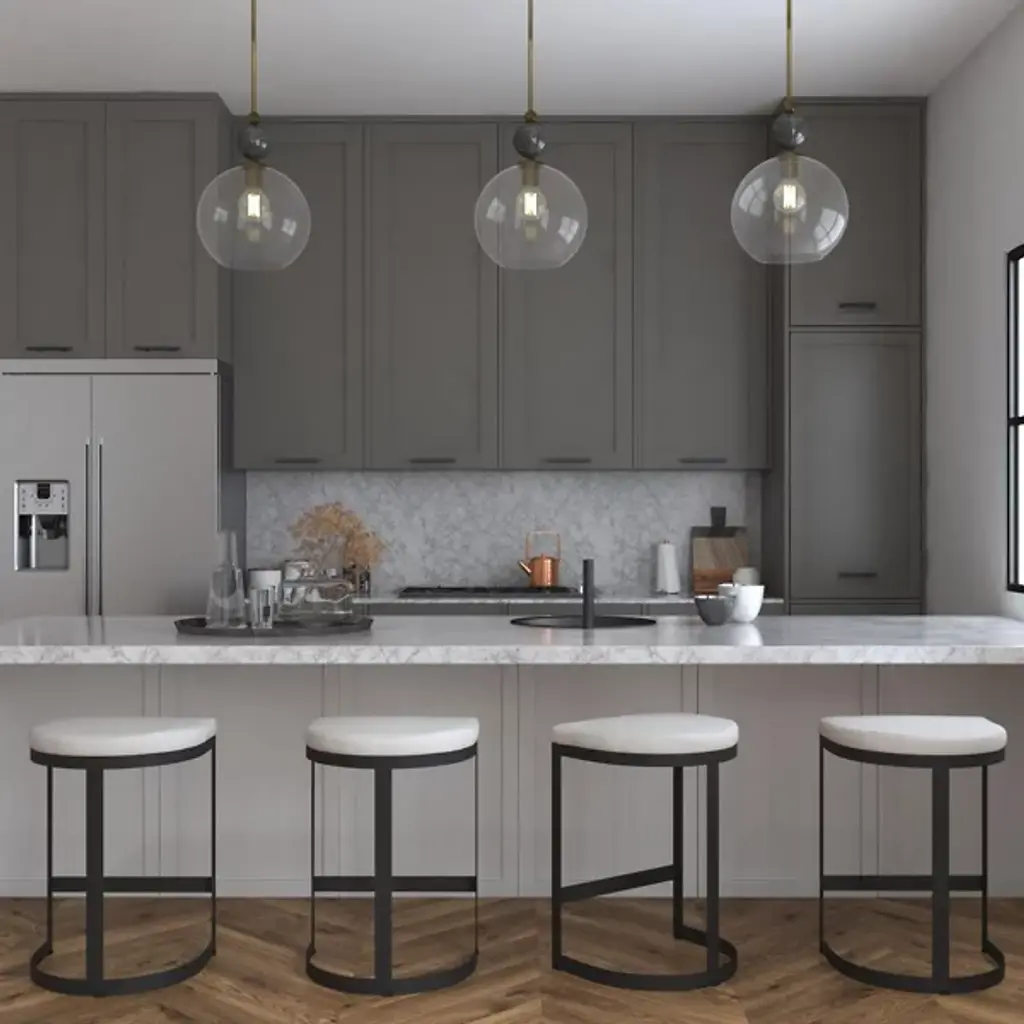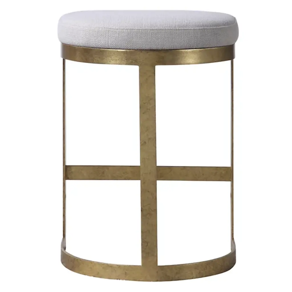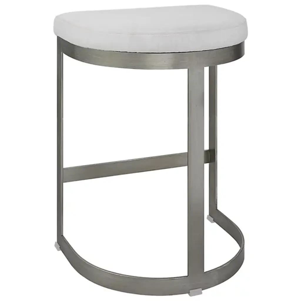 The Ivanna Stool from Uttermost maintains the chic personality of the kitchen and an overall sense of comfort. The stool’s graphic silhouette resonates in the modern setting. It starts out with a hand-forged iron base of semi-circular contours. The half-cylindrical base makes smart use of floor space, proving ideal in the intimate kitchen setting. The bold finish of the metal visually enhances the light, delicate form of the seat cushion. Wrapped in soft fabric, this stain-resistant cushion feels comfortable at various seating positions.