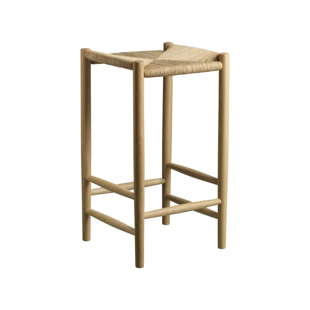 The J164 Stool from FDB Mobler marks a significant milestone in Danish design history as Jørgen Bækmark's pioneering interpretation of the high stool. Featuring a square, comfortable papercord seat and clean functional lines, it seamlessly integrates with the established Danish furniture tradition. Released to commemorate Bækmark's 90th birthday, this sophisticated piece is available in multiple versions, representing both a celebration of his legacy and an innovative addition to timeless Scandinavian design. Highlights