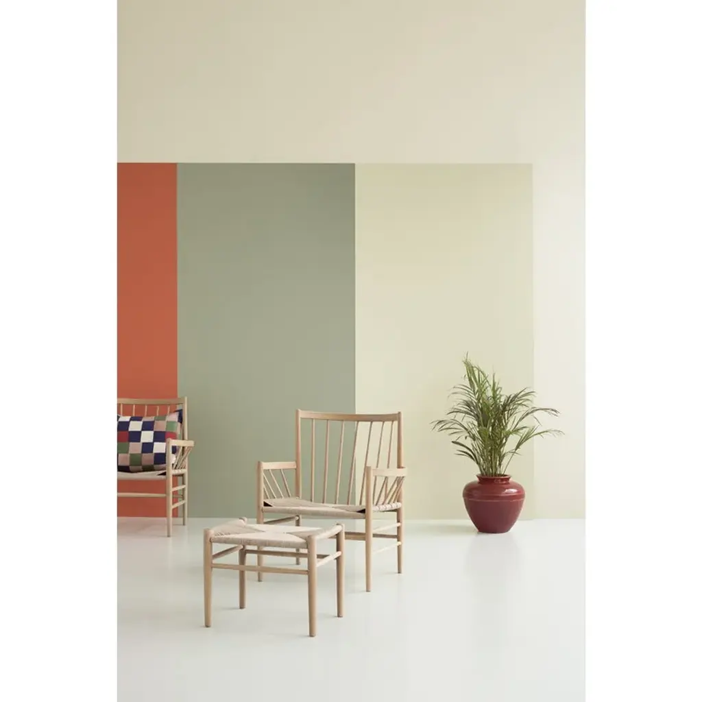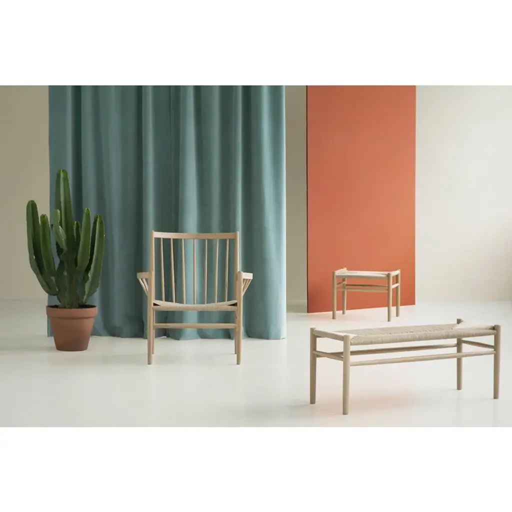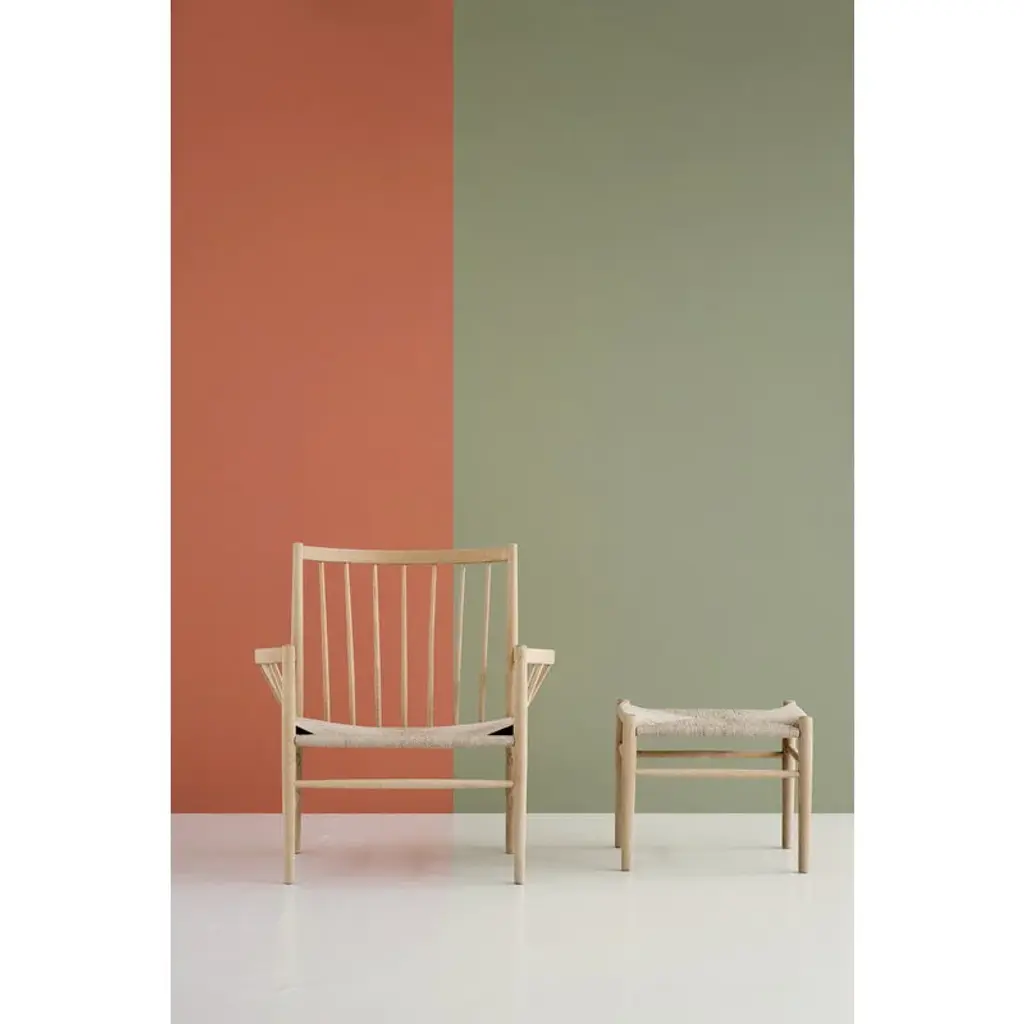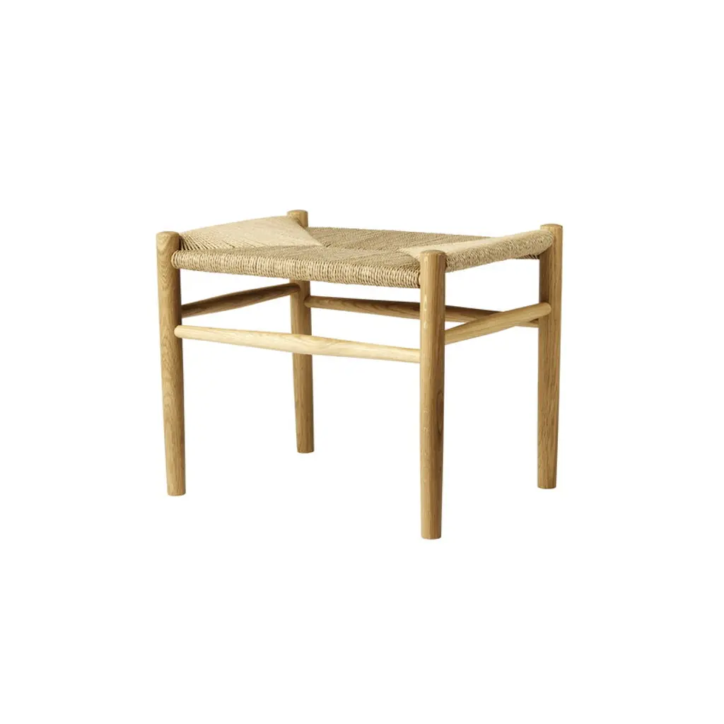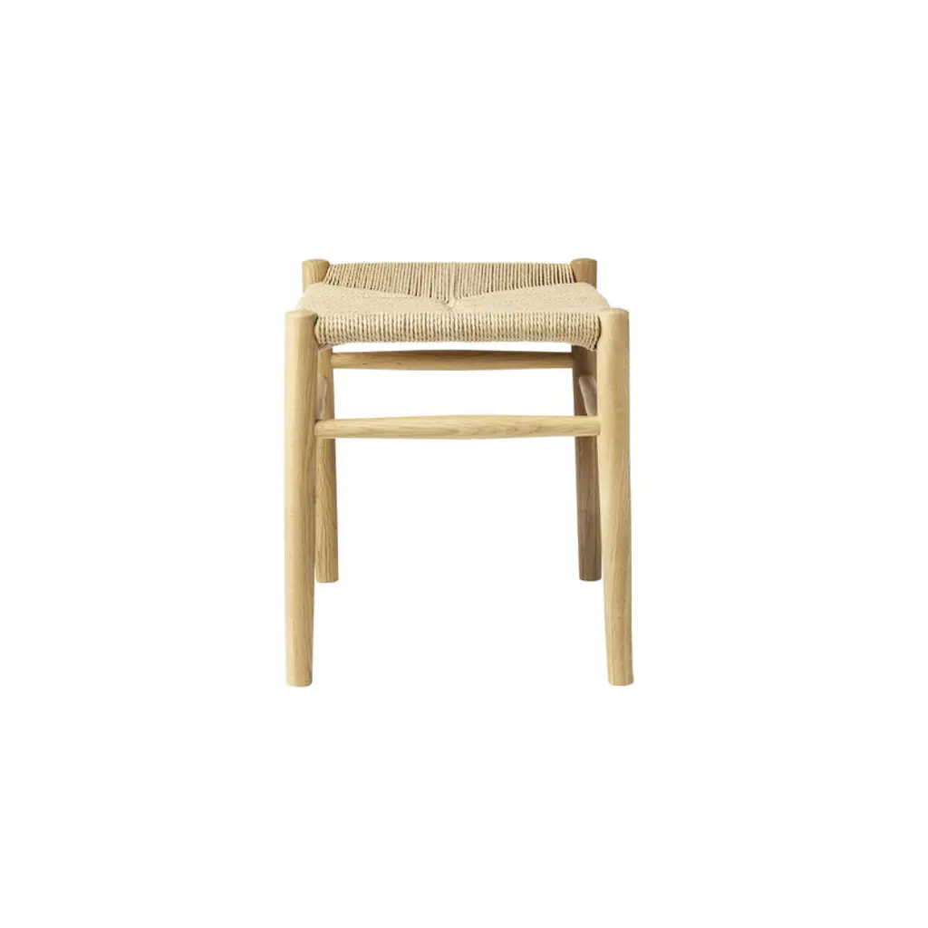 FDB Møbler’s J83 stool is an attractive wooden piece designed by Jørgen Bækmark in the 1950s. Featuring an angular oak frame with a paper yarn seat, the organic look of the J83 stool serves many different styles and spaces. The stool can be used as an extra seat by a dining table or as a footstool with the J82 armchair.