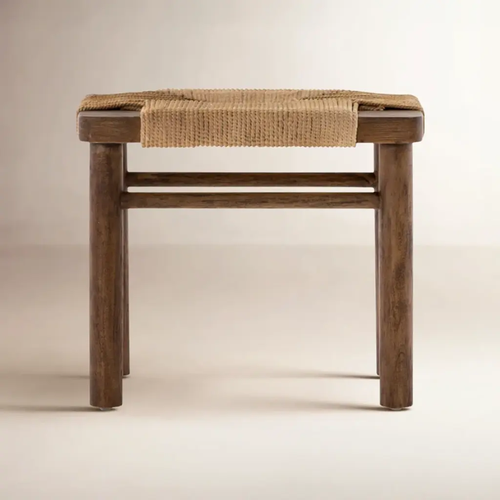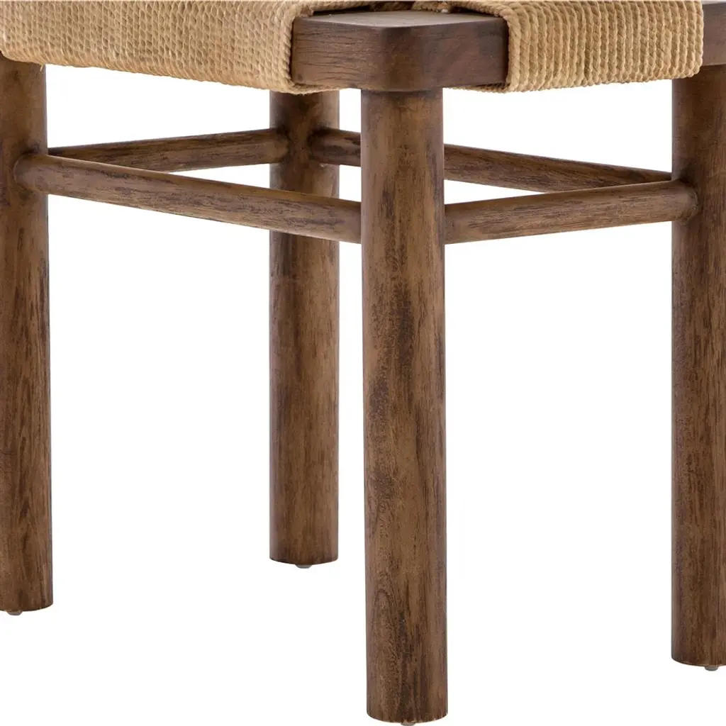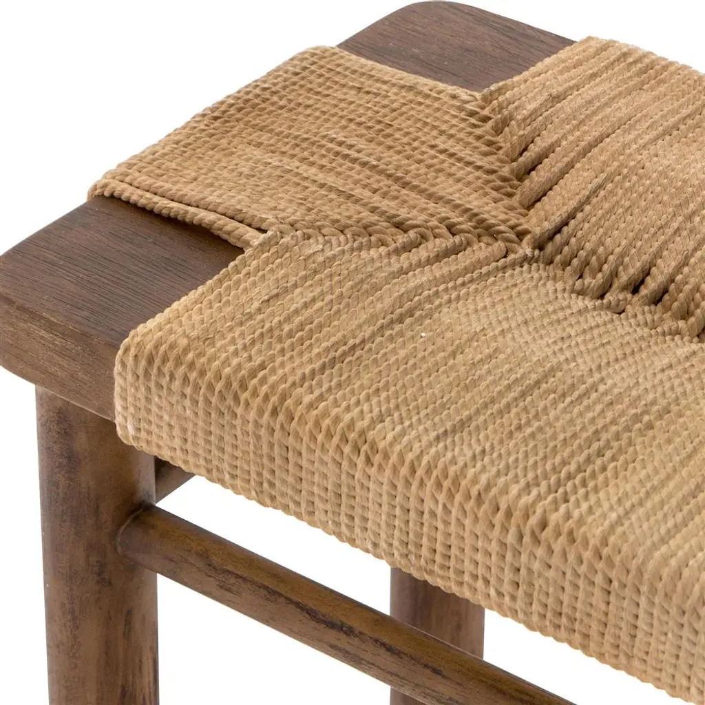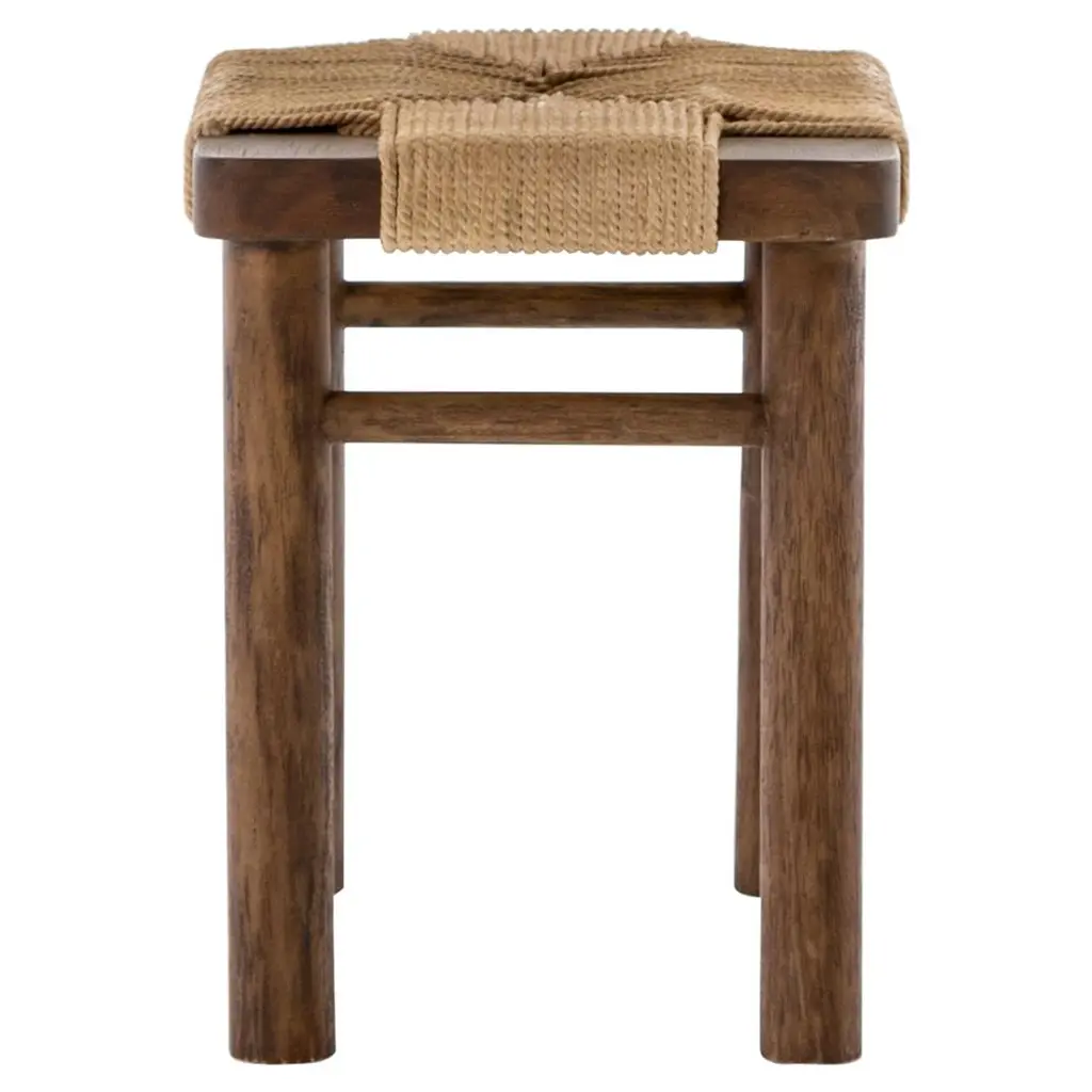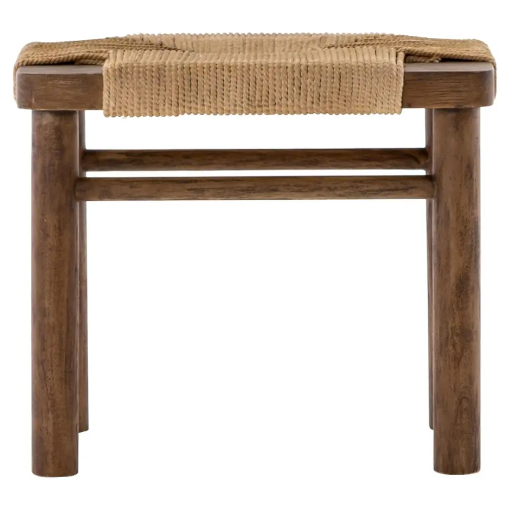 Jacob Coastal Beach Cotton Rope Wrapped Brown Mahogany Rounded Legs Stool