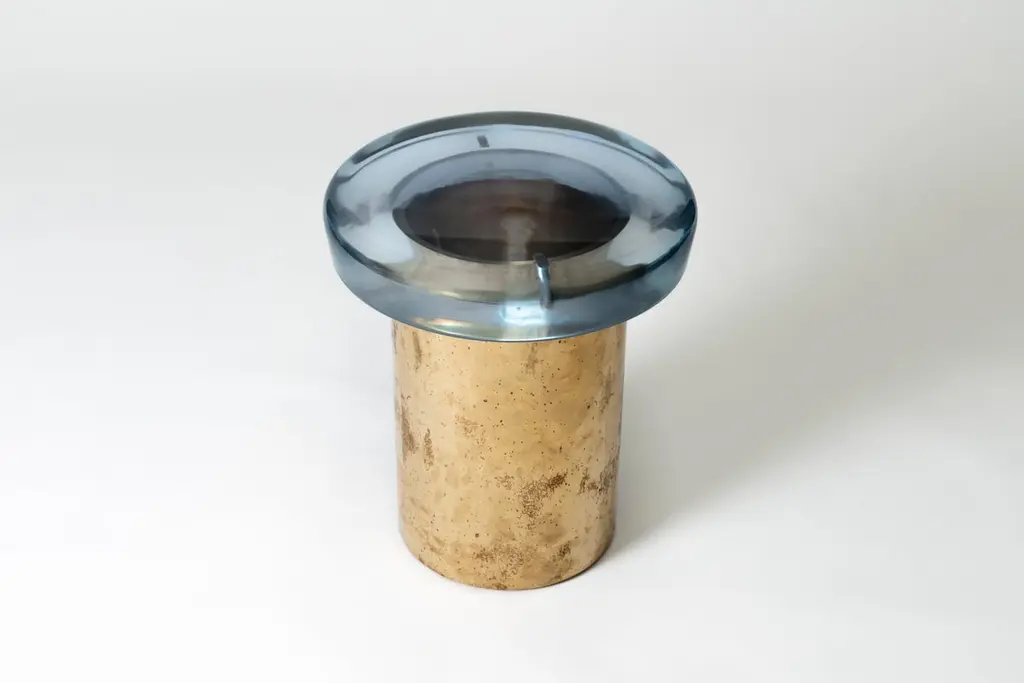 Jade stool by Draga & AurelDimensions: W 40, D 40, H 46, top Ø 40 cmMaterials: Resin and bronzeFormed from a combination of reflective resin and solid brass, the Jade coffee tables look like precious gems. The surface is made by hand in resin of 10 cm high: each one takes over a week to cast. Thanks to a handcrafted surface treatment, special brass veins characterize the structure of the coffee tables. Inspired by the magical mineral color palette of Transparency matters, these coffee tables are featured by ethereal transparency, luxurious sensitivity, and a reflective surface that plays poetically with the light, reflecting your gaze as a functional work of art.Founded in 2007 in the town of Como, Italy, Draga & Aurel is a multidisciplinary design studio that works along the spectrum of furniture, textile and interior design. Draga Obradovic began her career in the fashion industry, first working in London and Milan as a textile designer before eventuallysettling in Como. Aurel K. Basedow graduated from Milan’s Accademia di Belle Arti with a degree in Fine Arts, having previously trained as a carpenter and woodworker. Thanks to their sympathetic methods, combined with an artist’s approach to material and composition Draga & Aurel are widelyrecognized for their clever reinvention of bespoke vintage design pieces.Their showing at 2009 Salone del Mobile introduced the duo to the world stage; it followed the partnerships with several companies that have pushed the pair’s domain beyond the reinvention of singular vintage pieces. While interior projects have expanded their sought after aesthetic into the realm of hospitality and lifestyle. In occasion of the 2019 Milan Design Week the design duo presented Transparency Matters, an exhibition of limited edition pieces, entirely fabricated by hand in their Como atelier.