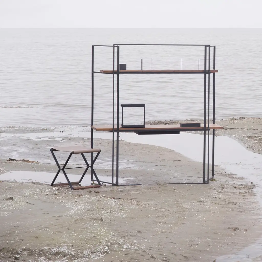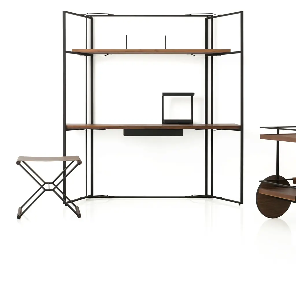 Subtly inspired by the world of performance cars this stool echoes a luxury auto in its mix of black steel, solid walnut and smooth matte leather. Designers Yabu Pushelberg conceive their James collection for Stellar Works as boldly drawn but also light and airy with the open metal framing that emphasizes negative space. As such, the piece has an finely understated presence, sleek and well-proportioned to meld with many a setting.