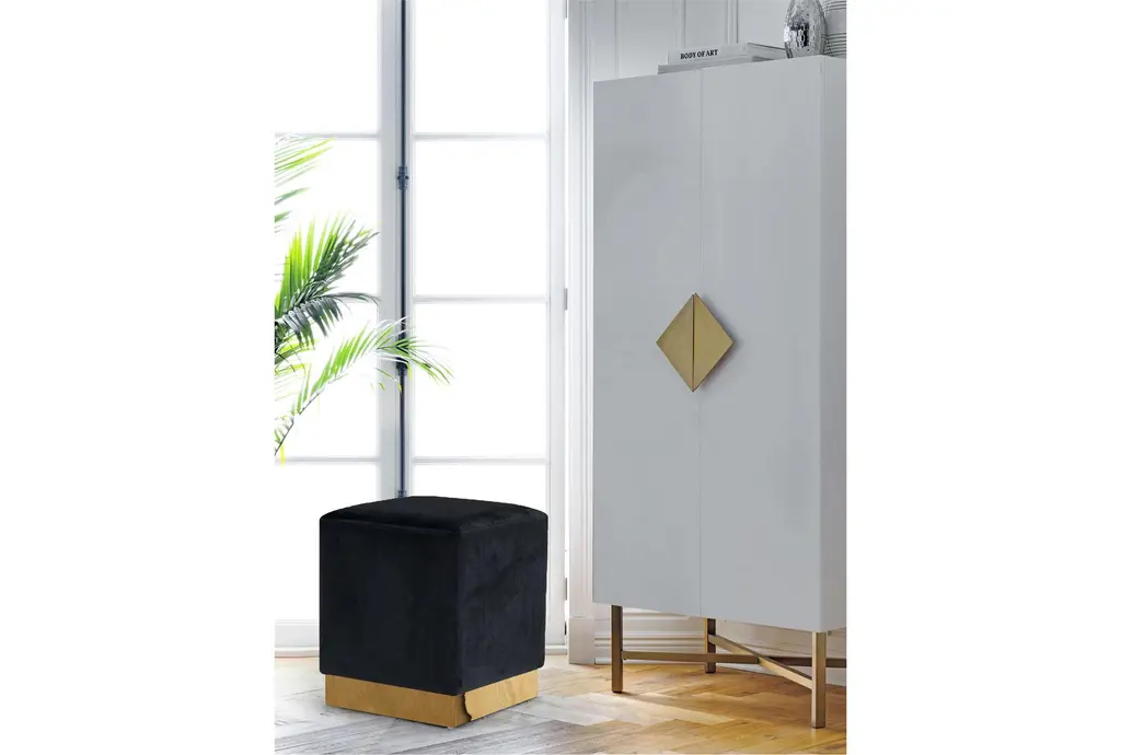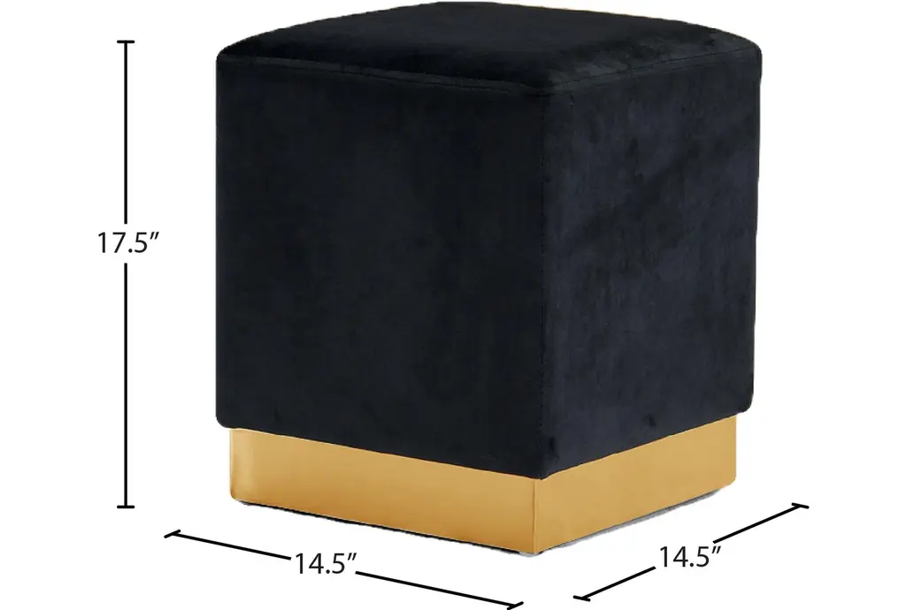 Jax Black Velvet Upholstered Rectangle Ottoman / Stool | Gold Stainless Steel Base