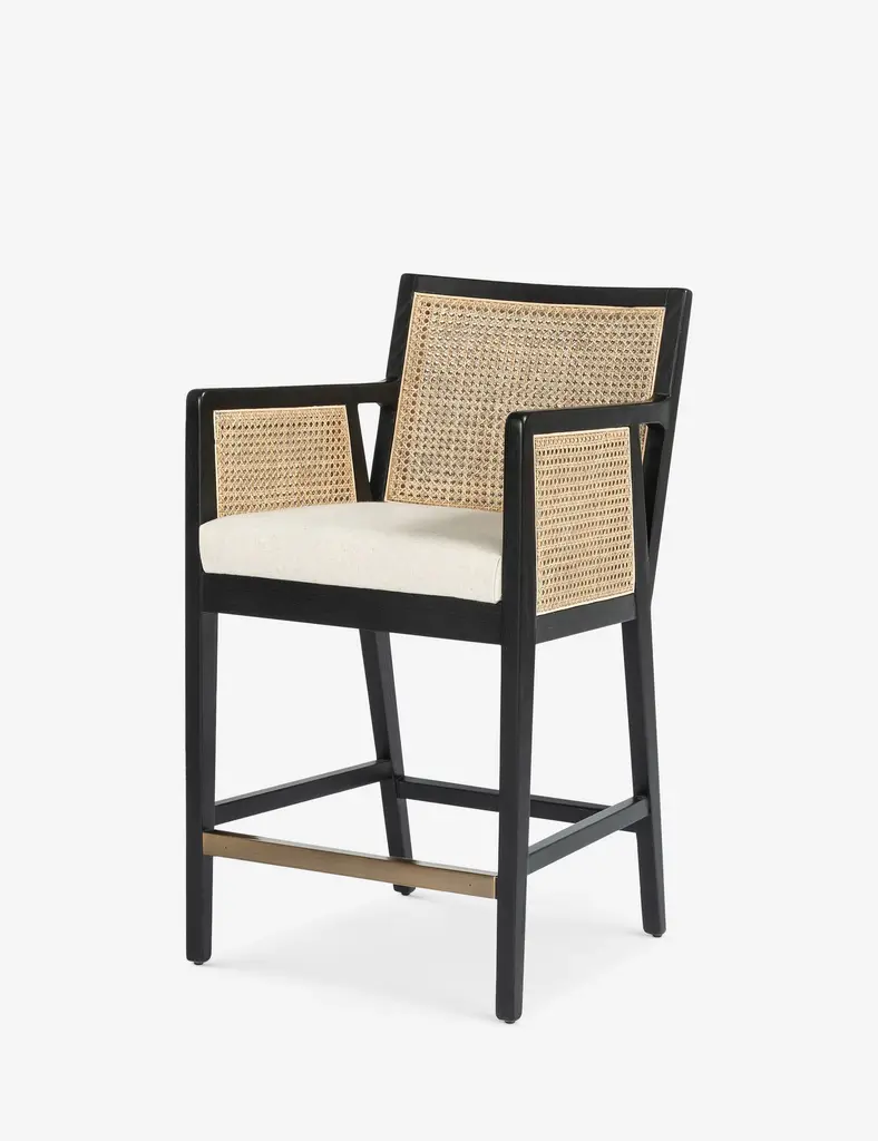 Timeless details like rattan caning and a textured seat cushion give this bar chair a retro vibe we love. The pared-down design and a kick plate finish this stool for dynamic appeal.