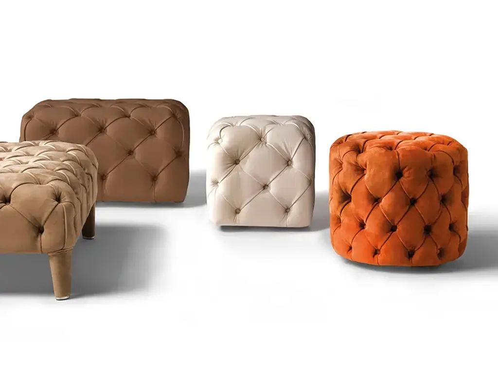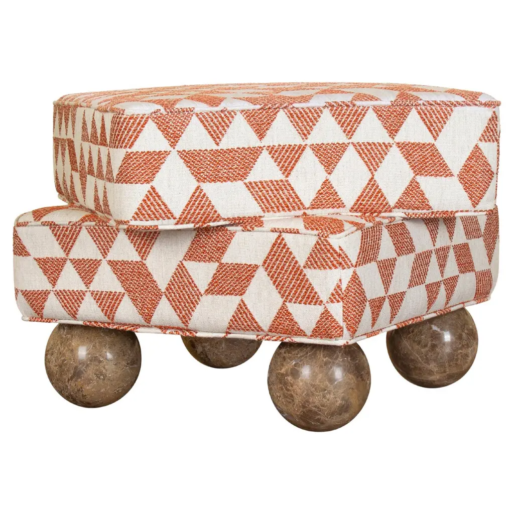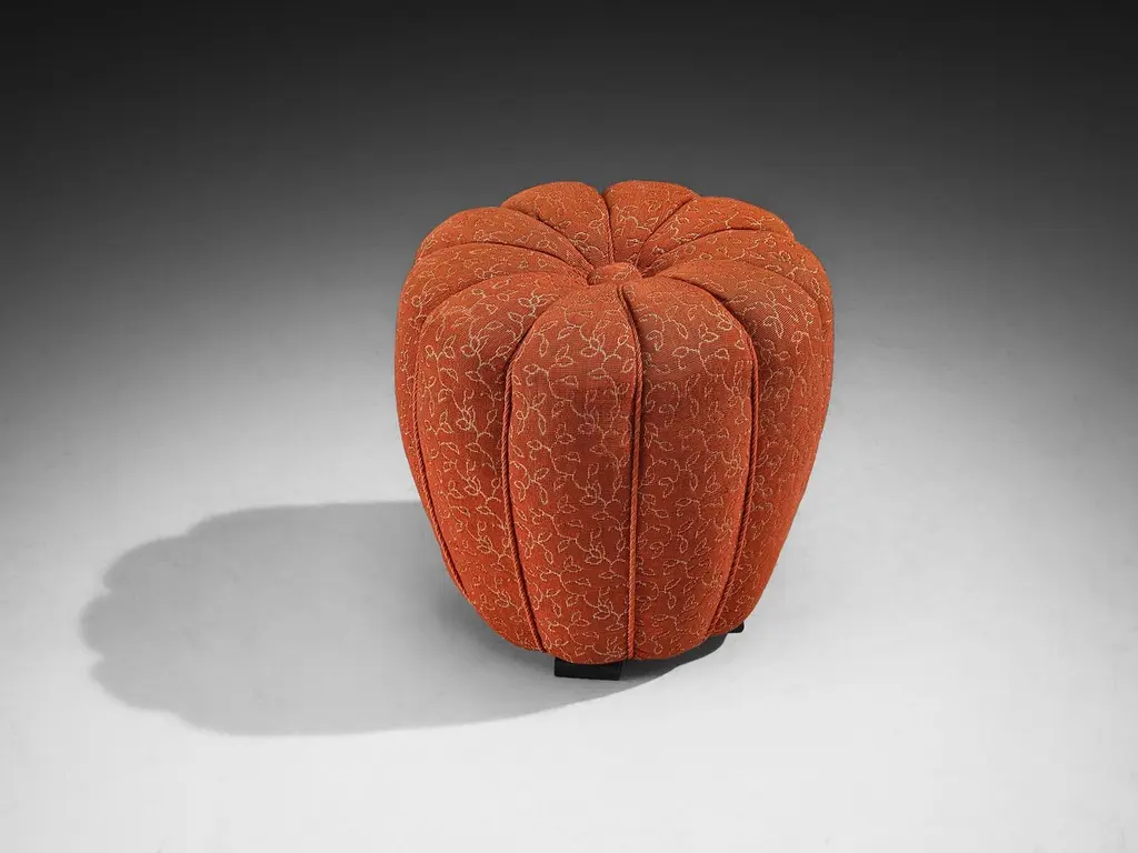 Jindrich Halabala for UP Závody, footstool, tabouret, ottoman, fabric, beech, Czech Republic, 1930s.This poetic pouf, designed in the 1930s at the height of the Art Deco movement, stands out for its artistic upholstery, which still retains its original fabric, and its intriguing construction. Halabala crafted a harmonious piece that beautifully balances soft colors with bold, geometric forms. Beyond its visual appeal, the pouf is also highly functional - it can serve both as an ottoman for your lounge chair or as a standalone stool. The design exemplifies Halabala’s signature aesthetic and thoughtful use of materials.Kindly note that the fabric is in good, used condition with some signs of age and use. For further details, we encourage you to reach out to our team of design specialists.The price listed is per item.