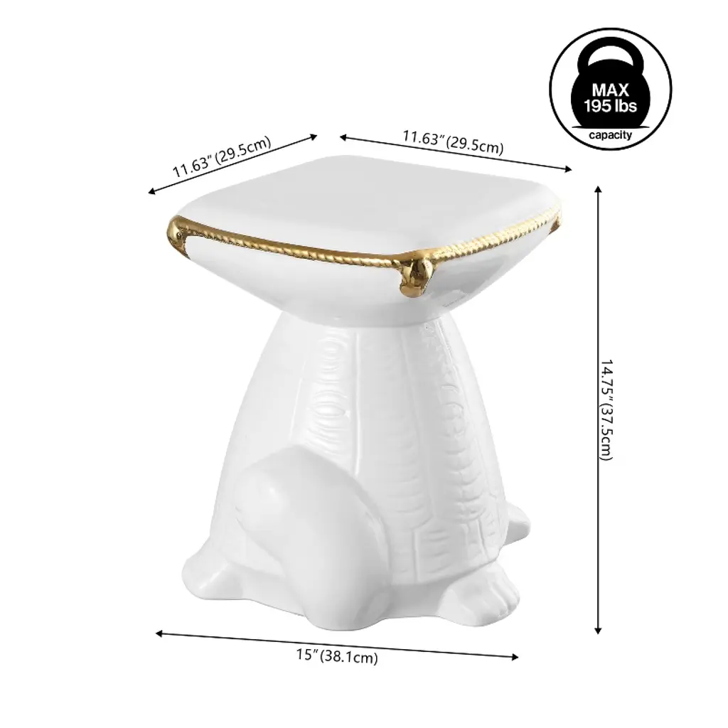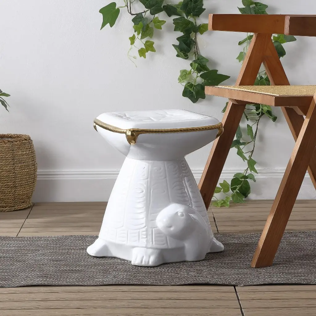 Jonathan Y Caspian 14.75" Modern Bohemian Ceramic Turtle Indoor/outdoor Garden Stool, White/gold