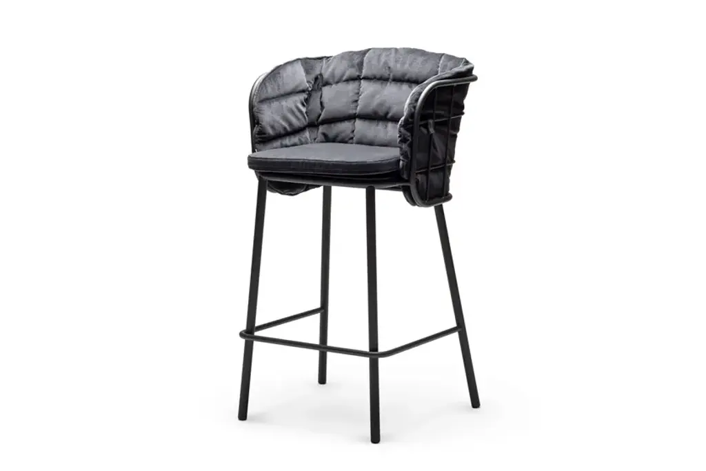 La Jujube SG/B has the structure in powder-coated steel for outdoor use and upholstery on the back and seat.Jujube , designed by 4P1B Design Studio is a full range of sofas, armchairs, ottomans and chairs inspired by a very distinctive graphic design.The tubular metal back identifies the entire collection and became an important decorative element that, depending on the version, manifests itself more or less relevant.The collection presents, in fact, in many variations that are obtained both in relation to selected finishes, both in relation to the way of combining the components.Jujube is actually a real compositional system of modular elements that are combined each other to create different types of seats. The sofa, for example, can be a two-seater sofa, with bench or ottoman, may have two backs or be asymmetrical, can be used indoor or outdoor, depending on the accessories and composition that can be chosen and integrated at any moment.