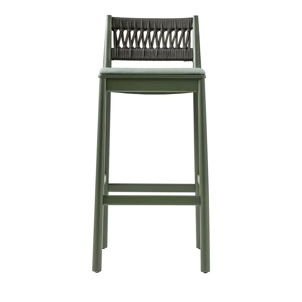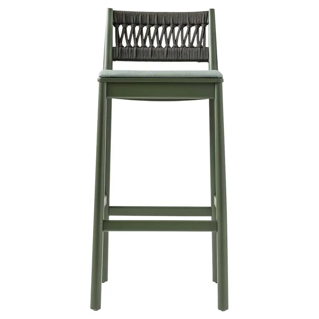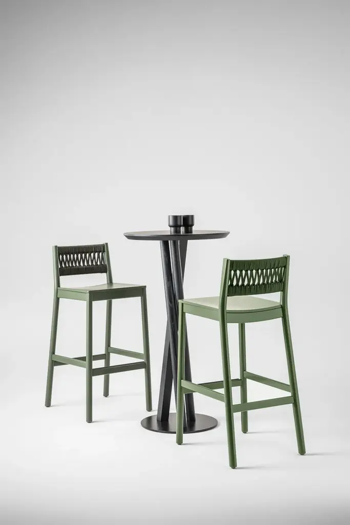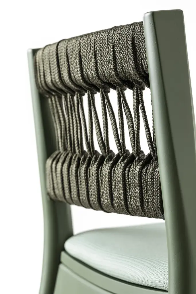 Beechwood chair with or without colored rope back and wood seat (also upholstered with leather or fabric) from the JULIE collection, designed by Emilio Nanni.