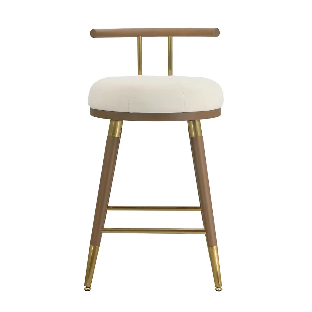 Upgrade your entertainment space or kitchen with the Juniper Cream Velvet Stool! This stool features an ash wood and gold iron accented base and backrest to add a touch of elegant charm and ensure durability. With a soft and luxurious cream velvet seat, you can enjoy your drinks or meals in comfortable style.