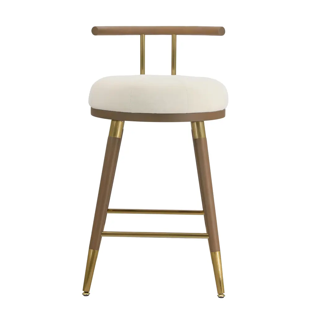 Upgrade your entertainment space or kitchen with the Juniper Cream Velvet Stool! This stool features an ash wood and gold iron accented base and backrest to add a touch of elegant charm and ensure durability. With a soft and luxurious cream velvet seat, you can enjoy your drinks or meals in comfortable style.