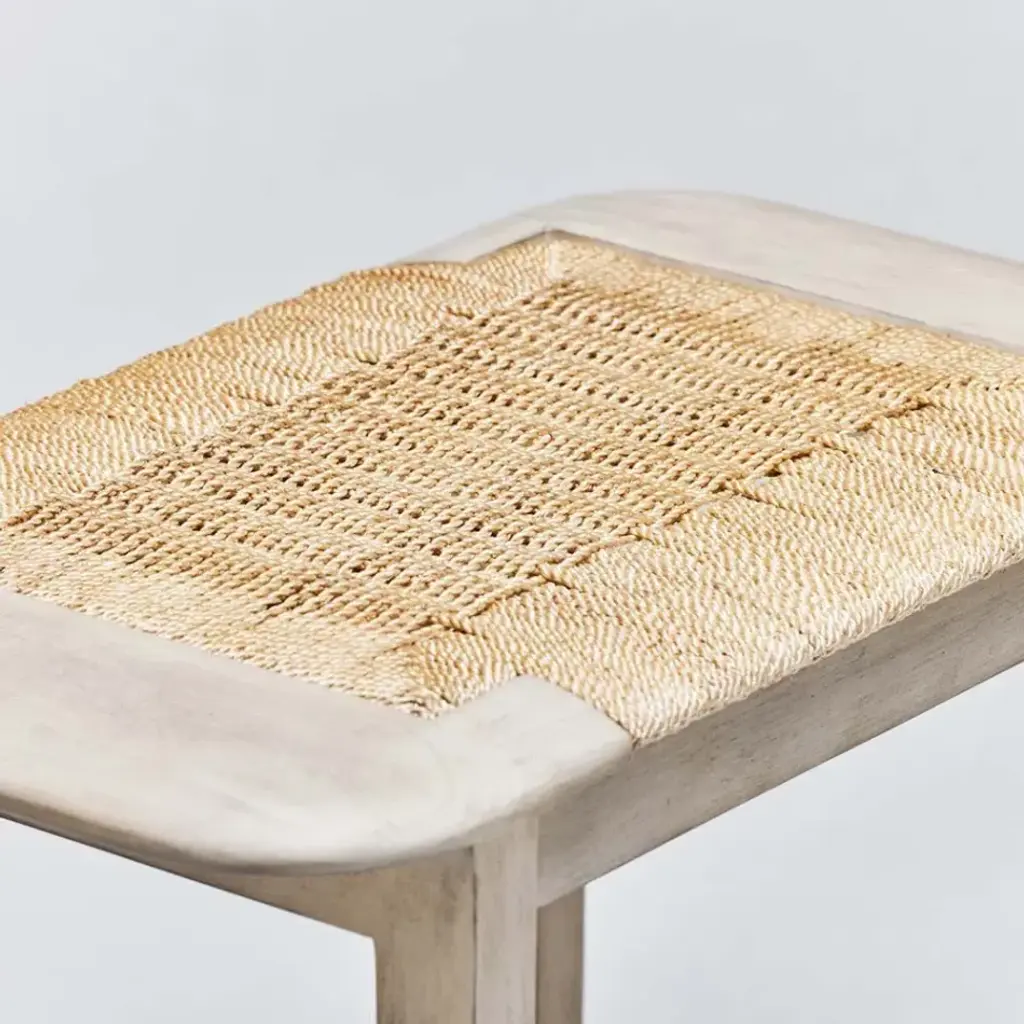 With a nod to Danish modern lines, the Juno Bench is an organic stunner thanks to its marriage of washed white sungkai wood and natural abaca rope. This item is made of solid wood. Item will not be exactly as pictured, subtle deviations in hue after finishing can be expected as a result of natural variations in coloration of the base material.