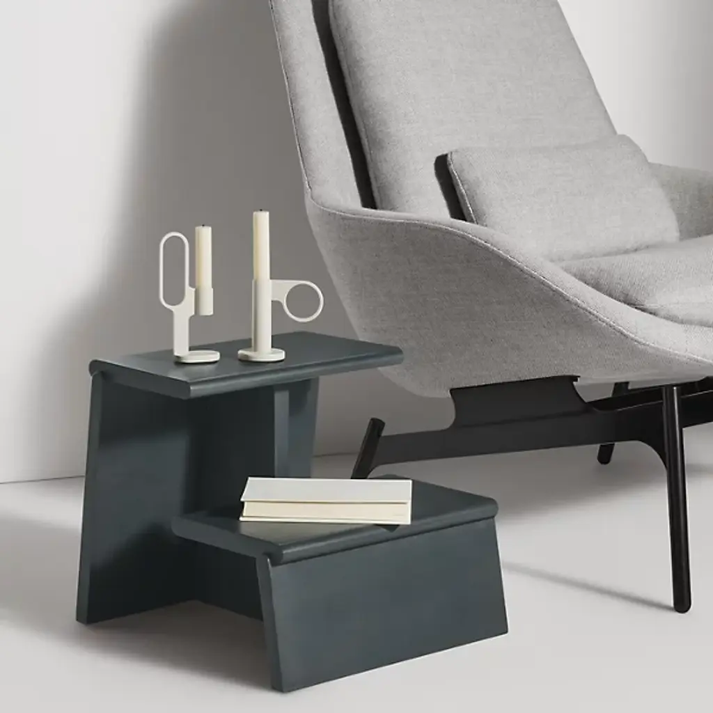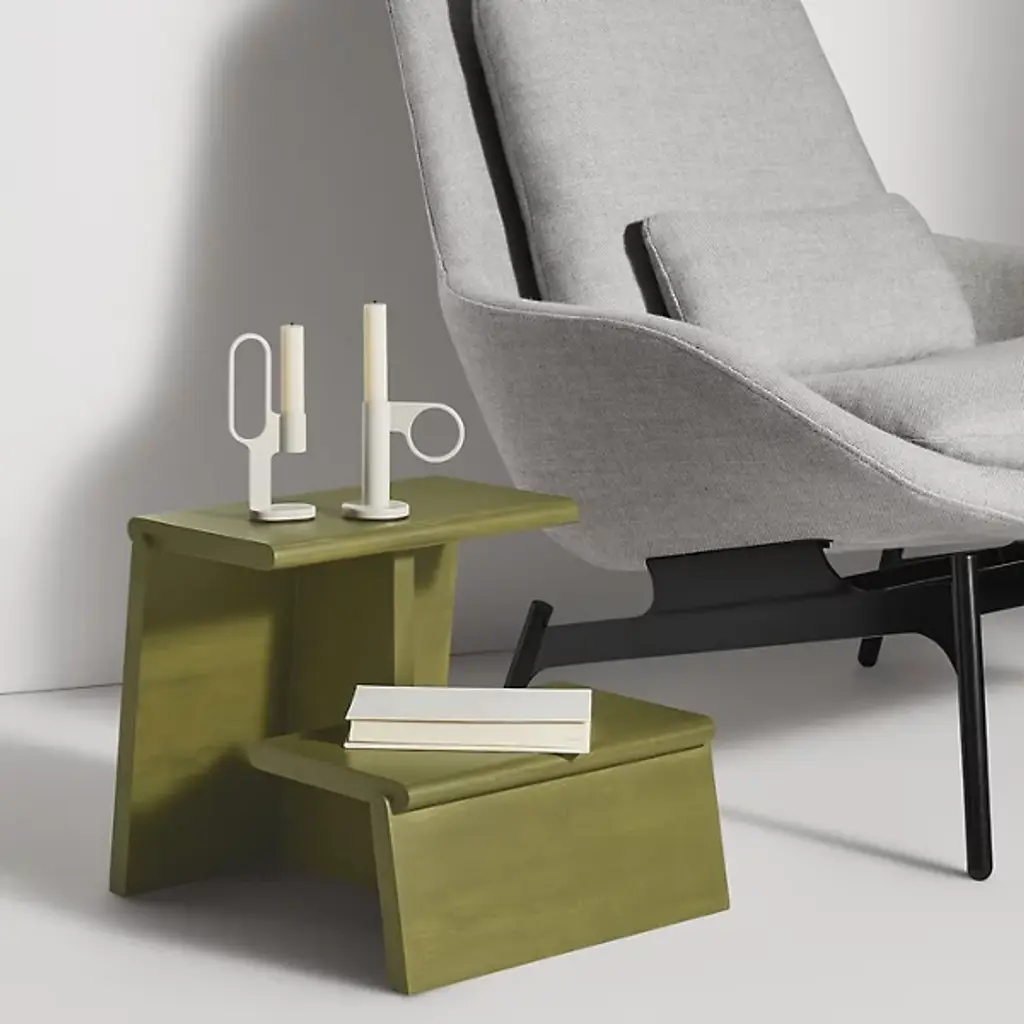 Versatile and visually delightful, the Jut Step Stool from Blu Dot transports interiors with sculptural utility. Sturdy beech wood construction features fine joinery details like the subtle handle grip, providing elegant stability. Anti-slip pads ensure safe footing when used as a climb. Doubled as a side table or plant stand, It offers a brilliant presence whether assisting your reach or displaying decor, elevating with the grace of fine woodwork and easily moved using its integrated handle.