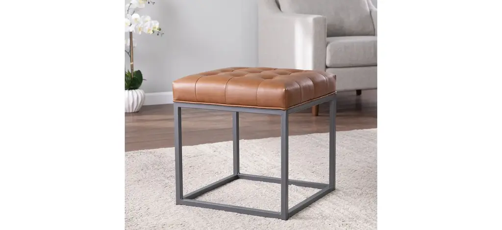 Kali Tufted Ottoman Stool creates a luxurious feel, while a gray metal base completes the contemporary design. Prop up your feet in style while watching the game or pull up for extra seating while entertaining guests. Enhance your updated design when you bring home this modern upholstered stool.