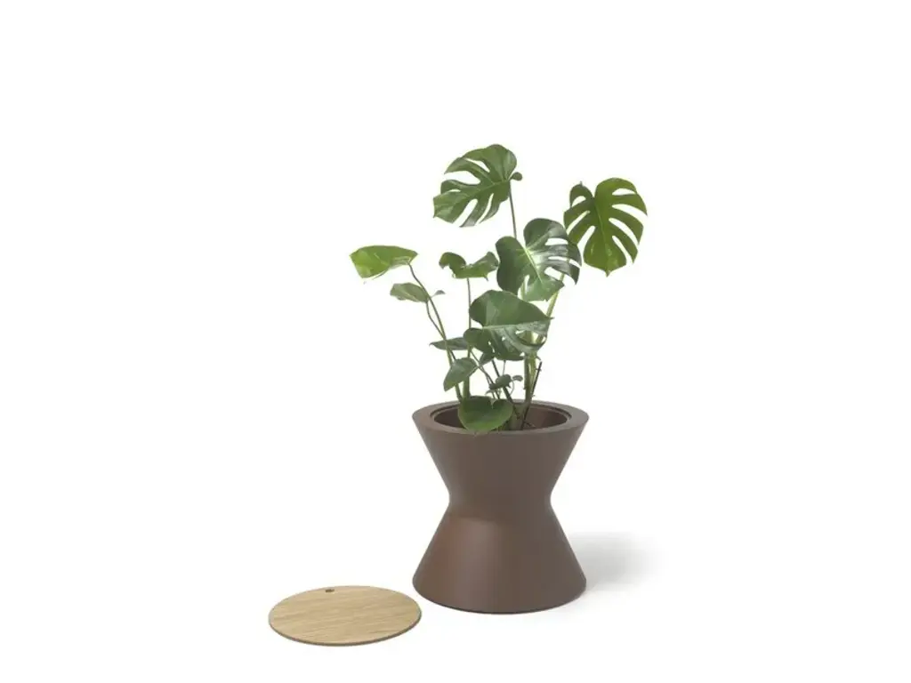KAMBO is a pouf/table made of rigid polyurethane.Kambo e Kesi are two rigid polyurethane stool with the iconic hourglass shape. They are extremely adaptable: from single-seater seat they also become a small table or storage compartment, thanks to an internal space under a cover which is also available in the padded version.