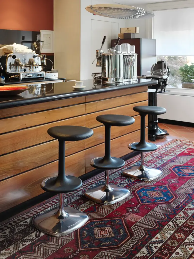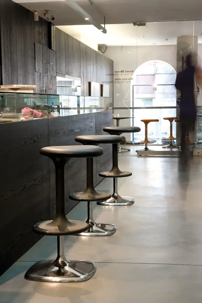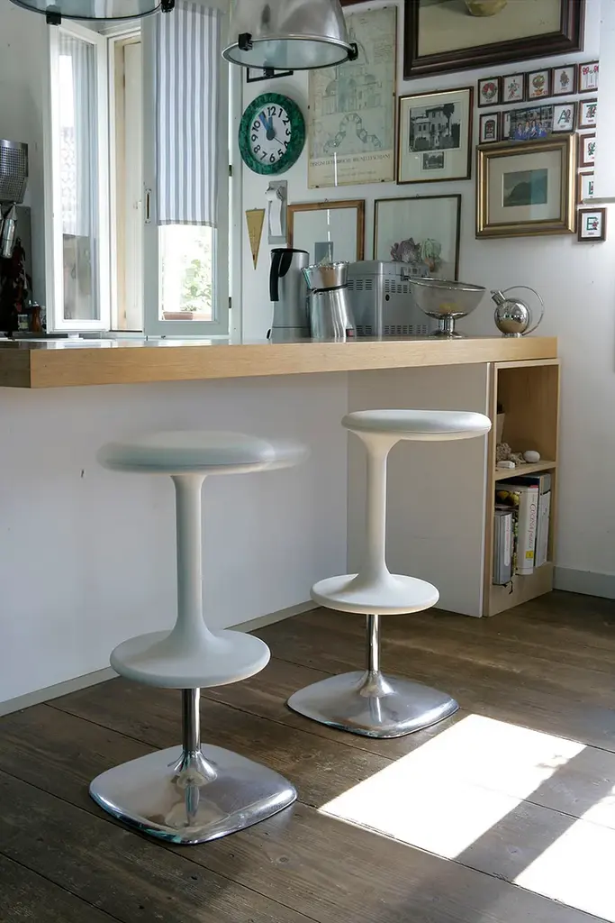 Kant Lift is a Stool with gas lift, in polypropylene reinforced with glass fibre. The base and footrest are made of polished die-cast aluminium.Kant is the stool inspired by the words of the philosopher, that blurs the lines between art and nature. Produced in recyclable reinforced polypropylene, Kant has a carrying capacity of up to 200 kg/440 lbs. of weight despite its characteristic cantilevered construction. Suitable for both domestic and contract environments. It's supplied with gas lift, and the base and the footrest are crafted from die-cast aluminium.