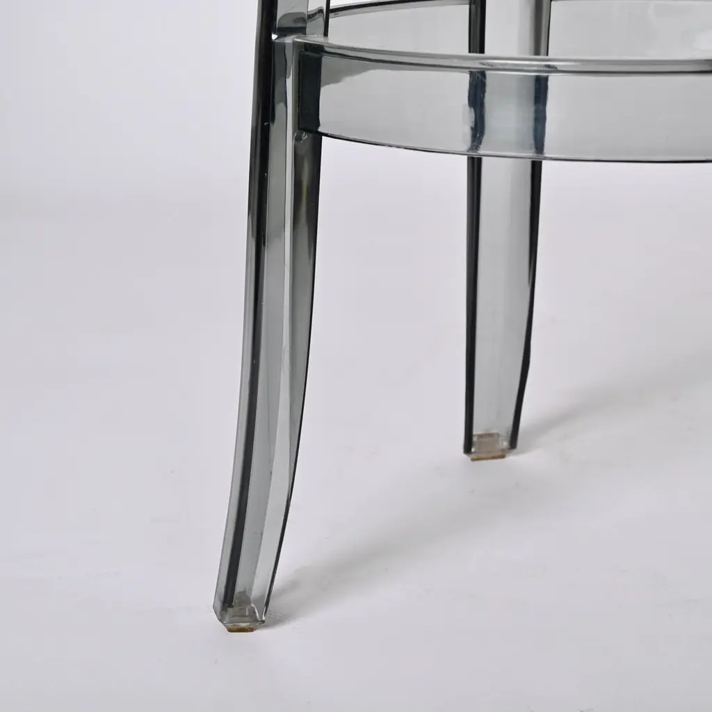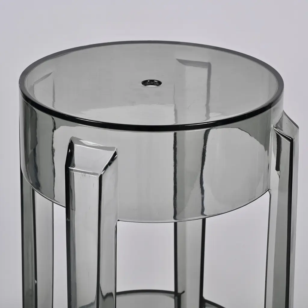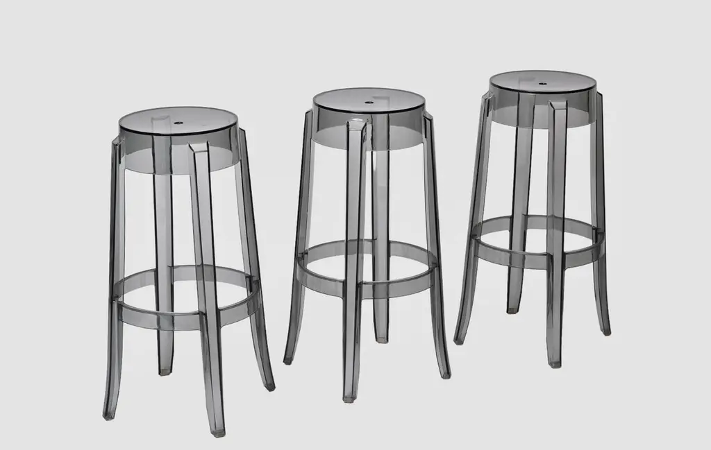 The Ghost stool is built from a single block of smoky grey polycarbonate which makes it indestructible and allows it to survive anywhere.It is suitable for both closed and open spaces and embraces all types of furniture and culture.A wonderful minimalistic stool that adapts to both indoor and outdoor settings.An evolution of iconic postmodern design, the Charles Ghost is based on the infamous Louis Ghost chair. Inspired by furniture of the 1800s, this glossy stool is the creation of superstar designer Philippe Starck combining an eclectic mix of classical profile, modern form, and futuristic construction to give a contemporary twist to traditional seating.