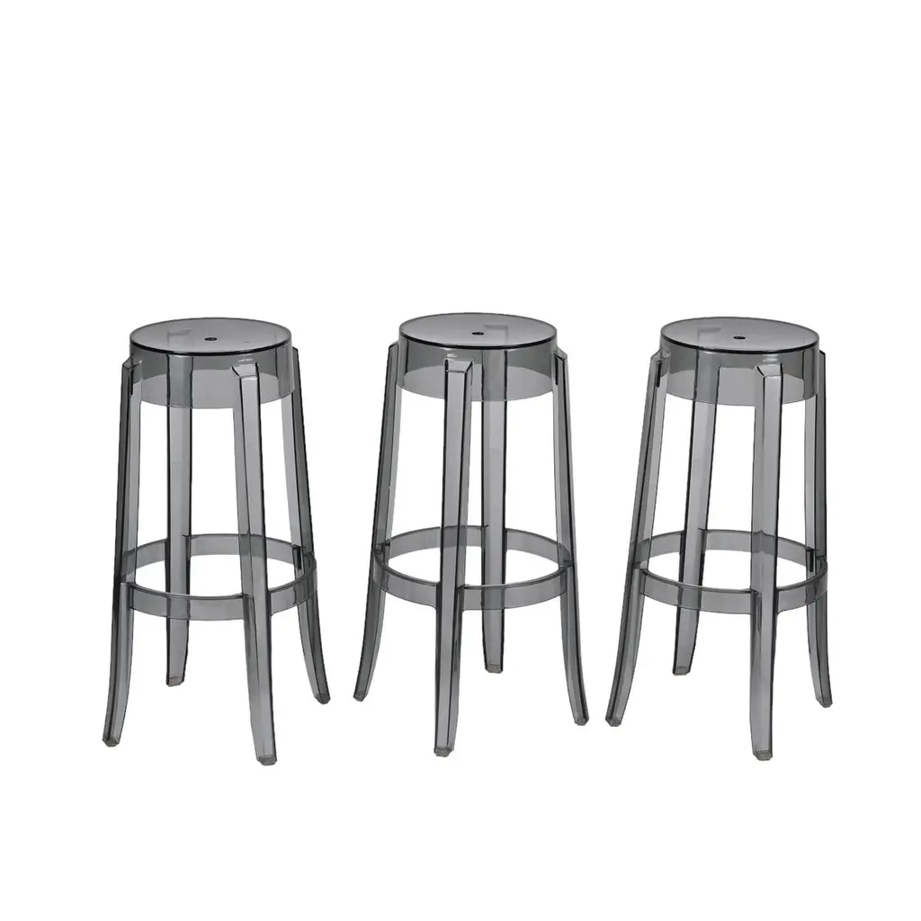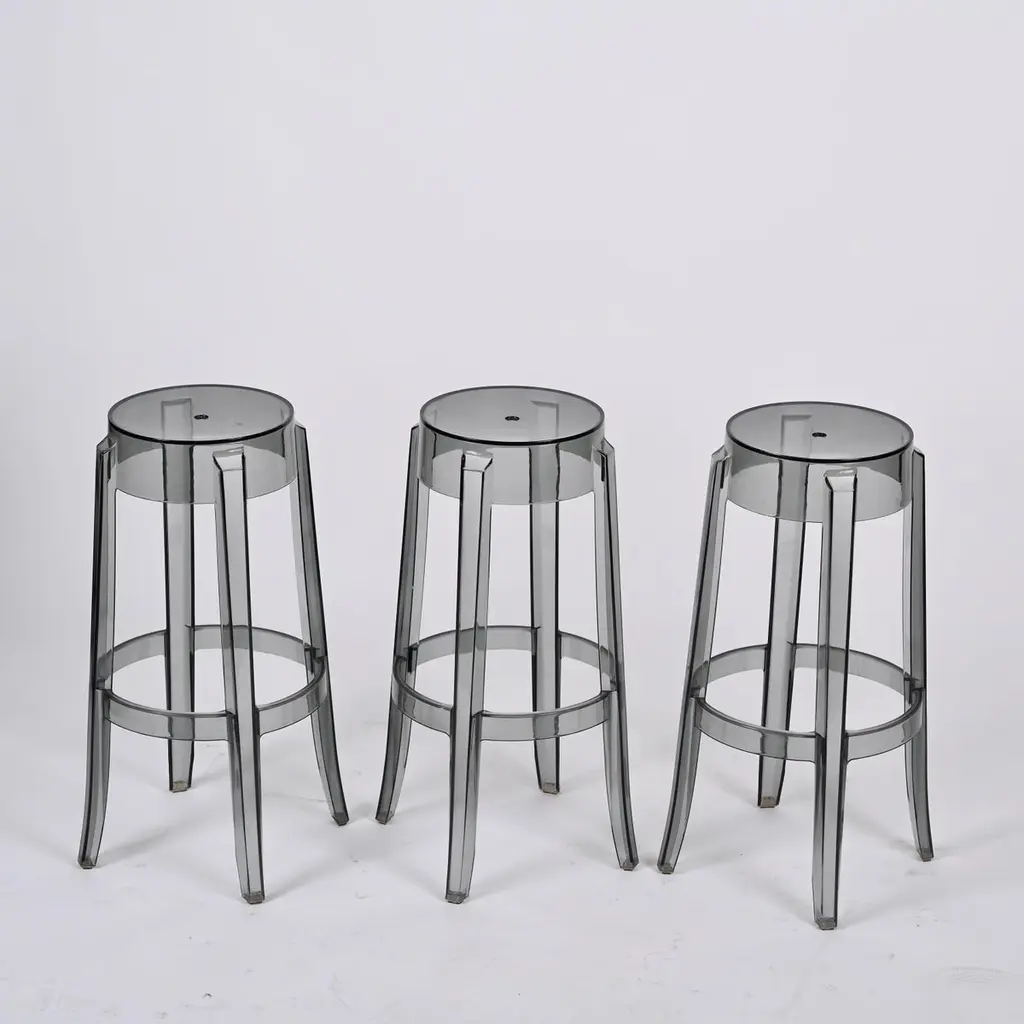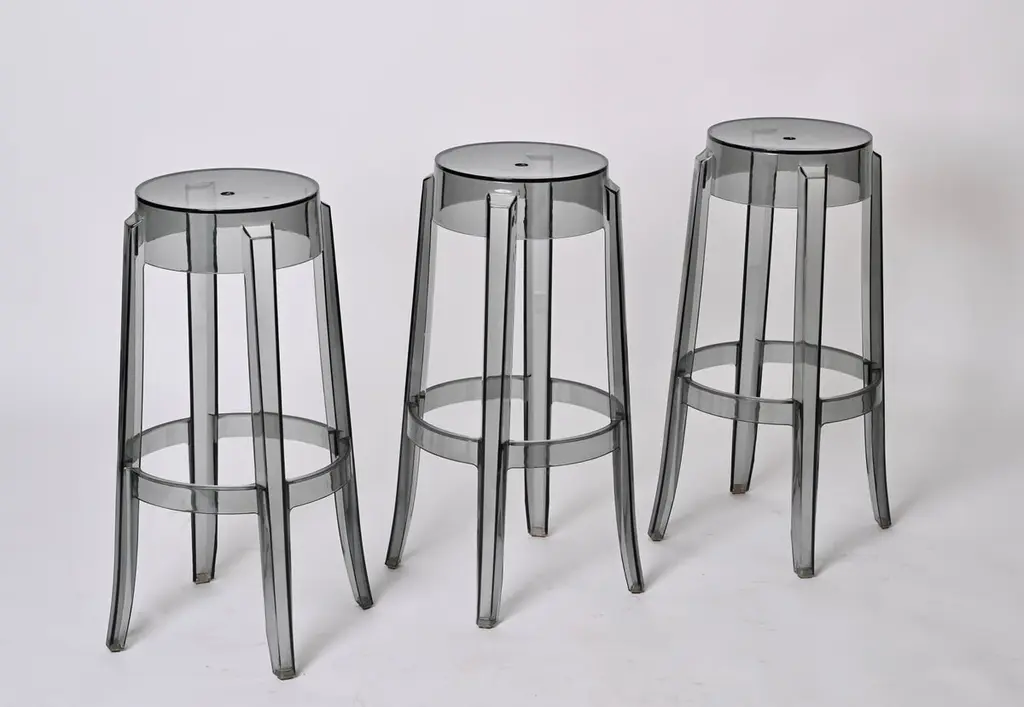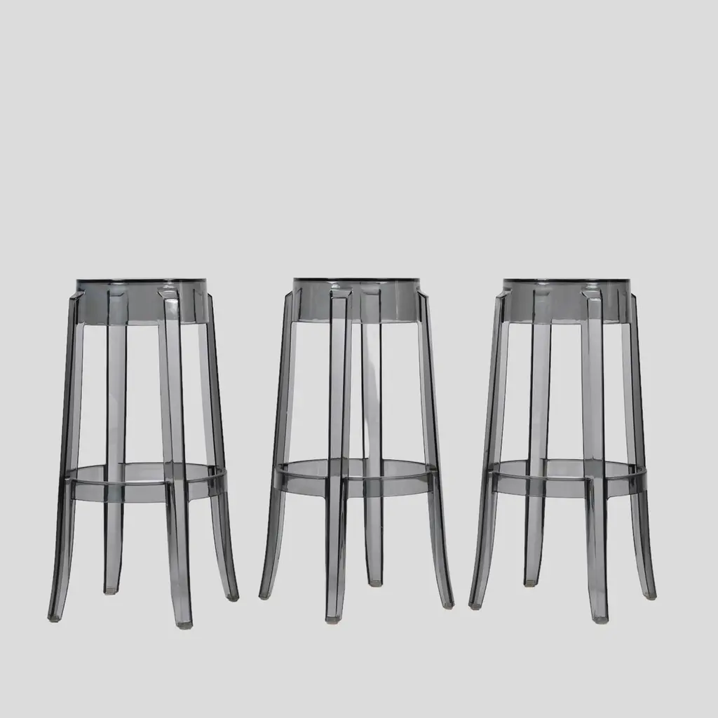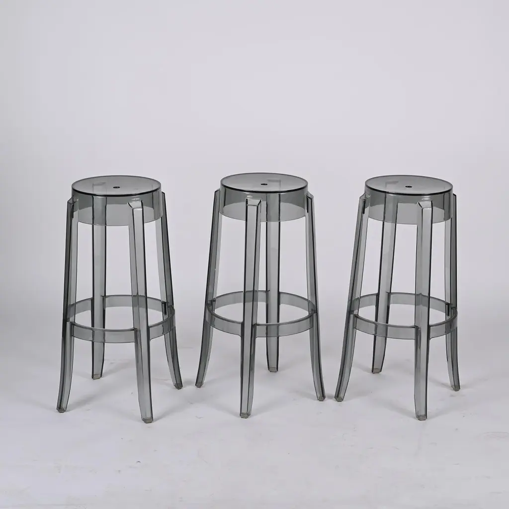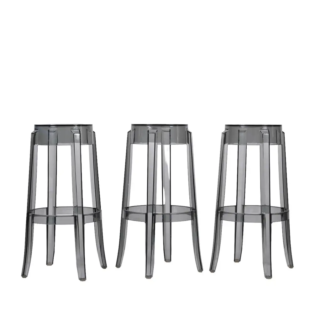 Kartell Charles Ghost Large Stools In Smoke Grey By Philippe Starck, Italy
