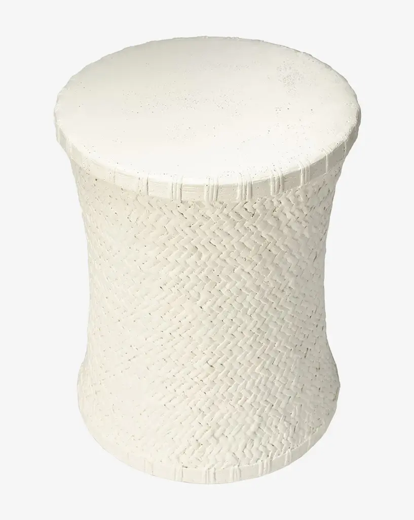 Made from durable stonecast, the Keira Stool combines intricate basket weaving with a soft and gracefully curved form. Rich with texture and character, it infuses any room with organic warmth and subtle sophistication.