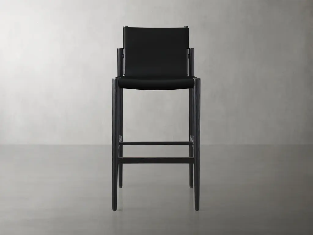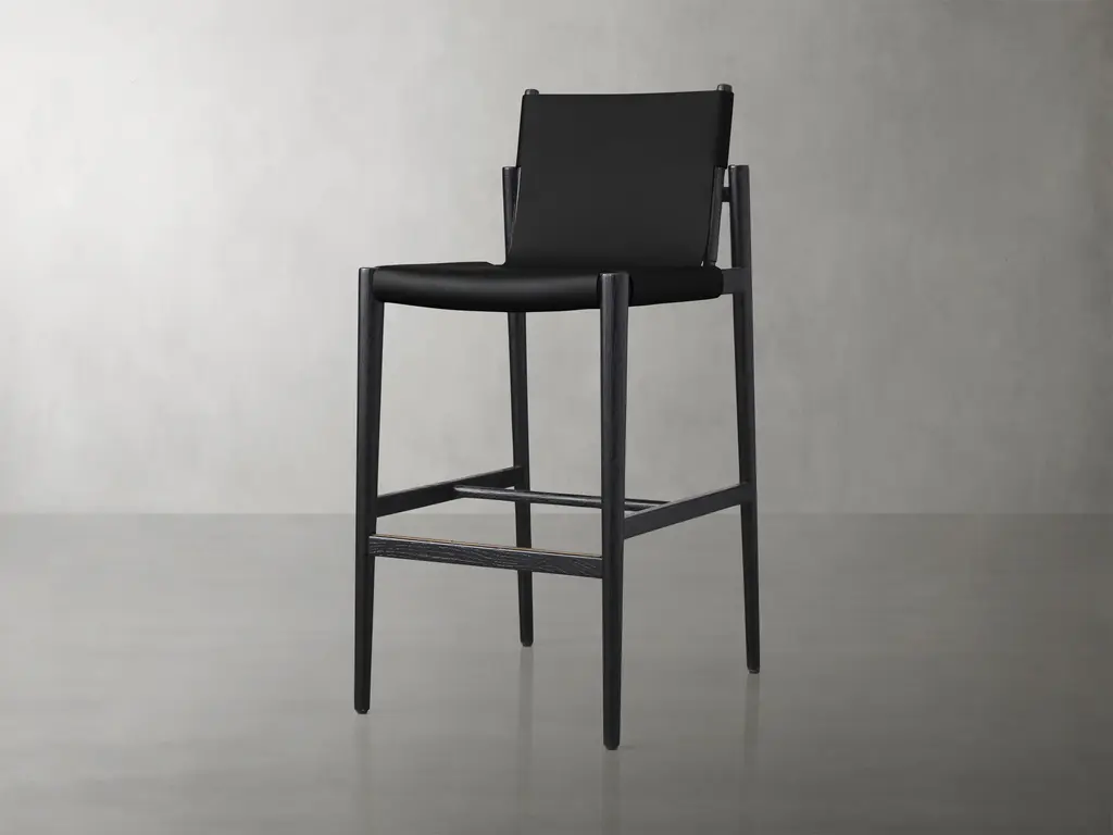 Pairing durable leather with a solid oak wood frame, our Khai Collection delivers lasting comfort as well as fashion-forward design. Featuring a relaxed sling-styled seat and a richly finished frame accented by a metal kick plate, Khai’s mixed-material silhouette blends seamlessly into any kitchen space.