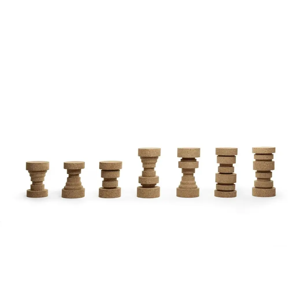 King&Queen are stools / coffee tables in turned cork. Inspired by the pawns on the chessboard.