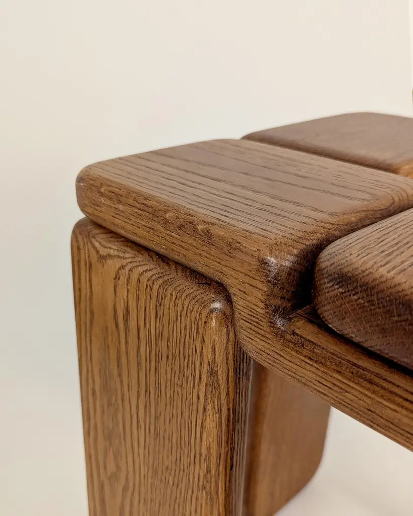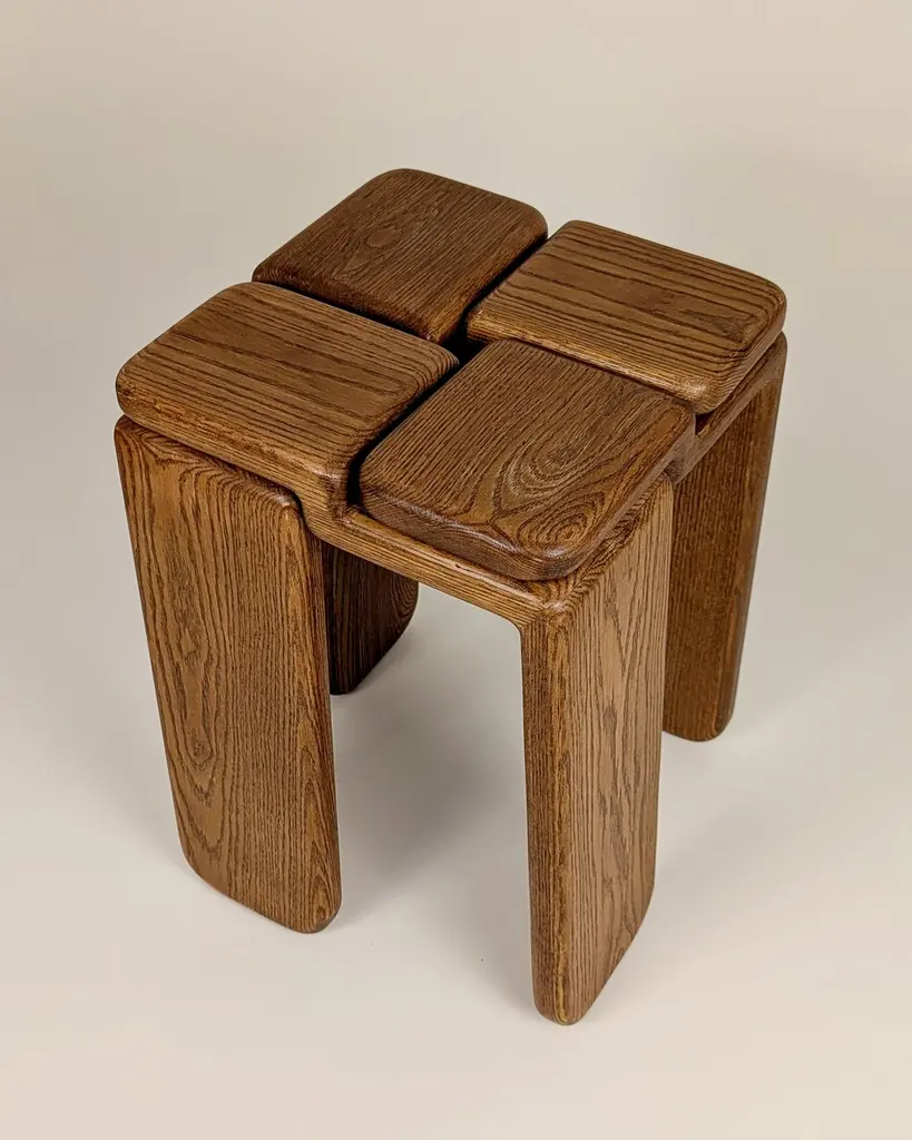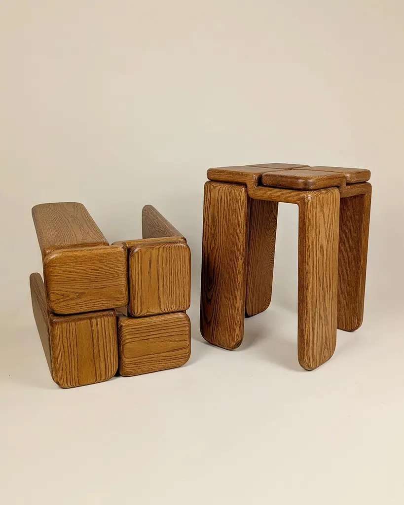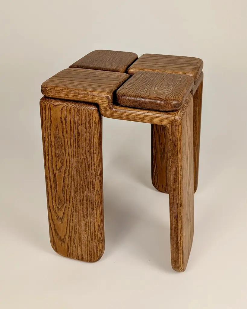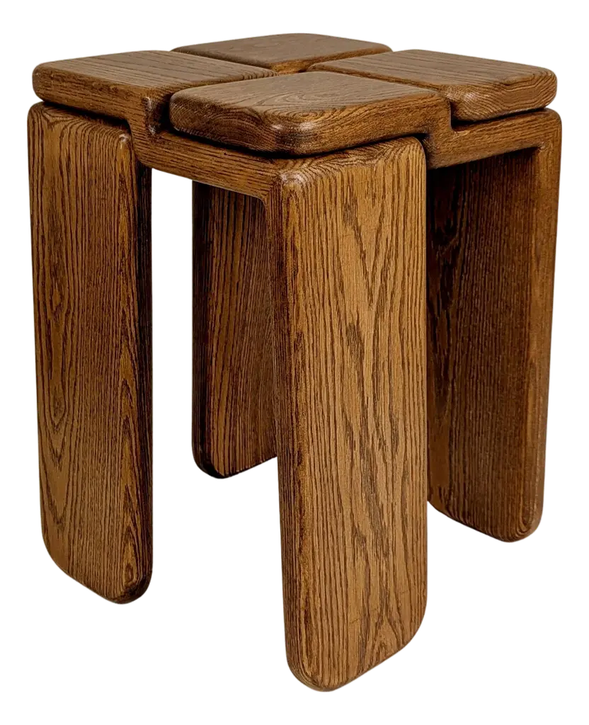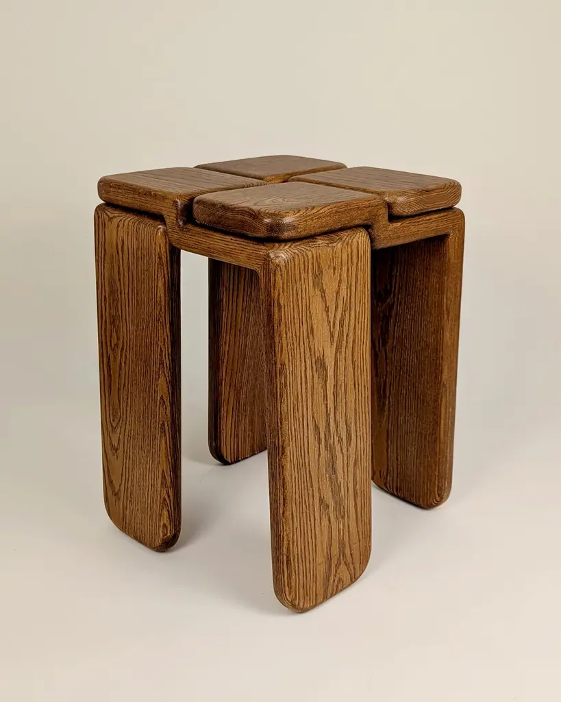 Knot Stool / Side Table by Luis GimenoDimensions: W 32 x D 32 x H 45 cmMaterials: Solid Red Oak.The Knot Stool is a handcrafted piece made from red oak, features an interlocking design that merges stability with visual rhythm. Its an example of the transforming capabilities of curated details.About: Luis Gimeno is a furniture and lighting designer driven by a passion for creating thoughtful, timeless, and unique pieces. His design philosophy is both fun and functional, rooted in the belief that great design should transcend trends and seasons. Instead of mass production, he focuses on quality-driven, low-impact processes that prioritize craftsmanship and sustainability. Each piece is made to measure, ensuring durability and individuality. Inspired by the bold, organic forms of 60s and 70s design, Luis explores playful yet balanced aesthetics, using harmonious and natural color palettes to create graceful, inviting spaces. His work embraces natural materials—sand, glass, and wood—always considering both social and environmental responsibility. Each piece its meant to resonate with an aspect of himself and hopefully others, helping others creating their ideal home.All our lamps can be wired according to each country. If sold to the USA it will be wired for the USA for instance.