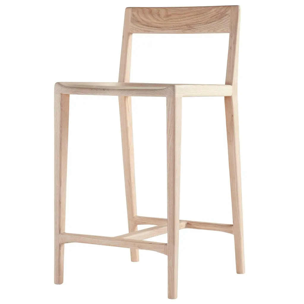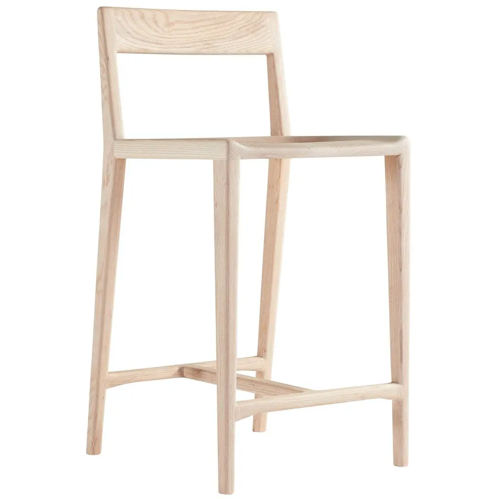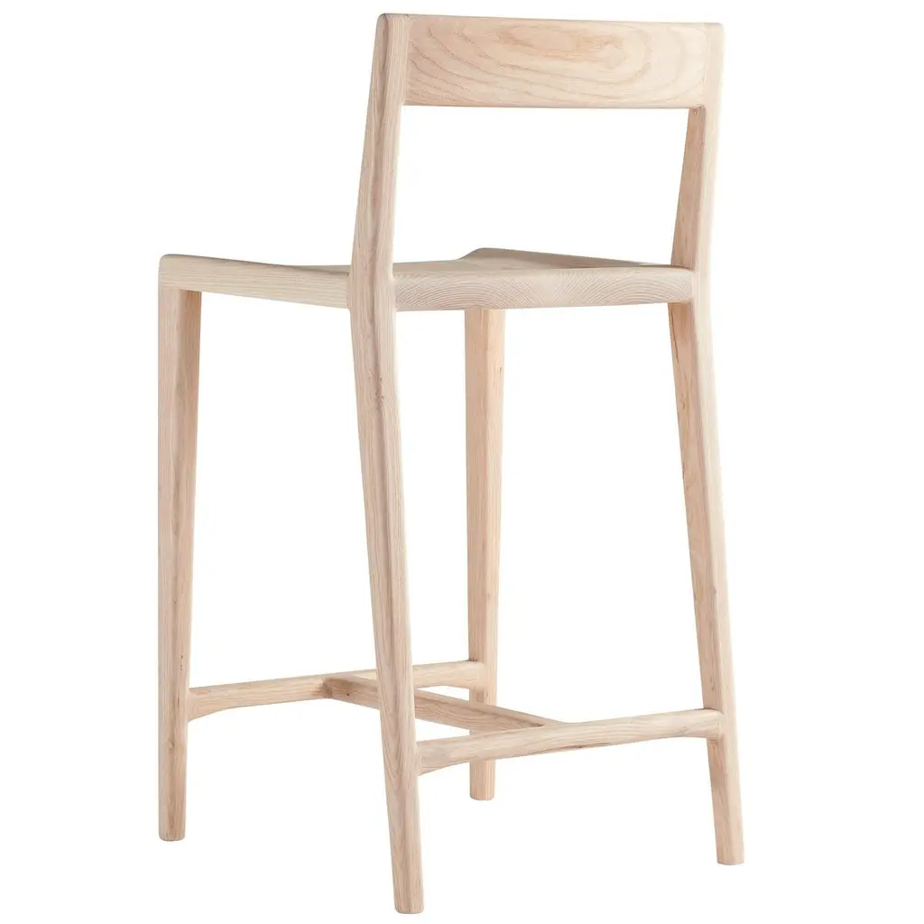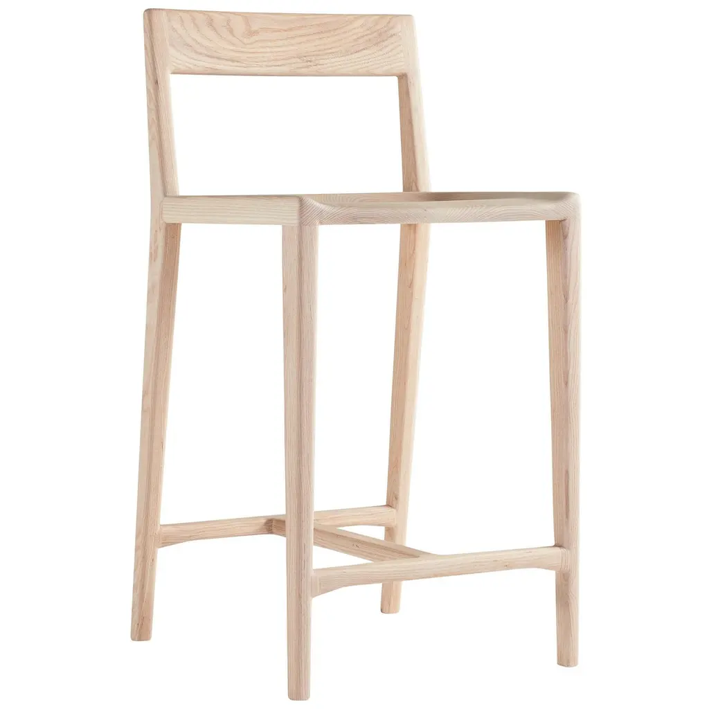 The Kompson line is a tribute to the grace of mid-century modern aesthetics, elegantly merging style and ergonomics. Clean lines seamlessly blend into contemporary spaces while the comfortable embrace of the sculpted seat and back invite you to linger, savor, and appreciate. Meticulously crafted in North American hardwoods with mortise and tenon joinery.The Kompson stool is offered in counter and bar heights and three finish options: Natural Ash, Blackened Ash, and Walnut. Our finishes are water based, 2 component urethanes that have high scratch and chemical resistance. The stool comes with nylon floor glides installed.Kompson stools are made to order and have an approximate lead time of 12 weeks. Please feel free to inquire for current lead times.