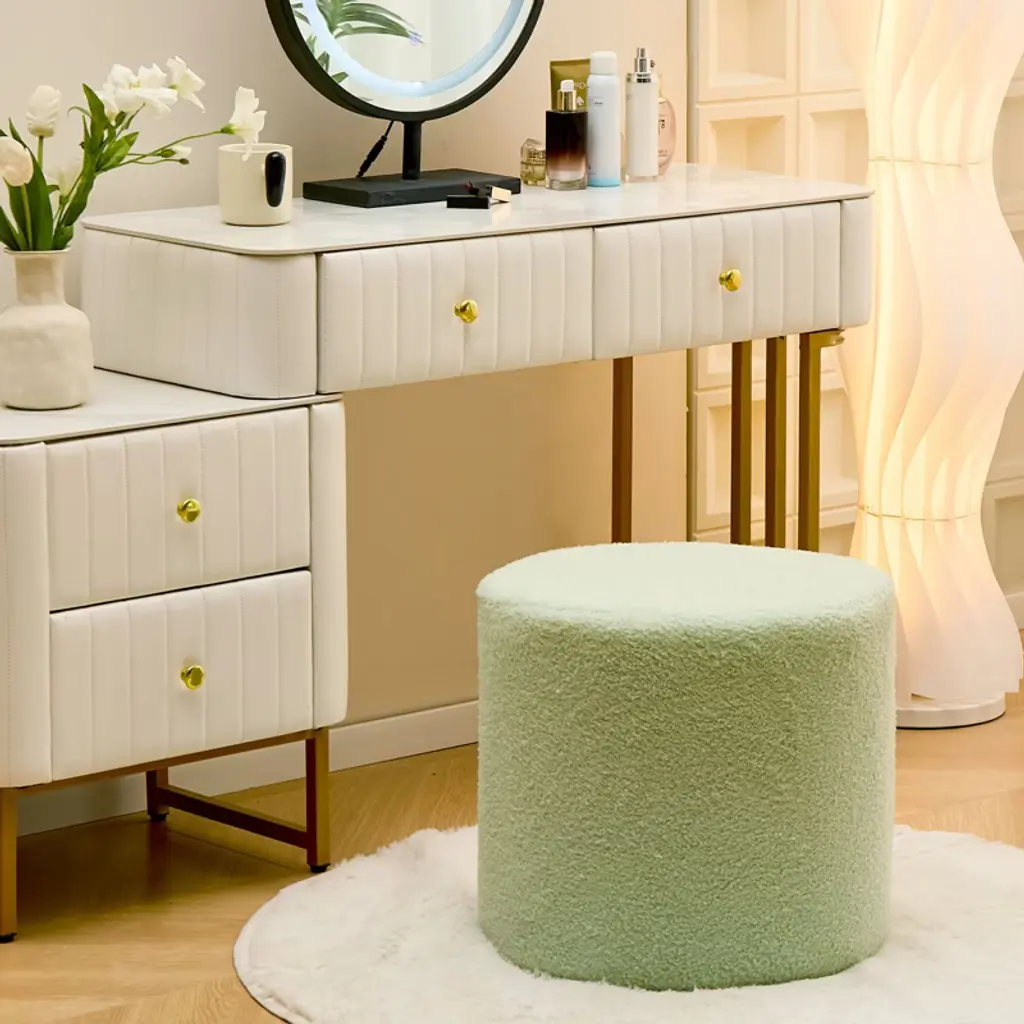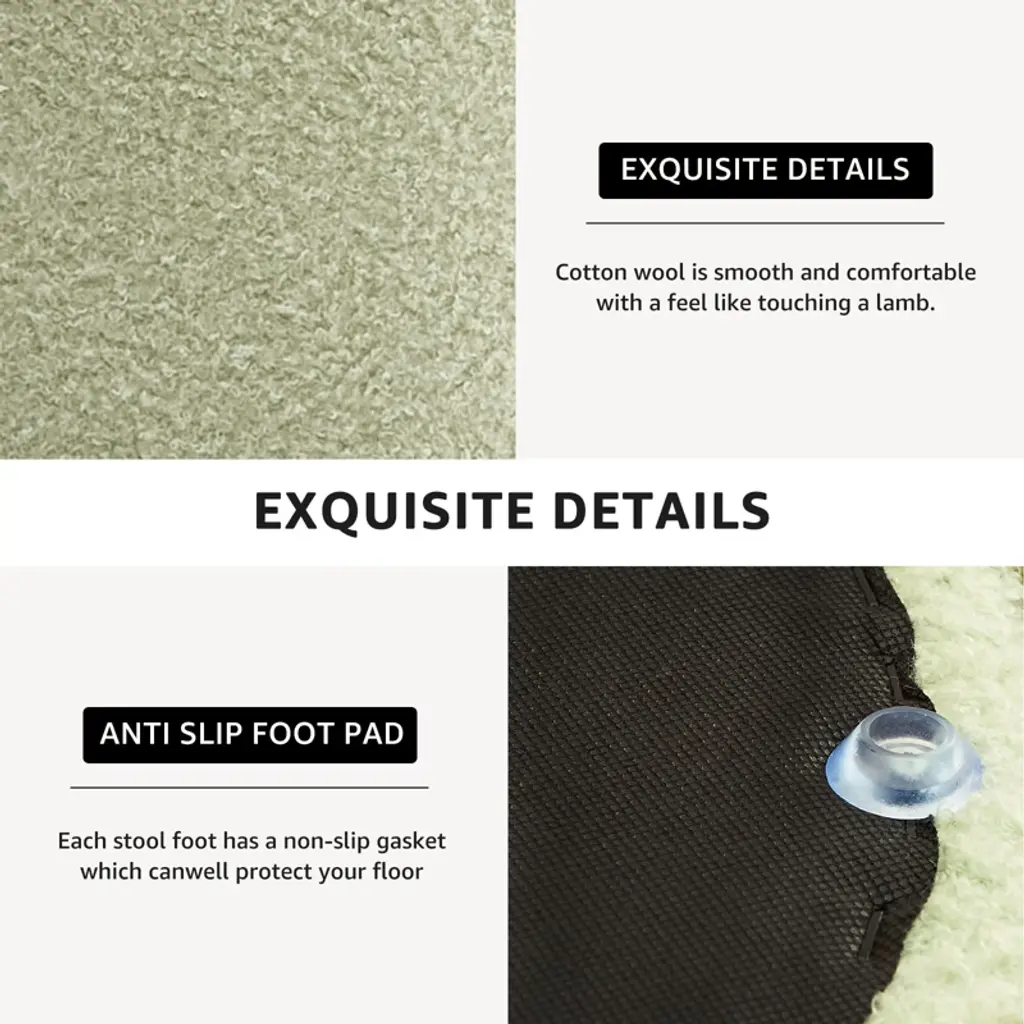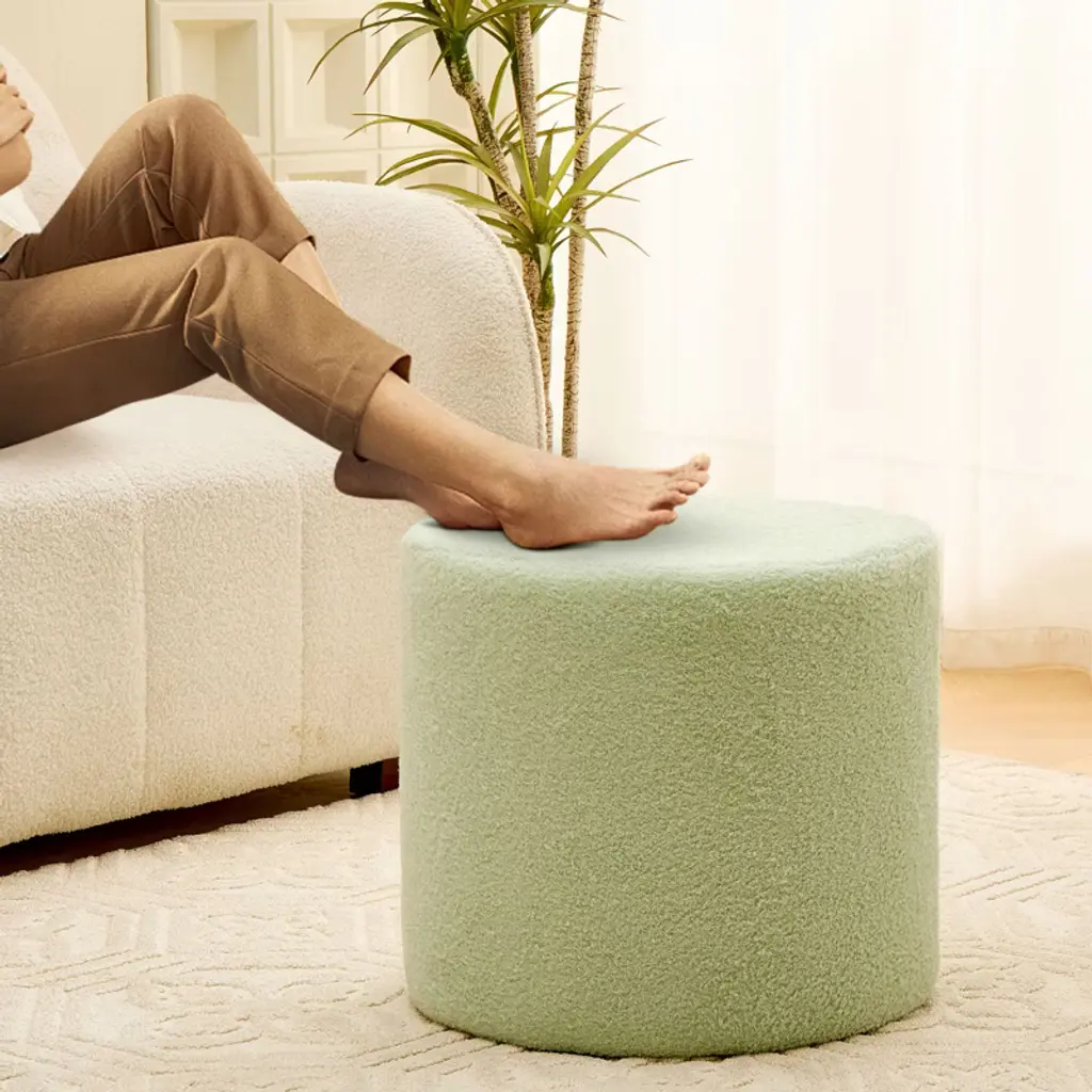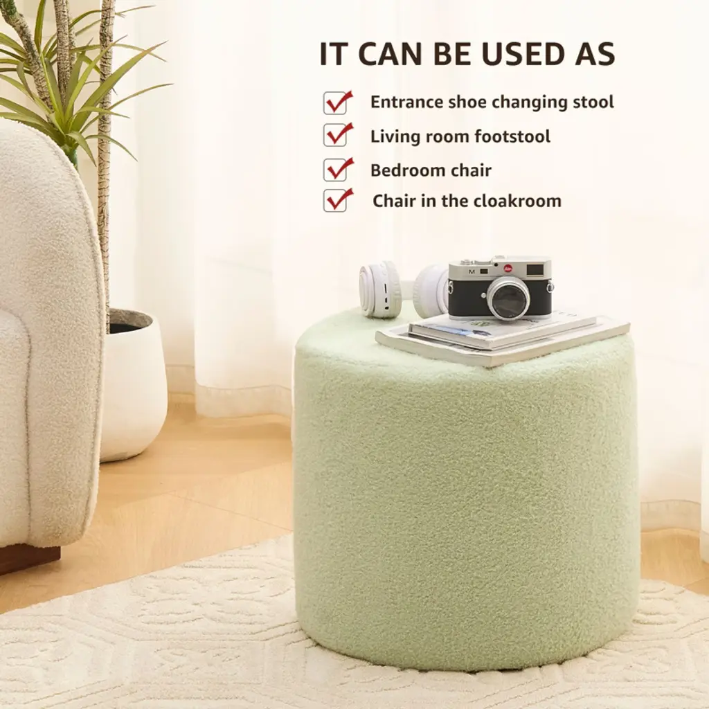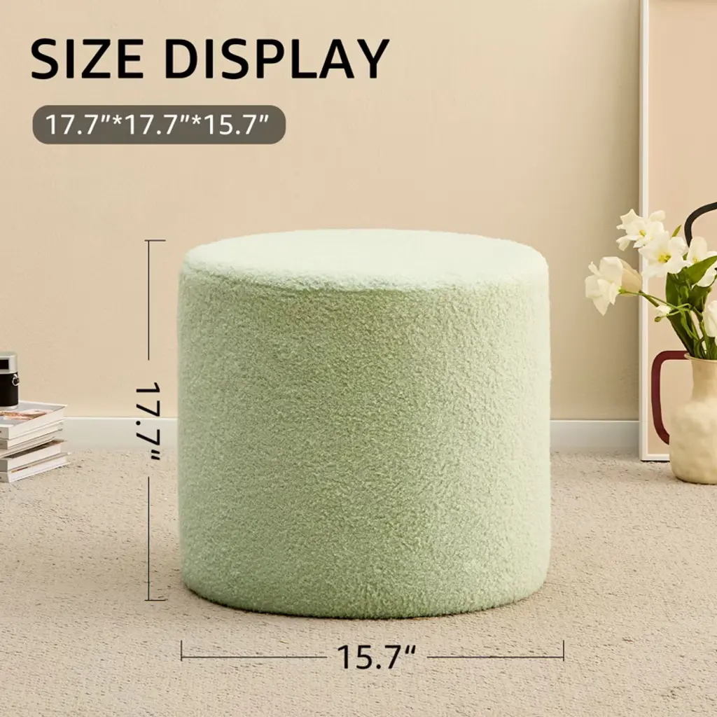 Ktmbdw Round Teddy Fleece Ottoman With Soft Padded Seat, Multi-functional Footrest, Upholstered Foot Stool For Living Room, Bedroom, Green