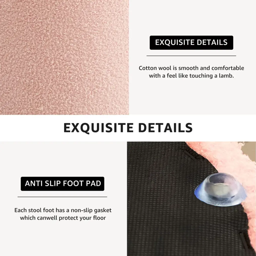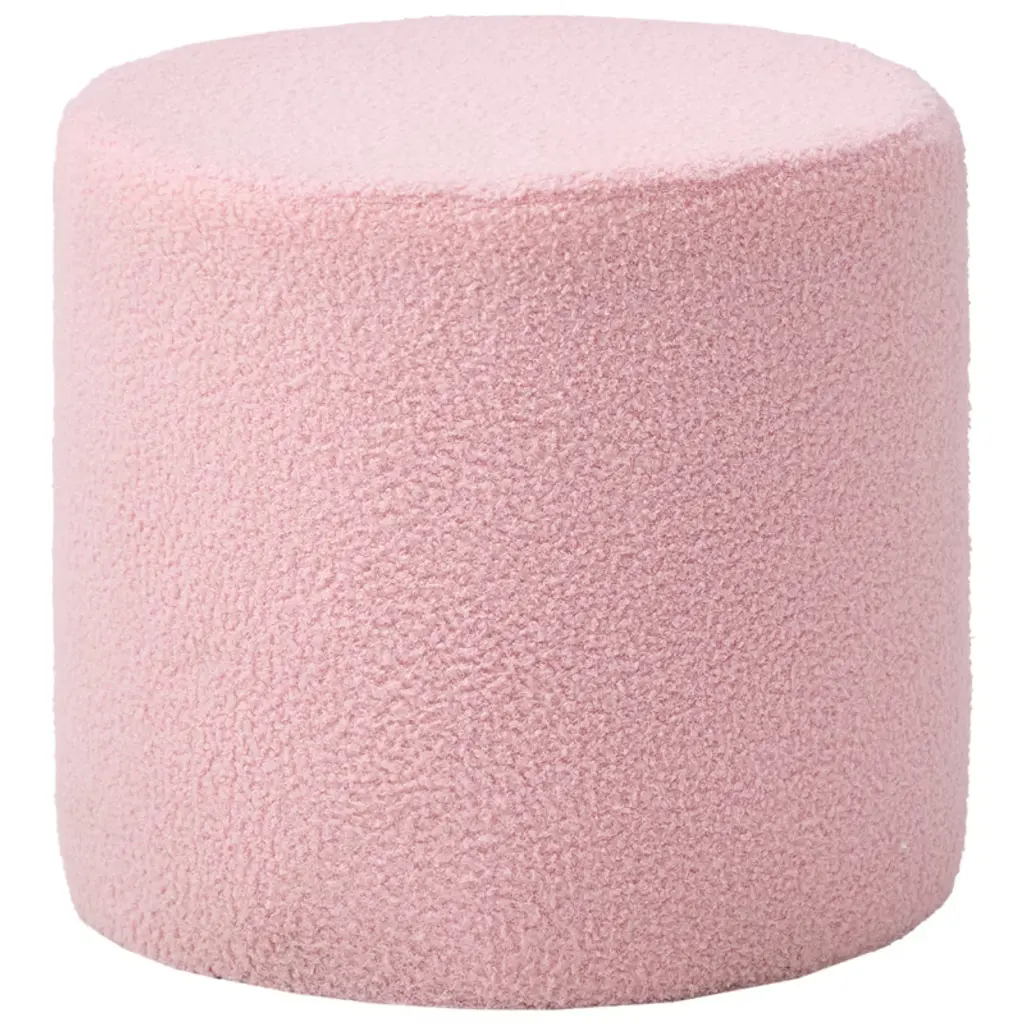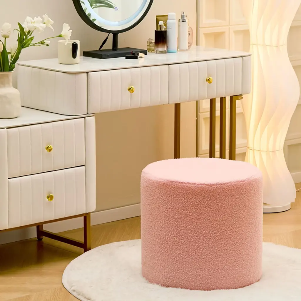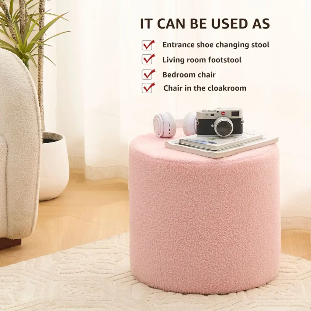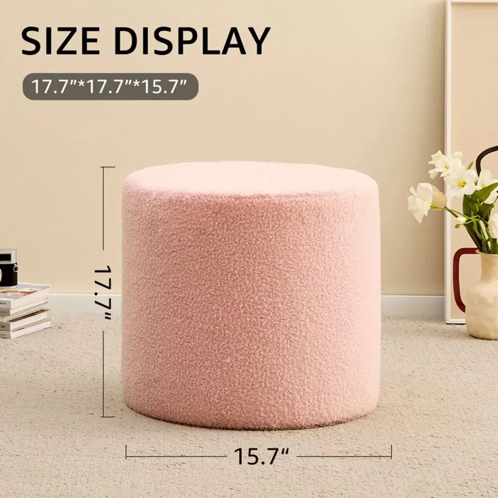 Ktmbdw Round Teddy Fleece Ottoman With Soft Padded Seat, Multi-functional Footrest, Upholstered Foot Stool For Living Room, Bedroom, Pink