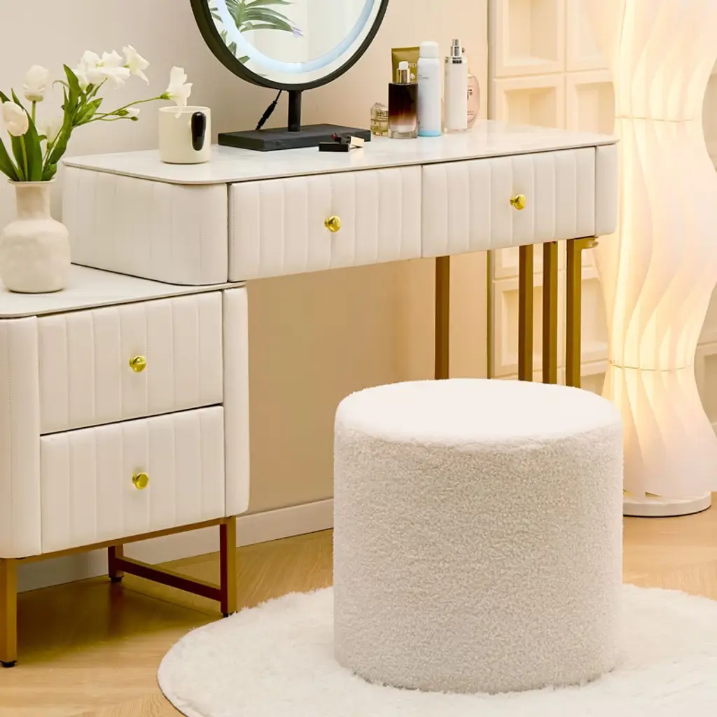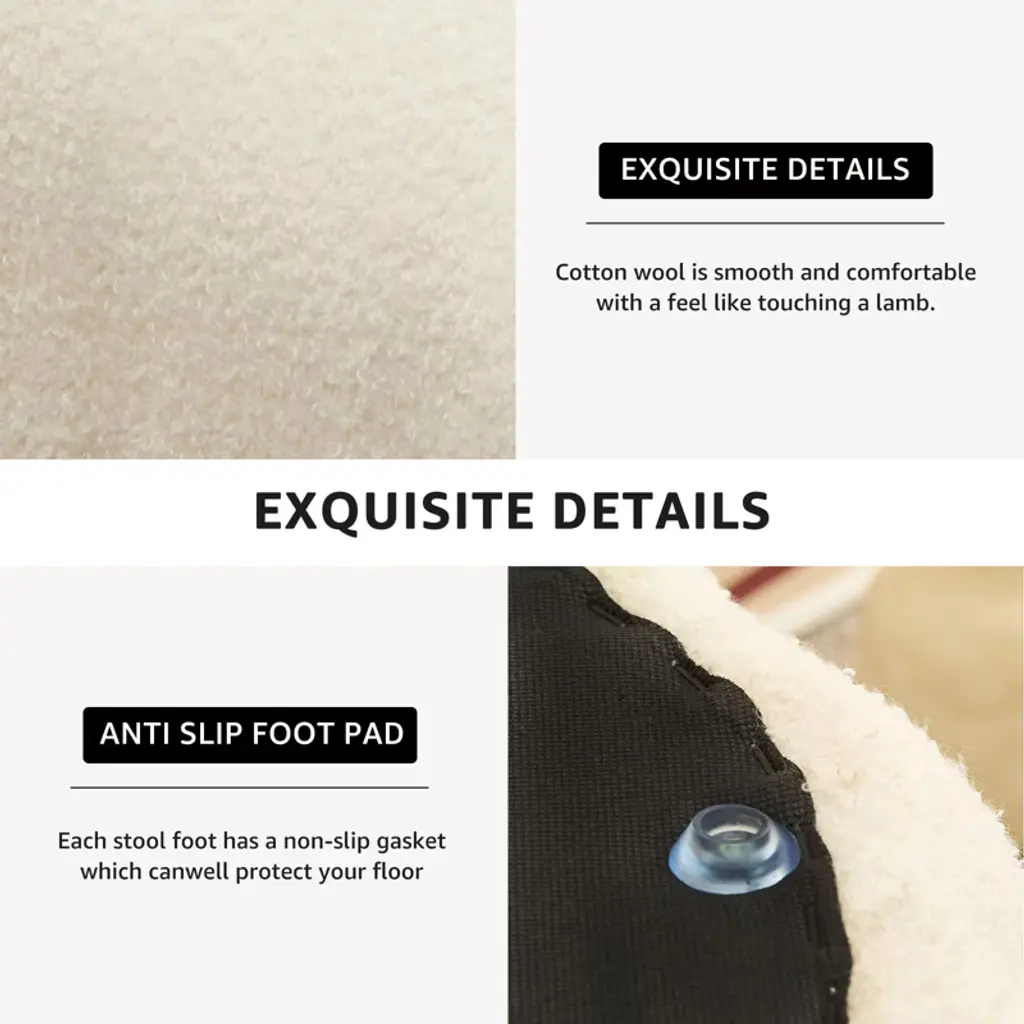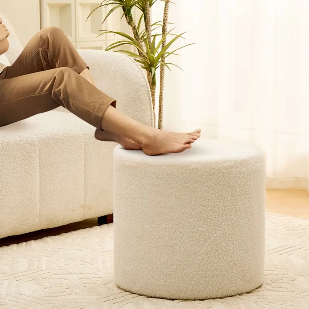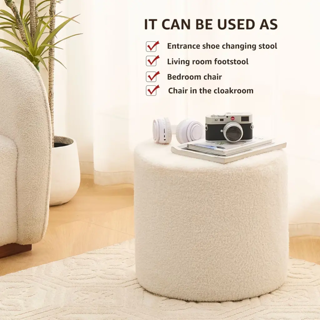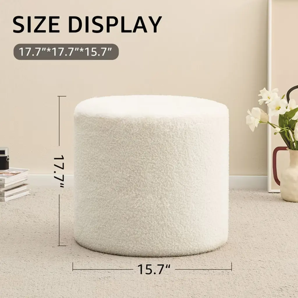 Ktmbdw Round Teddy Fleece Ottoman With Soft Padded Seat, Multi-functional Footrest, Upholstered Foot Stool For Living Room, Bedroom, White