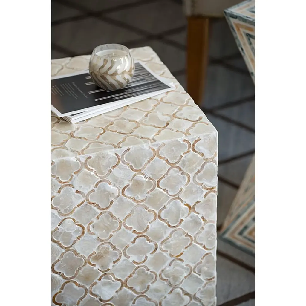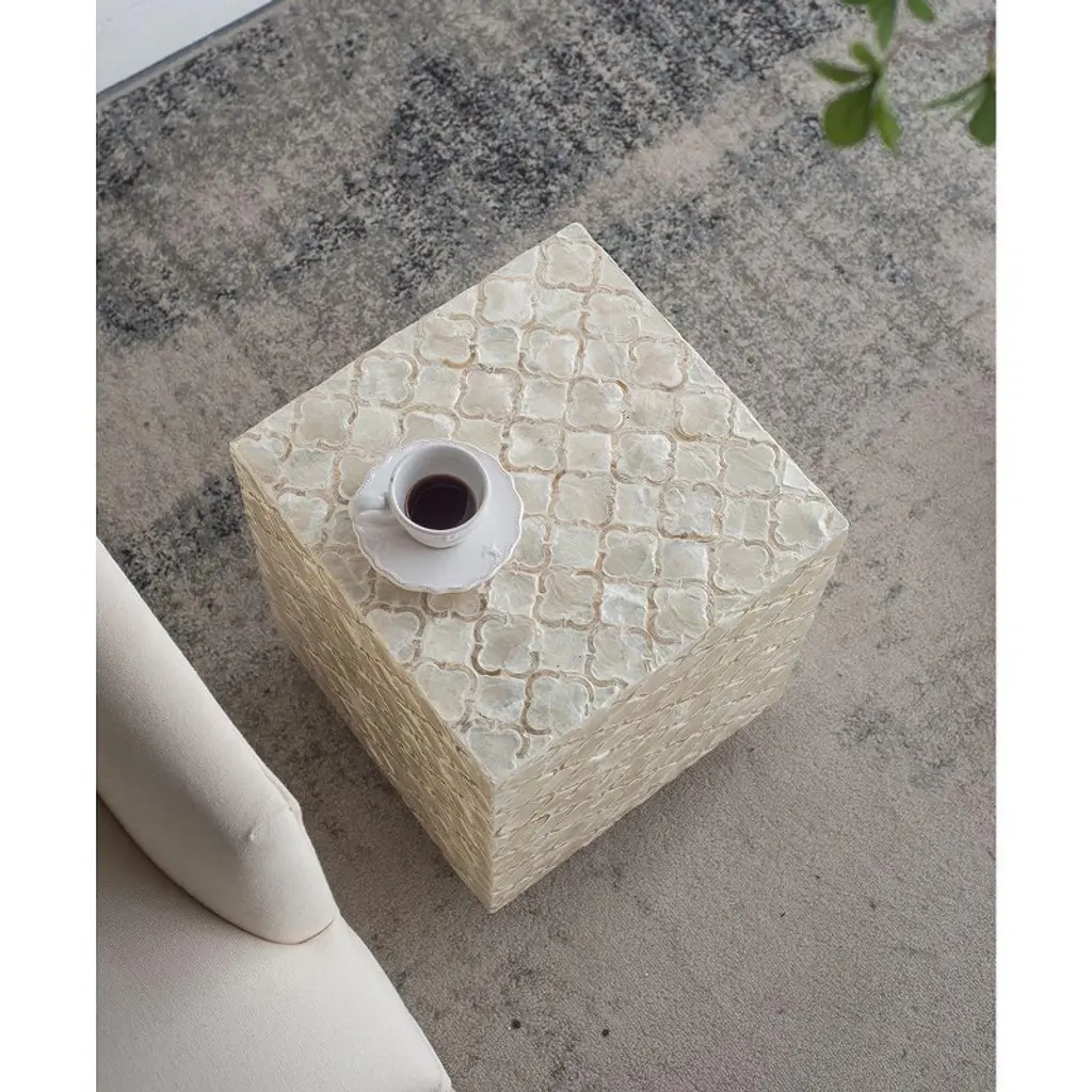 Kumasinova 14x14x18" On-trend Square Capiz Accent End Table,2-in-1 Garden Stools For Living Room & Garden,premium Mdf Sofa Side Table,art Deco