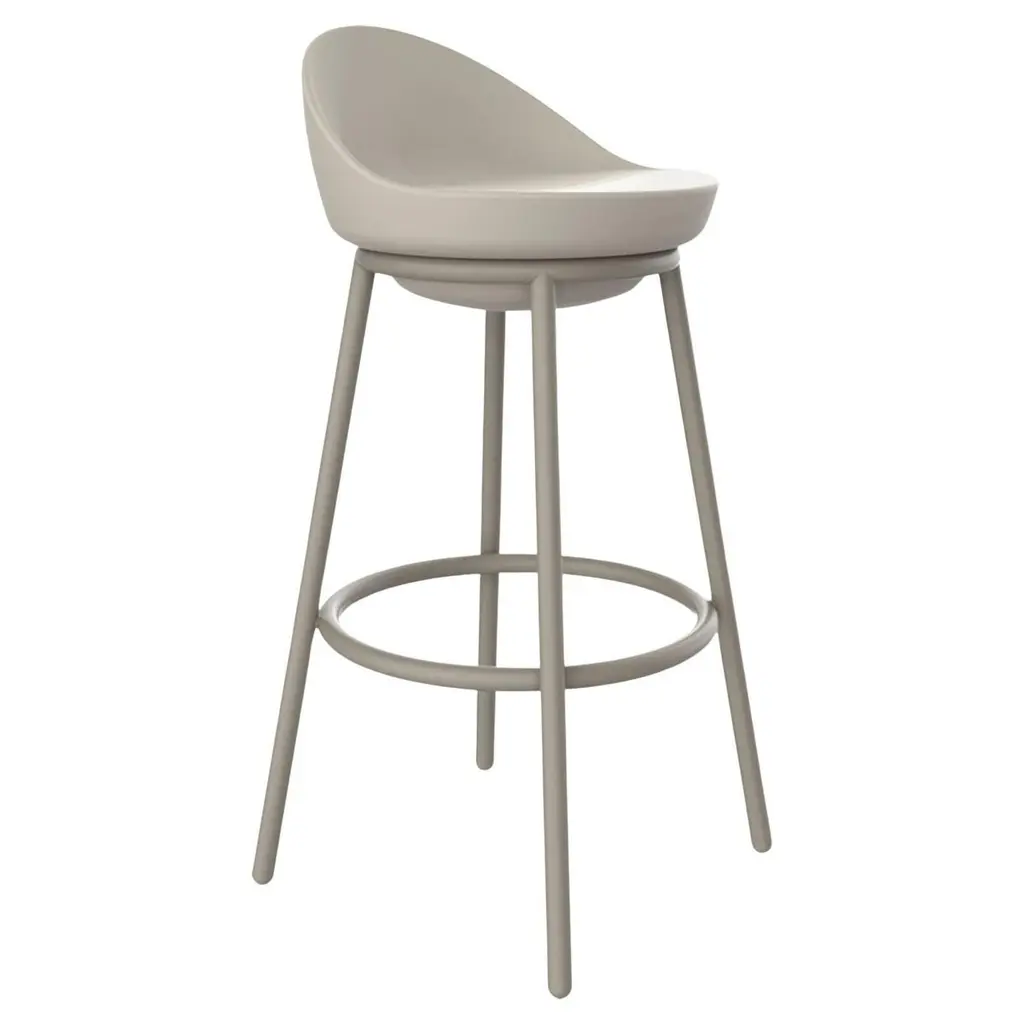 Lace white stool by Mowee.Dimensions: D43 x H91 cm.Material: Polyethylene, Sstainless steel.Weight: 6.7 kg.Also Available in different colours and finishes. Lace is a collection of furniture made by rotomoulding. Its shape resembles a swollen body that looks tightened by a loop and deforms to create a double volume. The distinguishing feature of the collection is the reduction of plastic volumes by incorporating metal structures into the design that lighten the visual weight of the pieces.Möwee is part of the work, effort and commitment of Gaviota, a leading company in the outdoor sector. It was set up as an independent venture to broaden horizons in the outdoor furniture world, with its own distinctive character and way of doing things. Freshness, simplicity, quality and design are at the heart of its DNA.