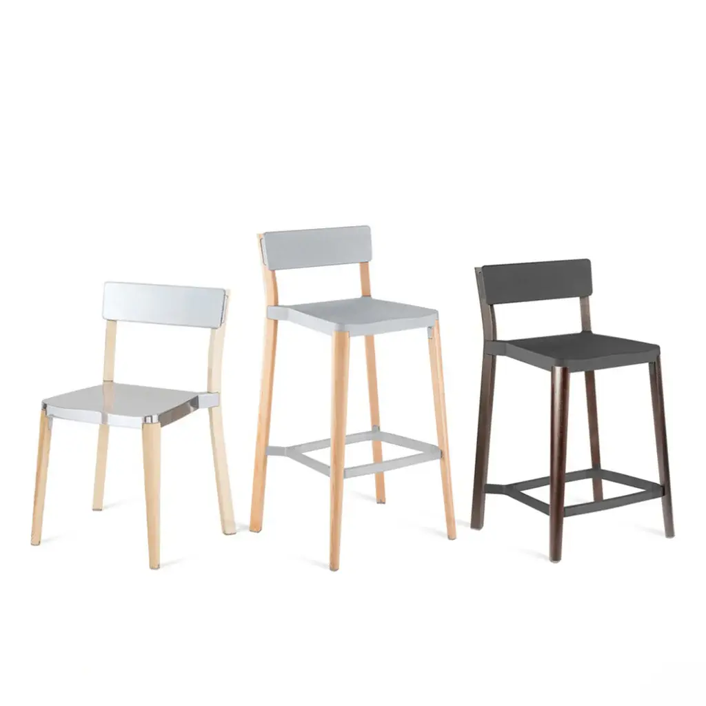 Lancaster clients have asked them to utilize wood in their designs for years. Lancaster features a re-claimed, solid ash frame and recycled die-cast aluminum seat and back- an expression of industrial technique and warm materials. Features