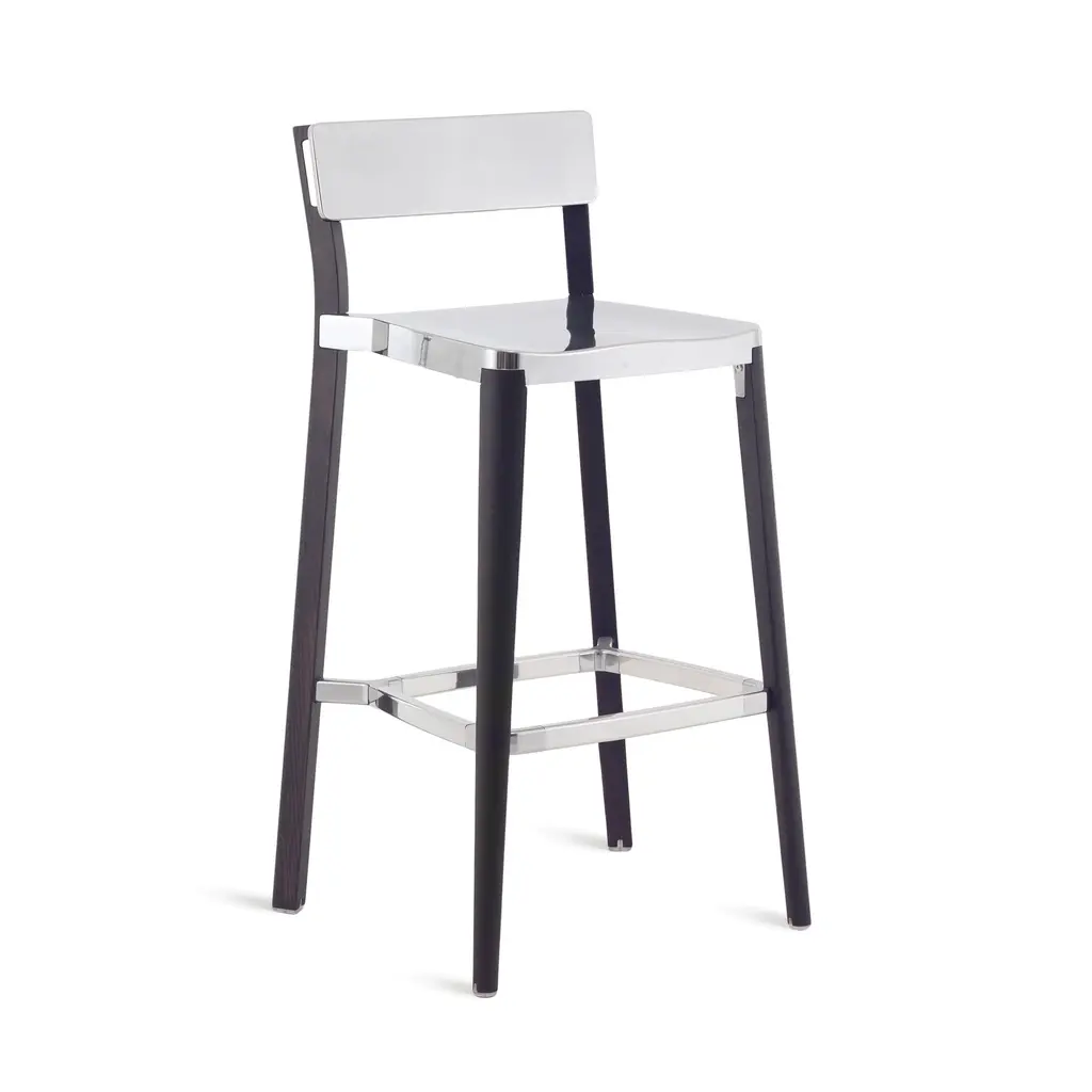 Lancaster clients have asked them to utilize wood in their designs for years. Lancaster features a re-claimed, solid ash frame and recycled die-cast aluminum seat and back- an expression of industrial technique and warm materials. Features