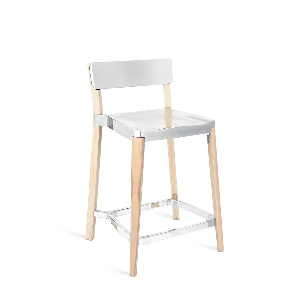 Lancaster clients have asked them to utilize wood in their designs for years. Lancaster features a re-claimed, solid ash frame and recycled die-cast aluminum seat and back- an expression of industrial technique and warm materials. Features