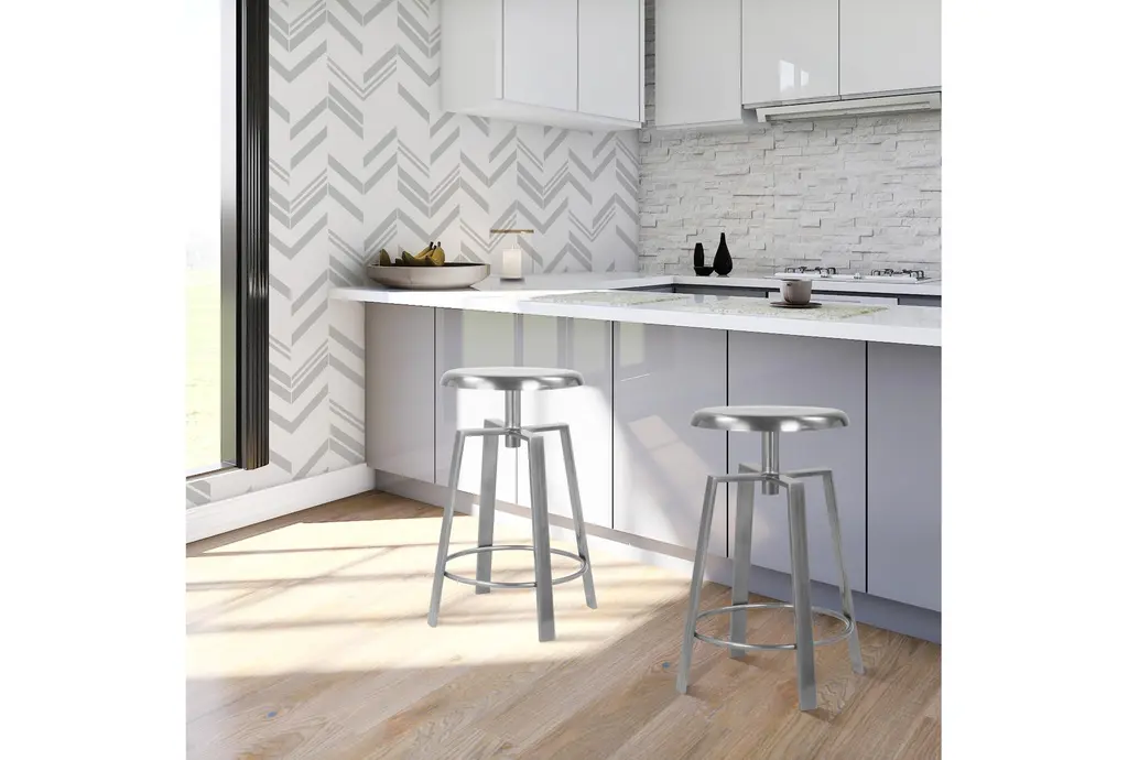 Lang Silver Iron Metal Adjustable Stool With Silver Finish