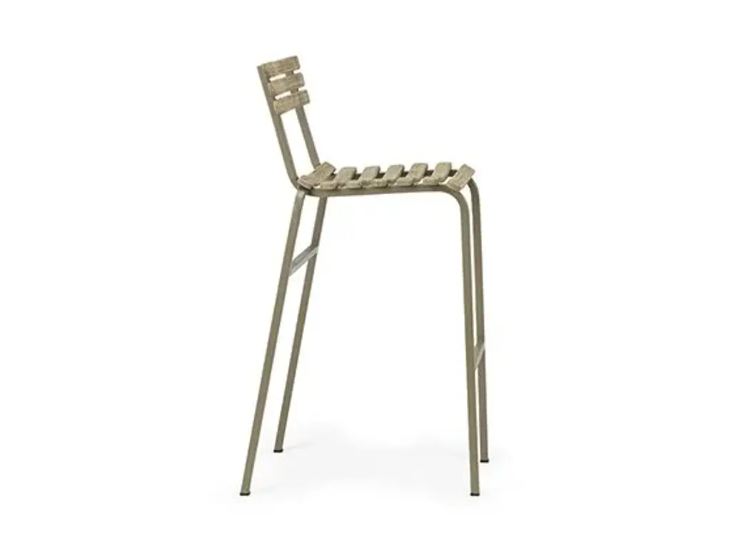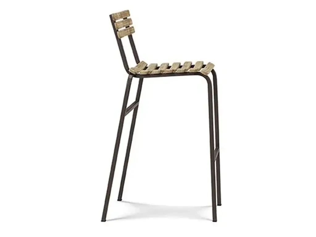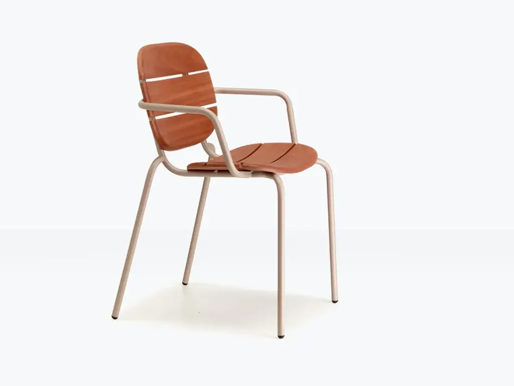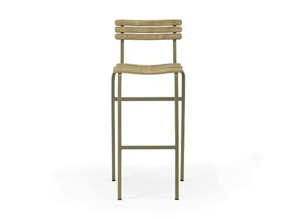 As well-loved in the home as it is in public spaces, the LAREN collection has been expanded with new elements, in pickled and natural teak together with painted metal: high tables of different sizes, a high stool and further variants of the chair.