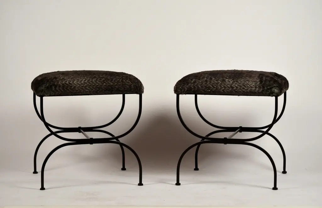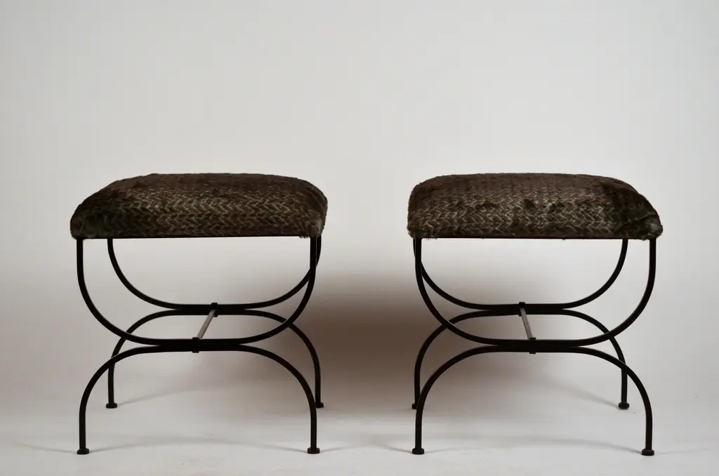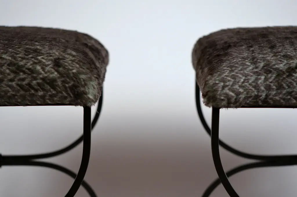 Large Faux Fur 'Strapontin' Stools By Design Frères - A Pair