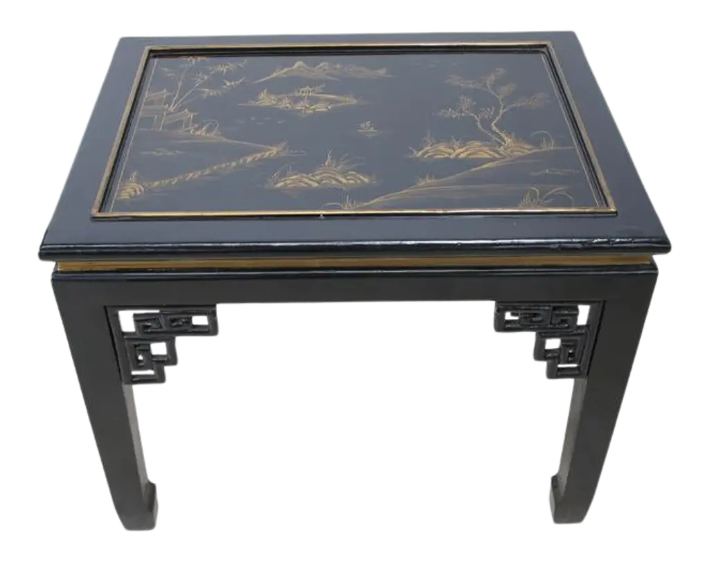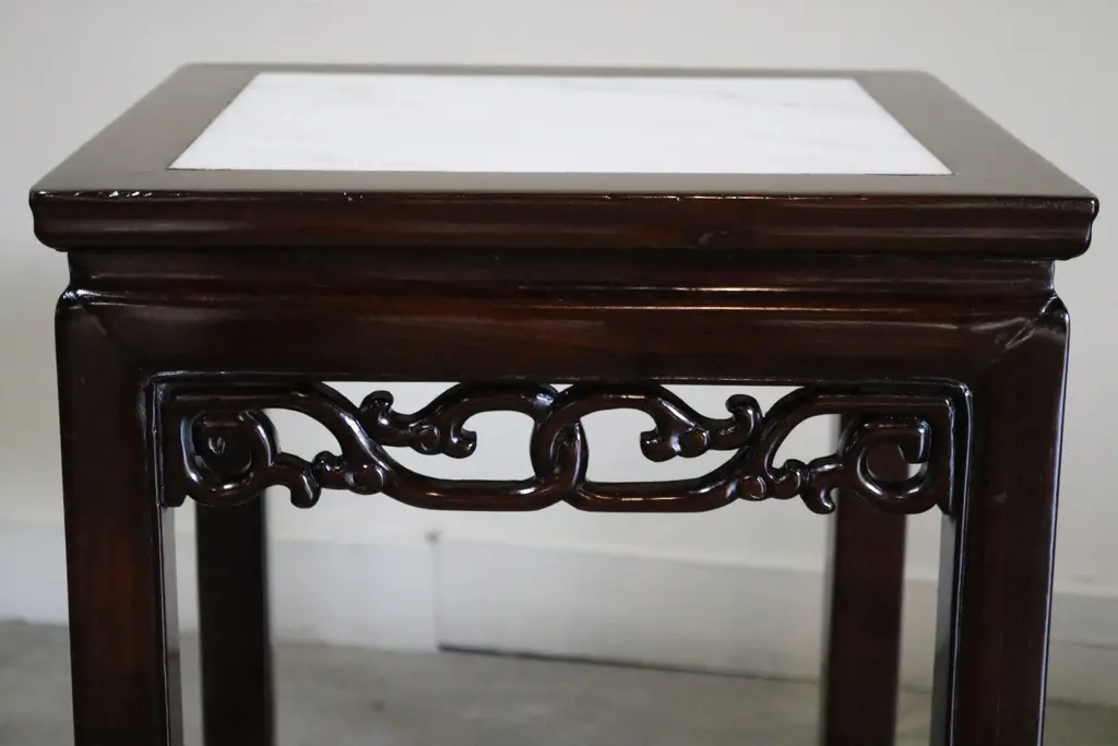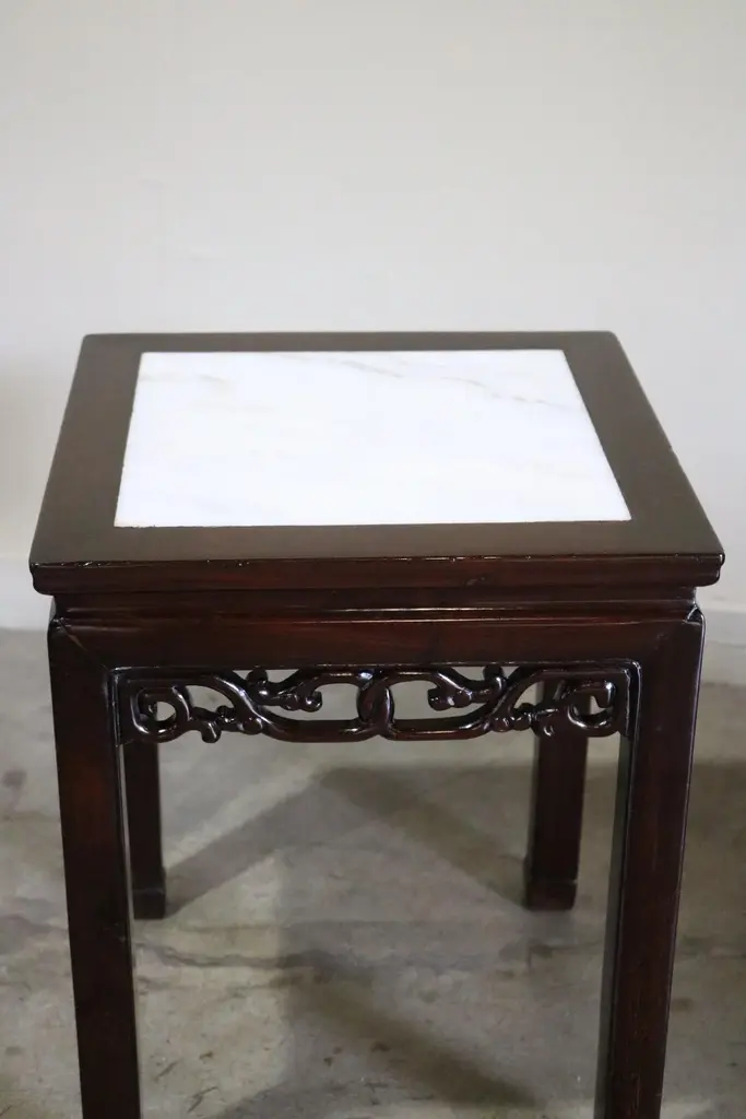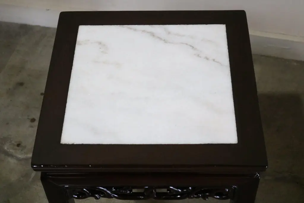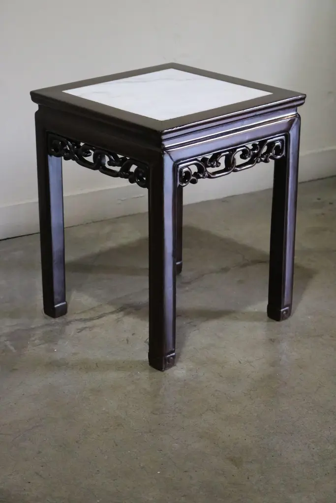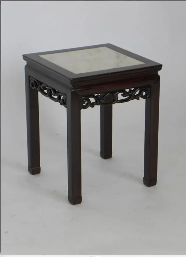 Black wood stool with stone top. Guangdong province China early 20th c.