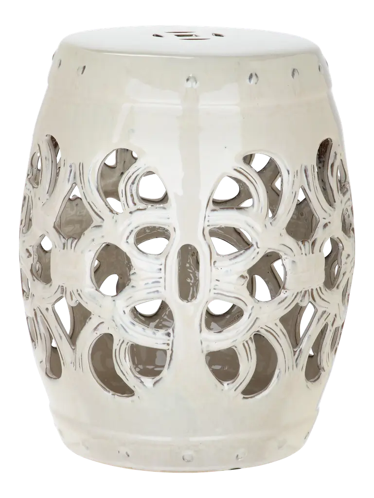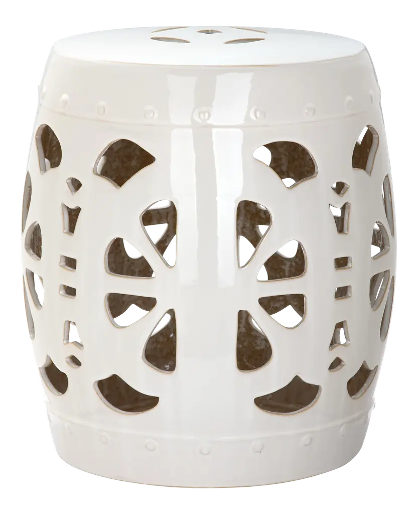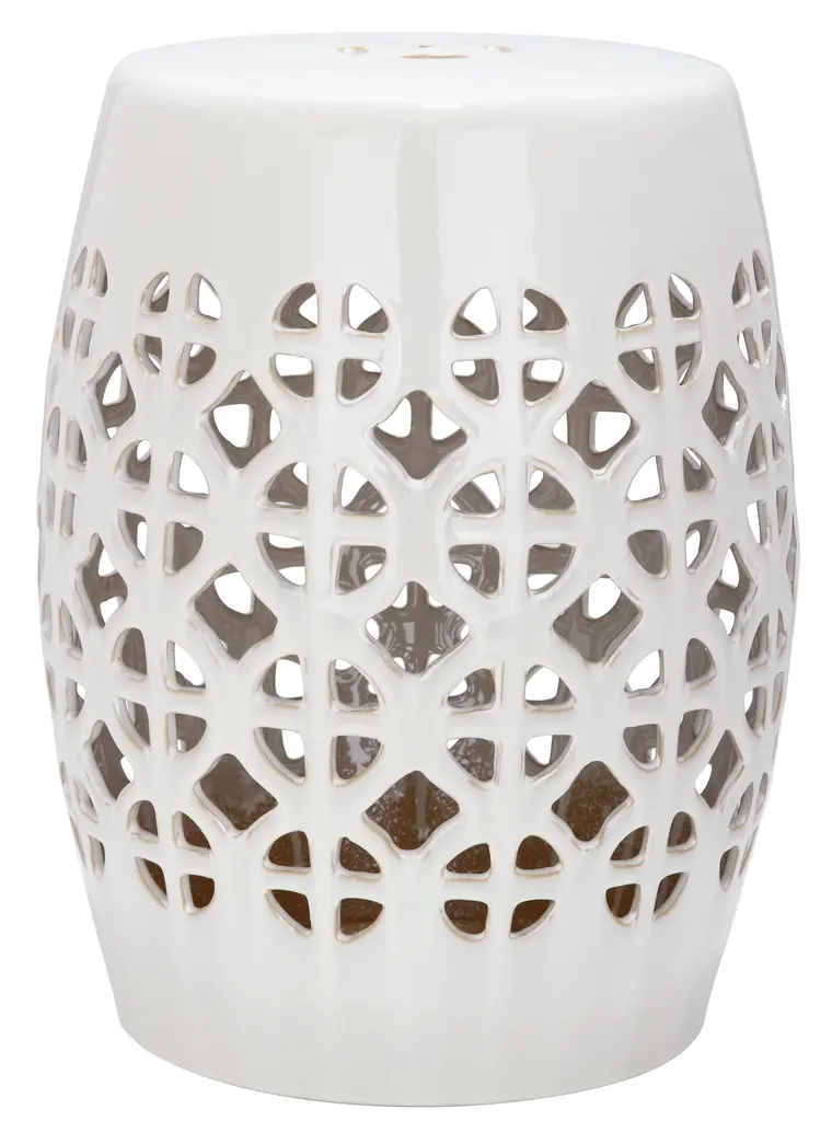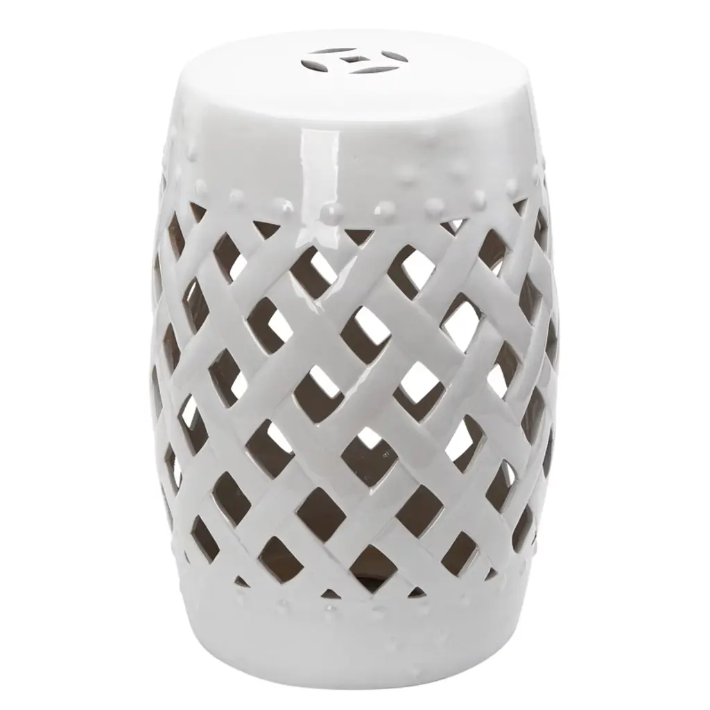 It’s simple geometry: this transitional garden stool has a circle and square lattice motif that brings a chic new look to a ages-old Chinese classic. Use this striking accent piece as a extra seat, plant stand or side table indoors or out:it's glazed cream ceramic stands up to the elements. Wipe with damp cloth. Avoid the use of chemicals and household cleaners as they may damage the finish. Suitable for outdoor use, avoid extreme temperature and store indoors during long periods of inclement weather.