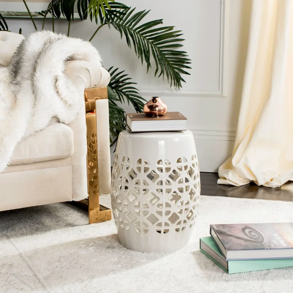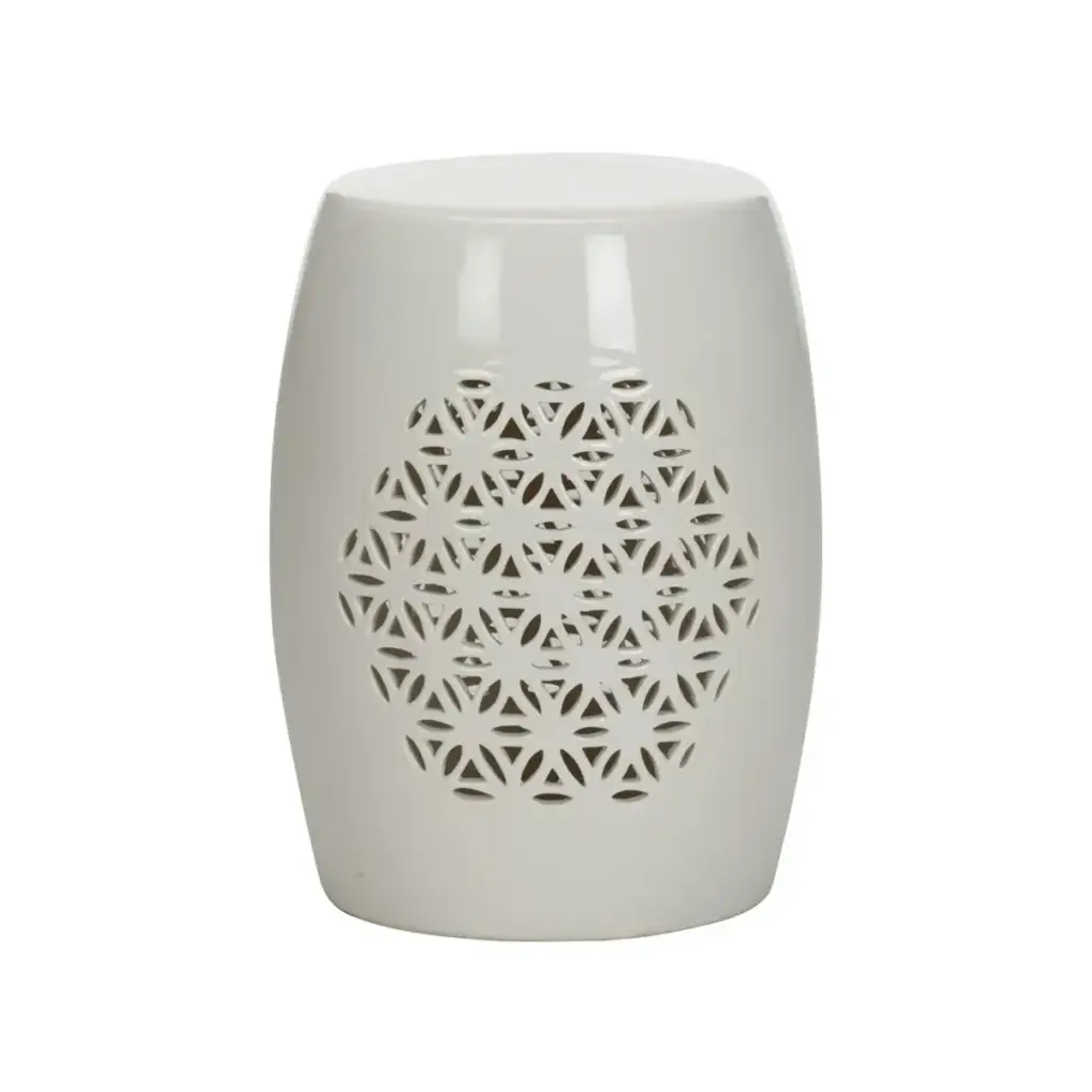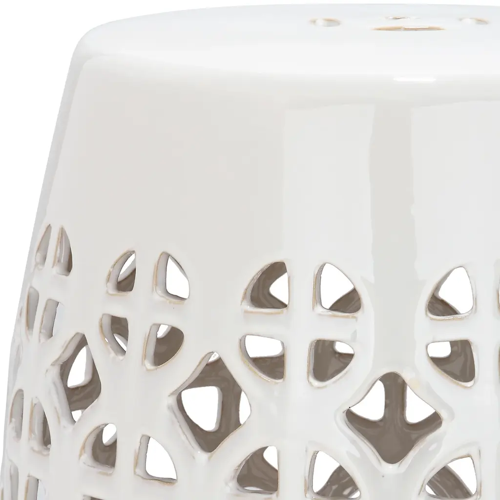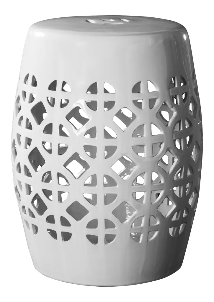 It’s simple geometry: this transitional garden stool has a circle and square lattice motif that brings a chic new look to a ages-old Chinese classic. Use this striking accent piece as a extra seat, plant stand or side table indoors or out:it's glazed cream ceramic stands up to the elements. Wipe with damp cloth. Avoid the use of chemicals and household cleaners as they may damage the finish. Suitable for outdoor use, avoid extreme temperature and store indoors during long periods of inclement weather.