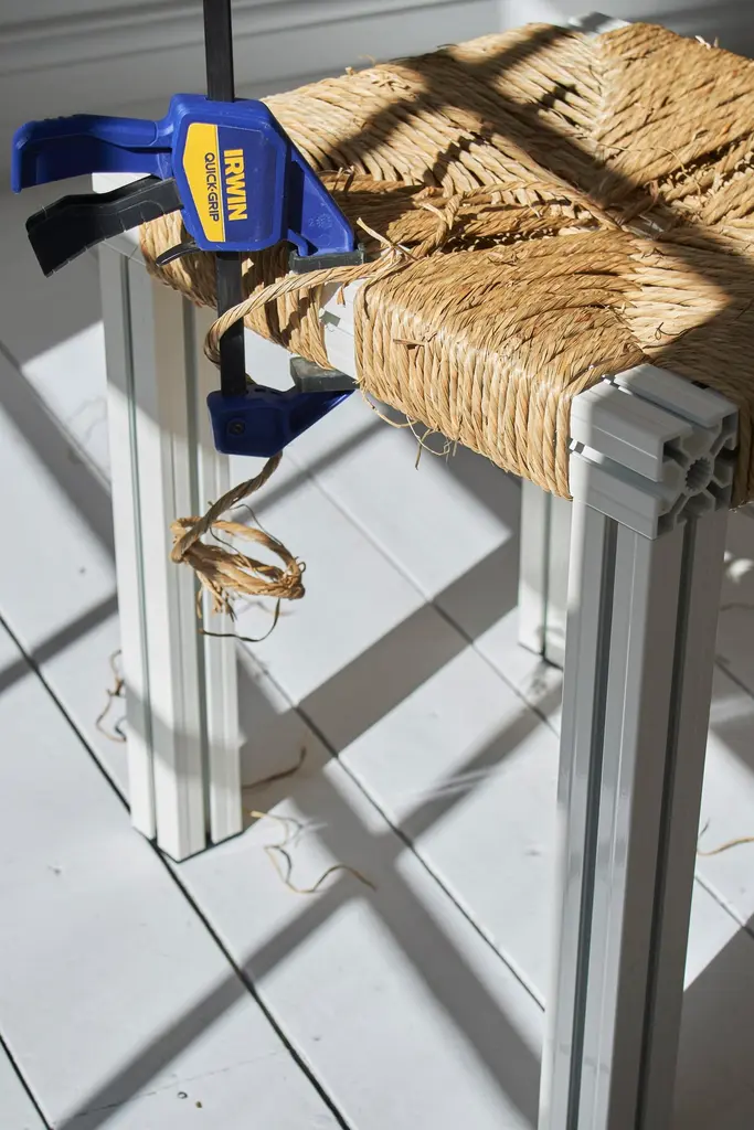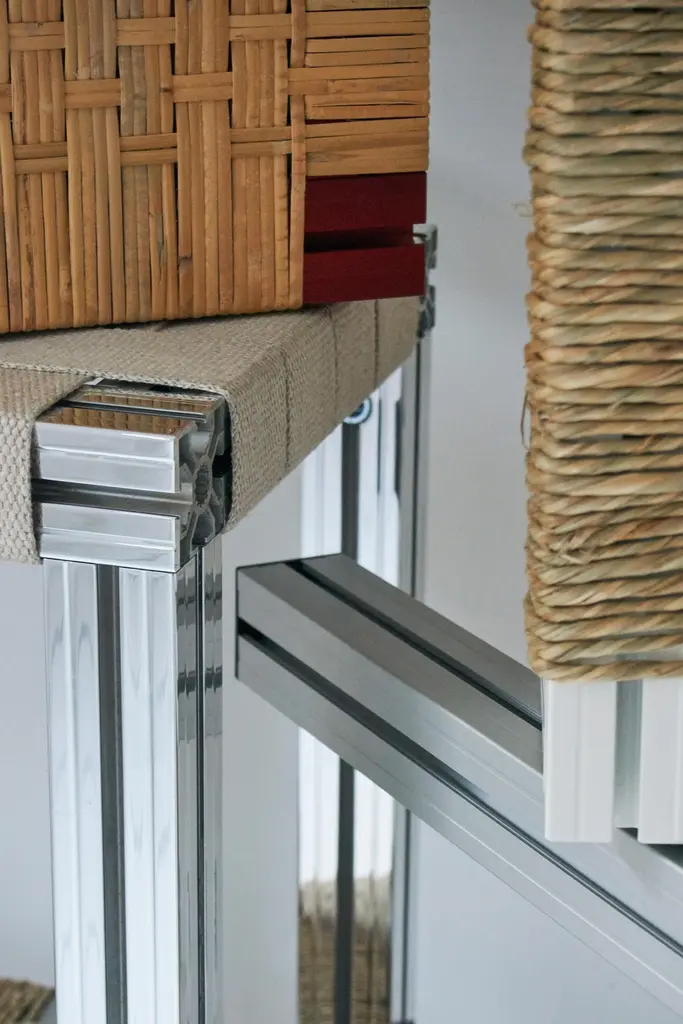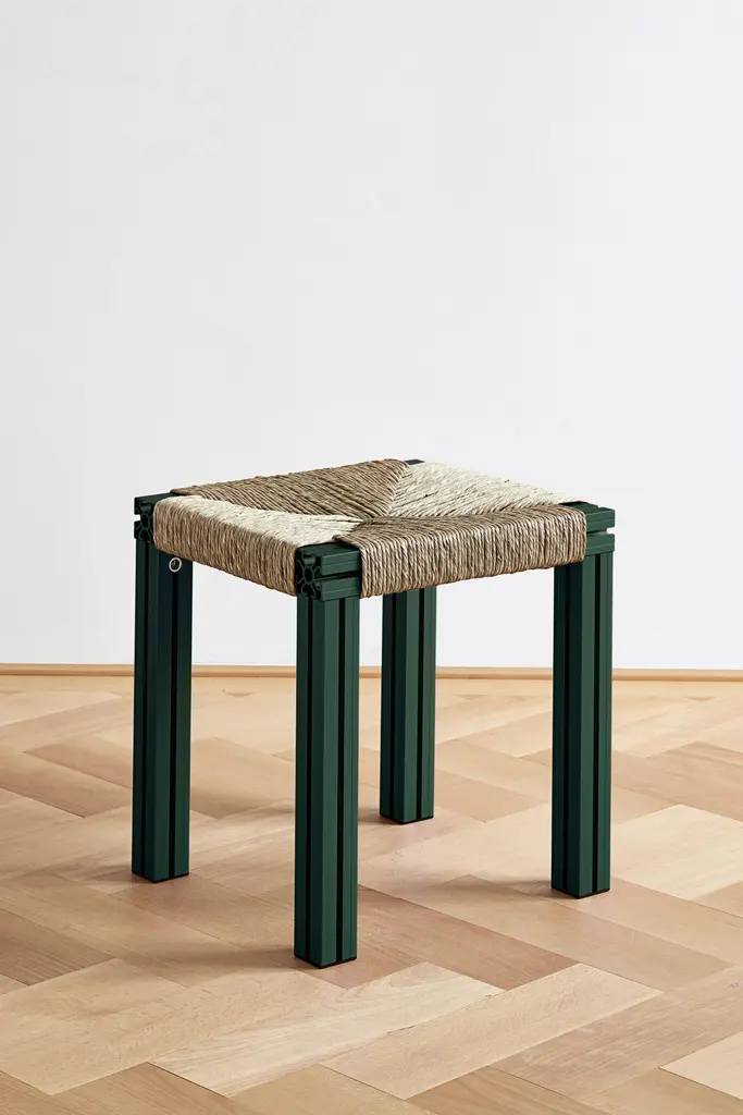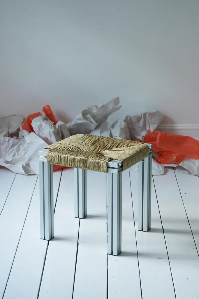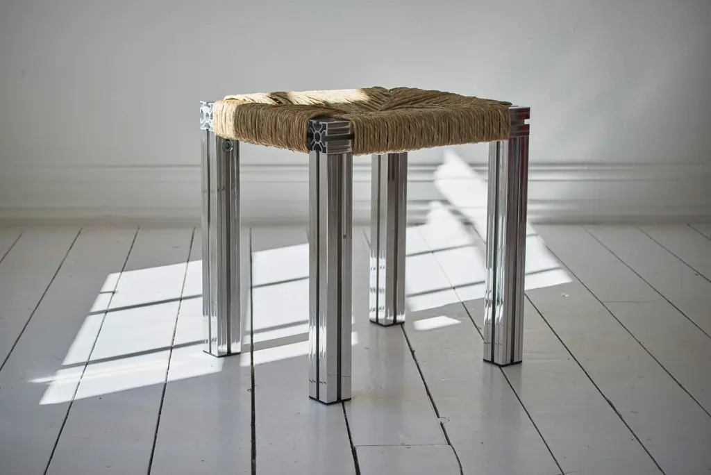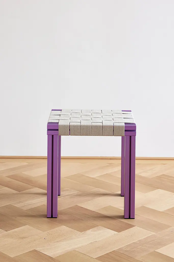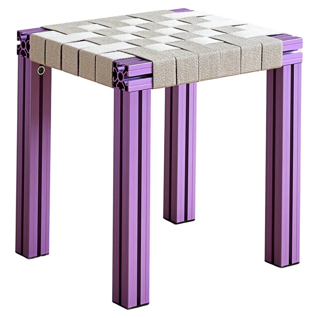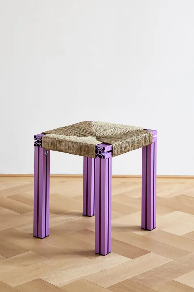 Originally realised for the Hepworth Gallery in Wakefield and inspired by Donald Judd and Børge Mogensen, Anodised Wicker marries industrially extruded and anodised aluminium with hand-woven cane wicker, rush envelope and flax webbing seats. The clinical and precise aluminium contrasts the warm and organic material. To this day we assemble the pieces in my studio in London and apply the cane, rush or webbing seating ourselves.The collection consists of this stool sized 380mm x 430mm x 450mm (W x L x H) available with a reel rush envelope seating (this listing), woven glossy lapping cane seating or a Scandinavian flax webbing, a longer bench also available with the same seating options and a cane woven armchair.The frame and legs can be finished in anodised lavender (this listing) or other anodising colours, powder coated (any colour) or mirror polished aluminium.