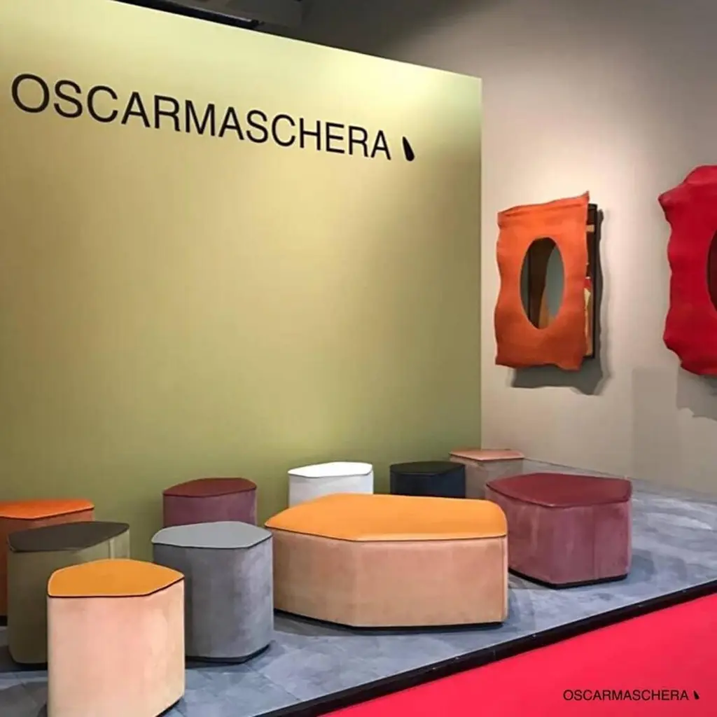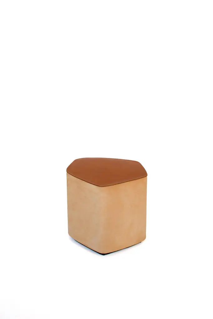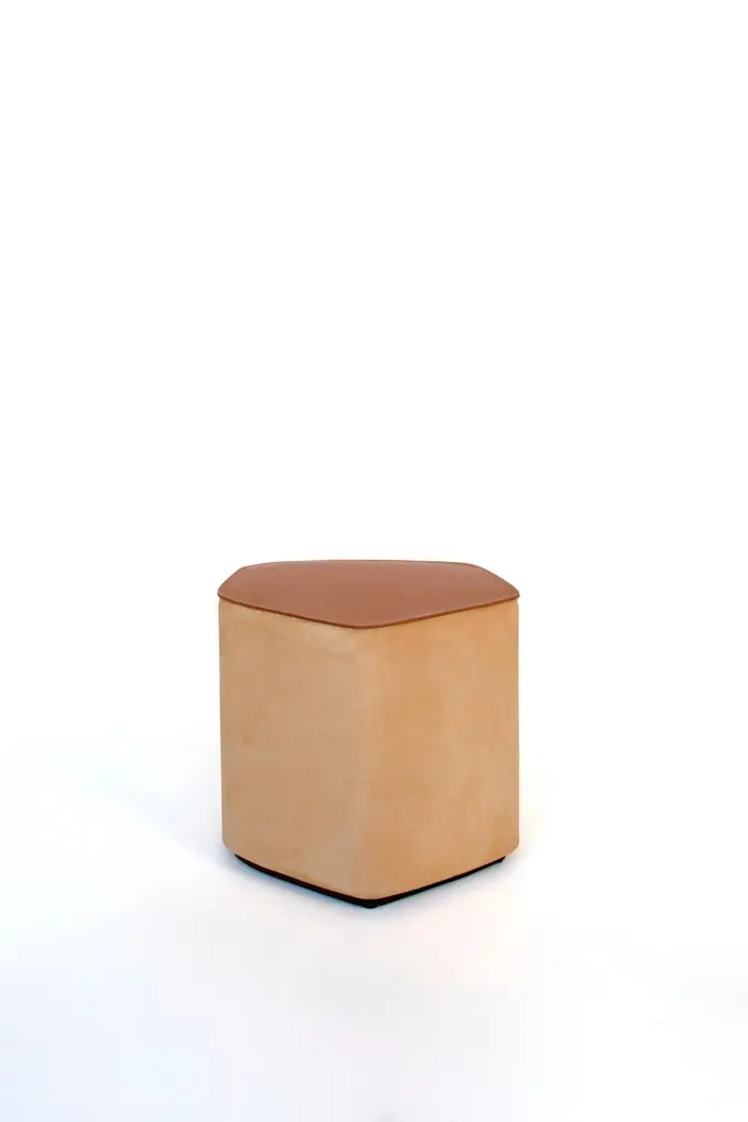 Leather stools by Nestor Perkal.Measures: SmallW 17.71" x D 15.35" x H 15.75"W 45 cm x D 39 cm x H 40 cm.Medium:W 32.68" x D 29.72" x H 13.78"W 83 cm x D 75.5 cm x H 35 cmLarge:W 39.76" x D 33.46" x H 13.78"W 101 cm x D 85 cm x H 35 cmEnameled stoneware in three different colors, genuine Italian vegetable-tanned leather, colors as per available range, lace in natural color.Handmade in Pesaro, ItalyGenuine Italian vegetable-tanned leather; colors as per available range.Vegetable-tanned suede; colors as per available range.Non-distortable expanded polyurethane internal upholsteryin various densities. Poplar plywood base.