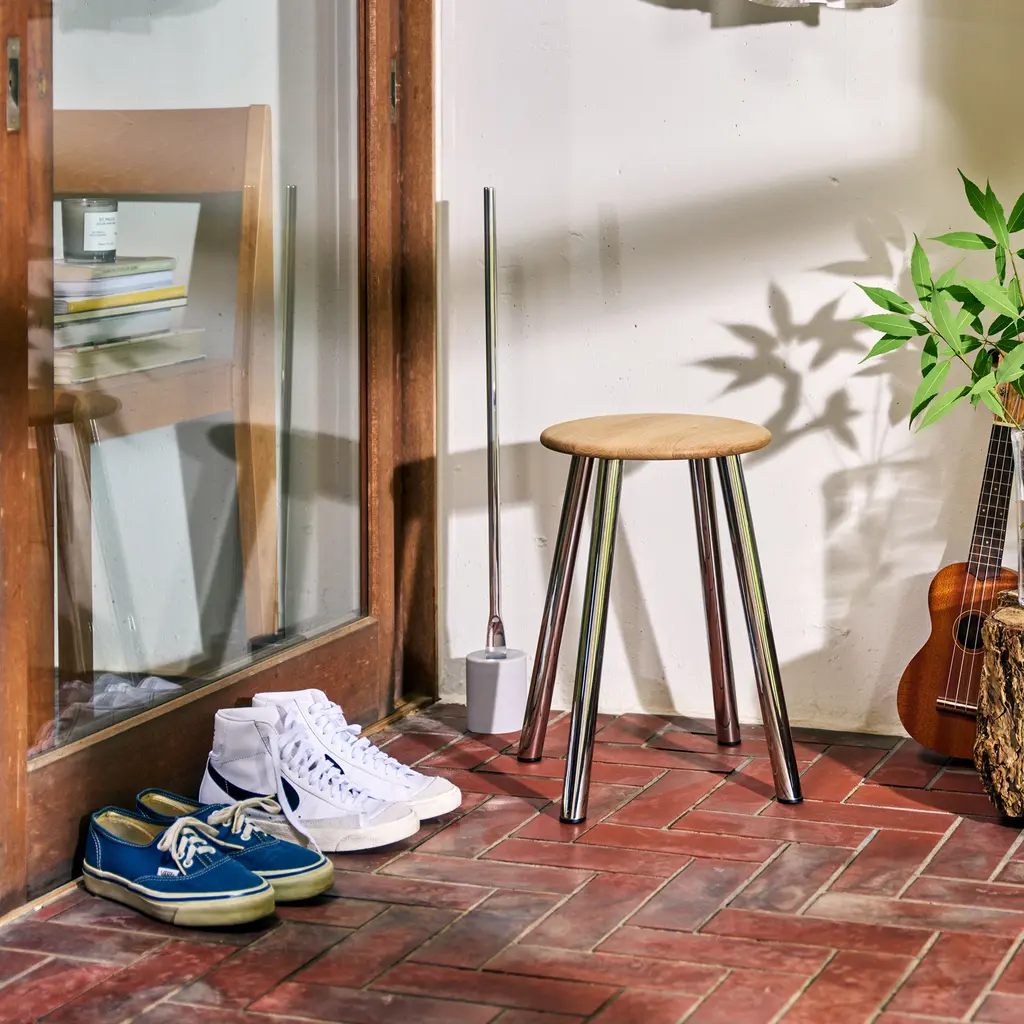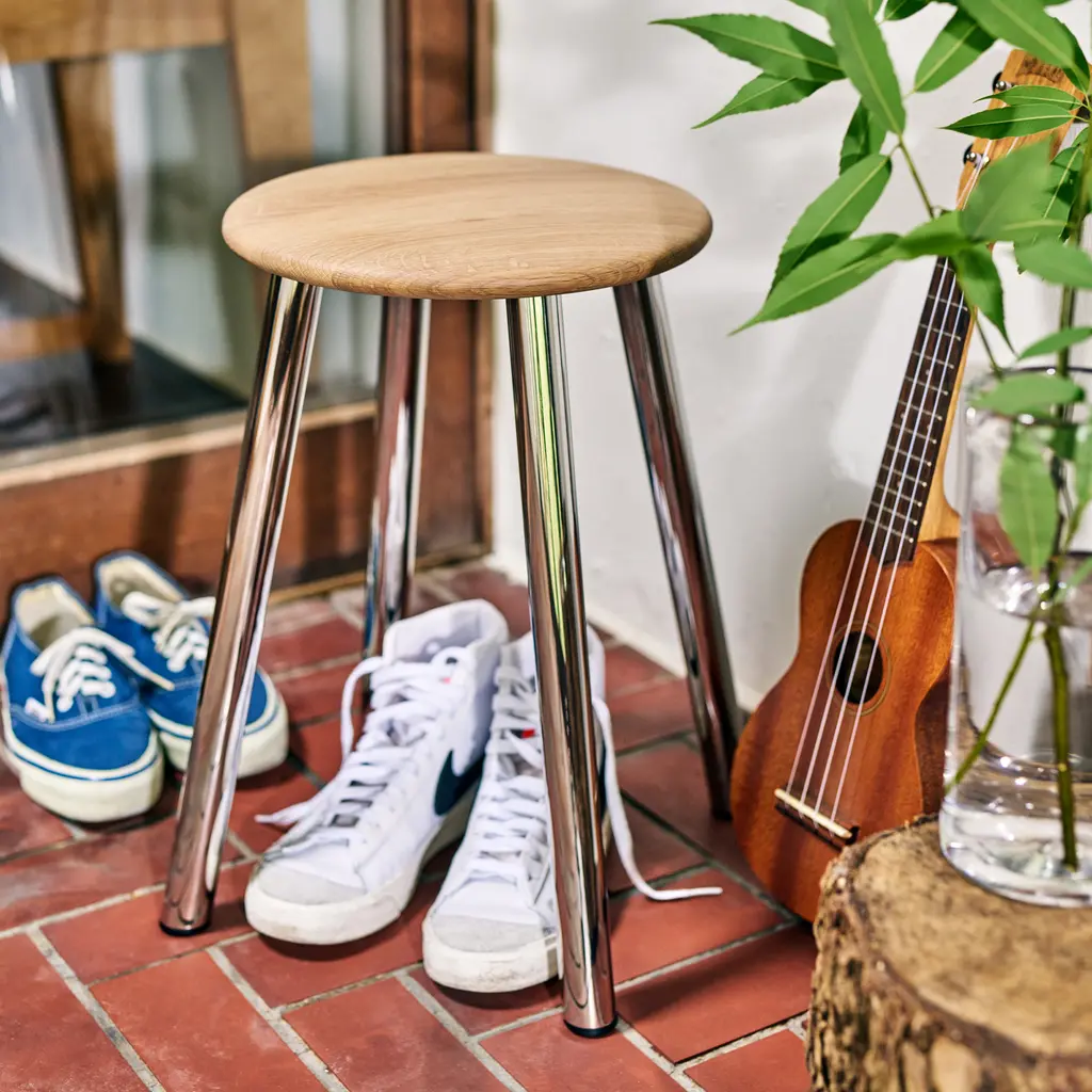 Some of the world’s best designs take inspiration from nature. Take the KON stool from Lemnos, for example. Designed by Mikiya Kobayashi, this stool references the roots of a tree with its four angled legs. The name translates to “root” in Japanese, giving the impression of sitting on a tree stump that provides perfect stability thanks to the tubular supports. Crafted with longevity in mind, the KON stool series features quality materials, including stainless steel with a polished finish, solid wood, leather, and Kvadrat fabrics. The compact size and light weight make this stool ideal for entrances and smaller areas, whether in a residential or a public setting. Available with or without an integrated leather basket.
