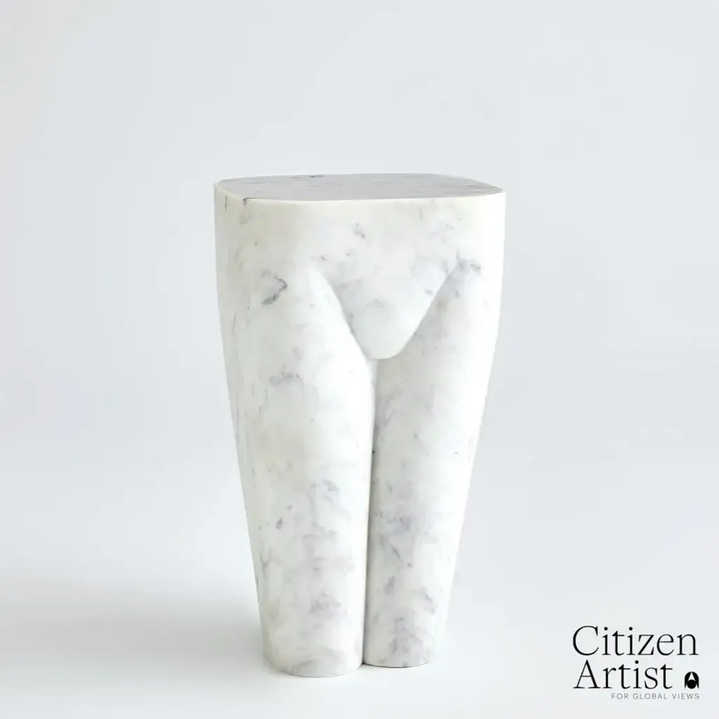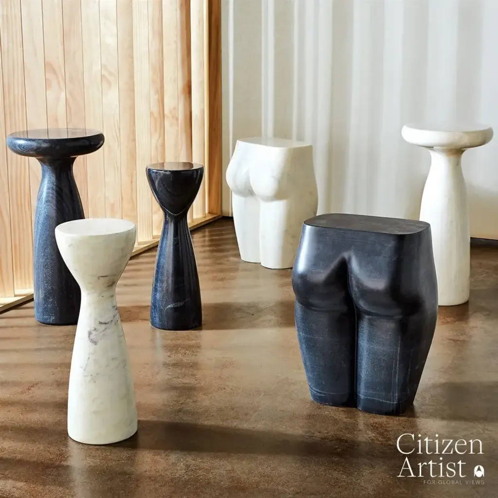 Carved from a solid piece of marble, with a beautiful honed finish, this figurative stool is sophisticated, timeless, and chic. From a fashion forward perspective, Global Views offers accessories, furniture, statement lighting, and an assortment of rugs and mirrors to add beauty and joy to your home.
